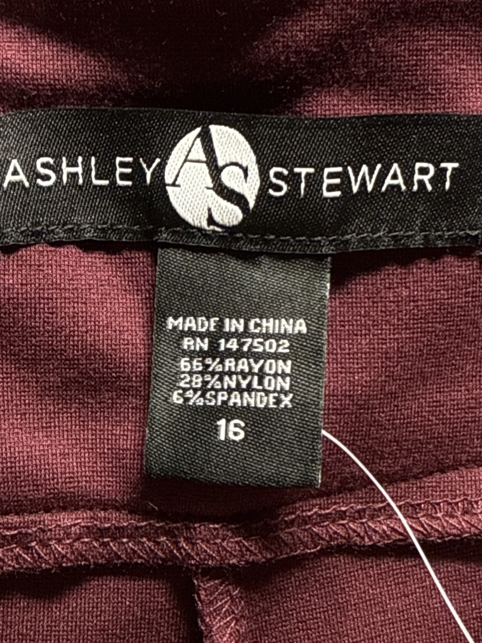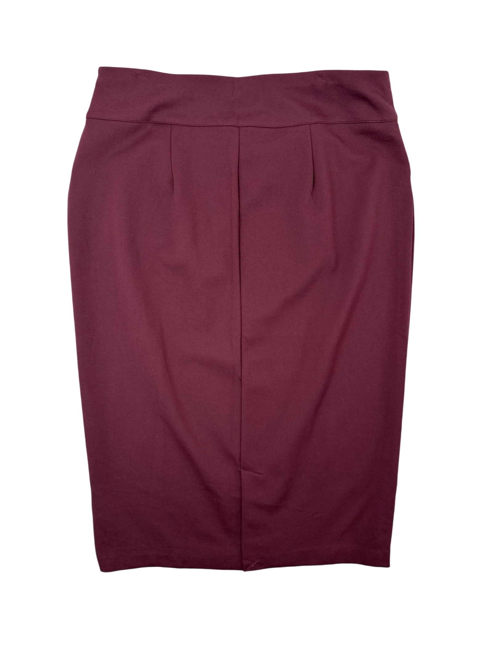Elevate your wardrobe with this stylish pre-owned Ashley Stewart pencil skirt. This midi skirt, in a rich wine color, is perfect for creating a polished look. Made with a blend of rayon, nylon, and spandex for a comfortable fit, this skirt is ideal for fall and winter. Its classic pencil style and size 16 make it a versatile addition to your closet. Perfect for a professional setting or a night out.
