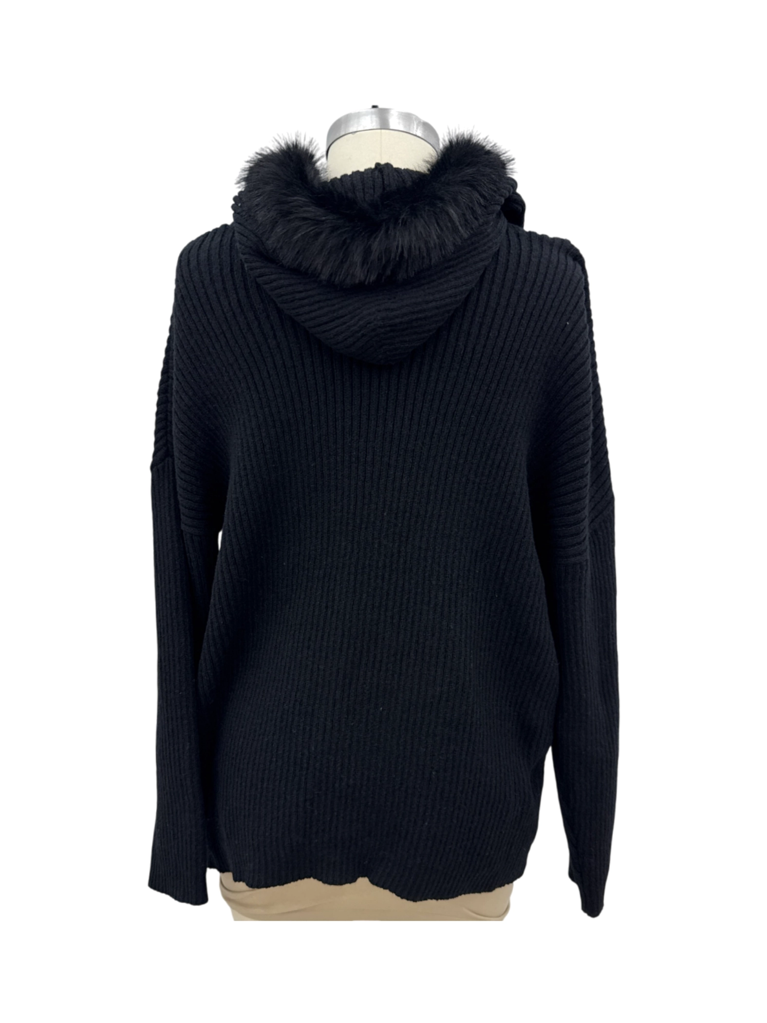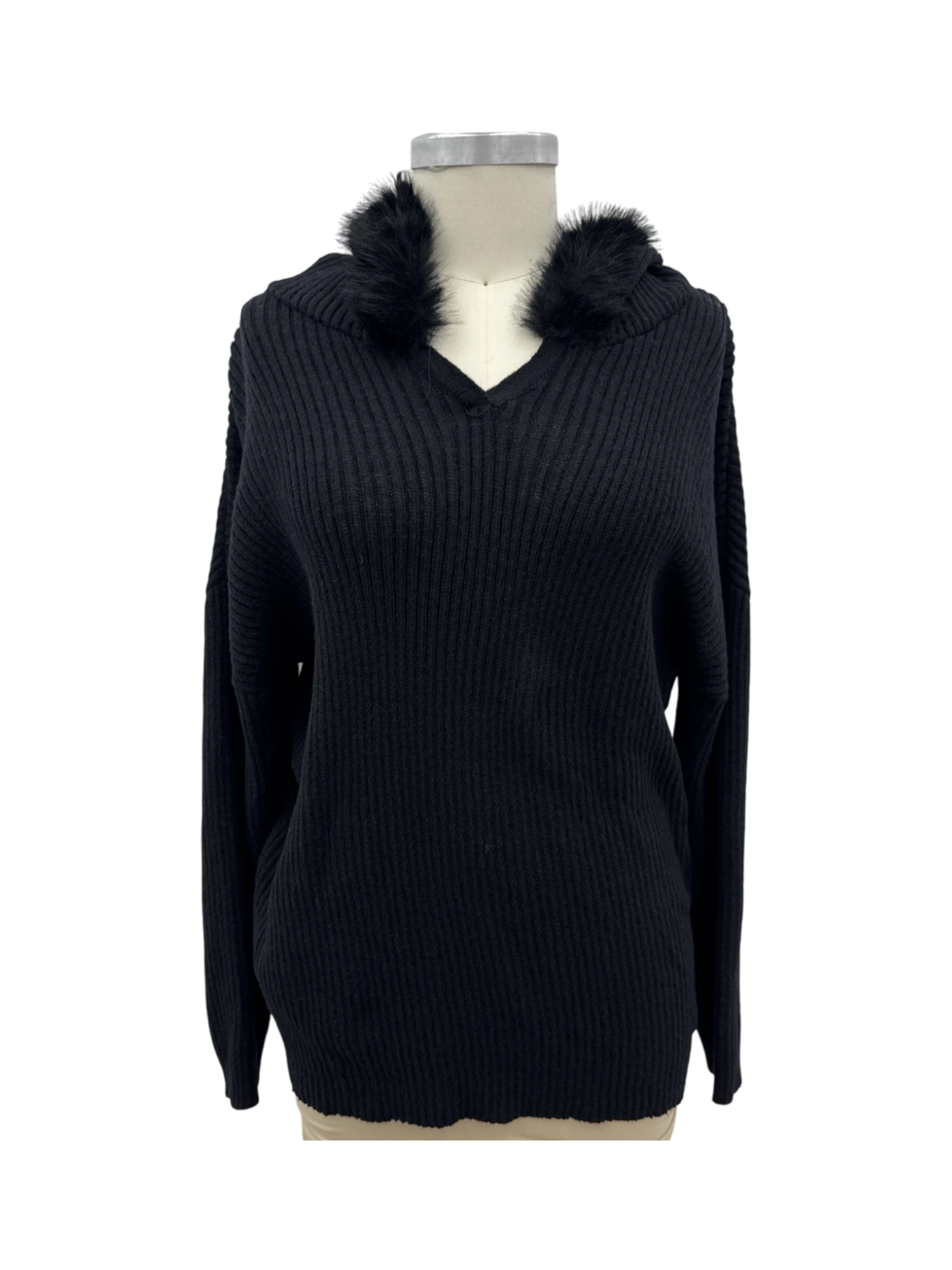 Elevate your winter wardrobe with this chic, pre-owned Ashley Stewart sweater. This cozy piece features a classic V-neck, a stylish hood with fur details, and long sleeves, perfect for cold days. The sweater is crafted from a comfortable blend of acrylic, polyester, and spandex. Ideal for casual outings, this sweater combines warmth and style seamlessly. Embrace the season with this versatile and fashionable find.