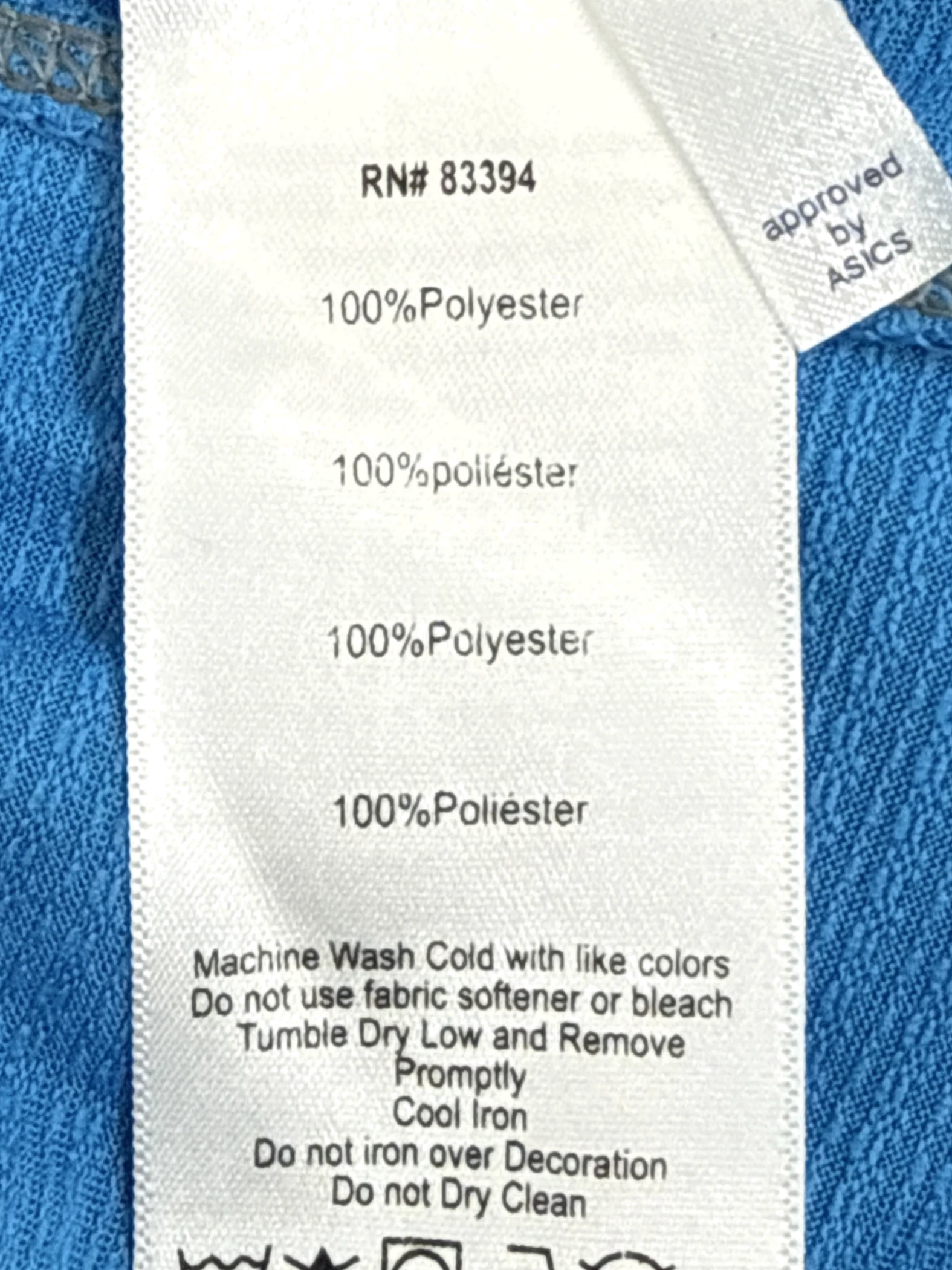 This pre-owned ASICS activewear shirt is perfect for your workout or casual wear. Crafted from breathable polyester, this shirt features a stylish blue design with a subtle pattern. Designed for comfort and performance, the shirt is ideal for running, gym sessions, or everyday activities. This ASICS shirt offers a comfortable fit. Lightweight, durable, and ready for action!
