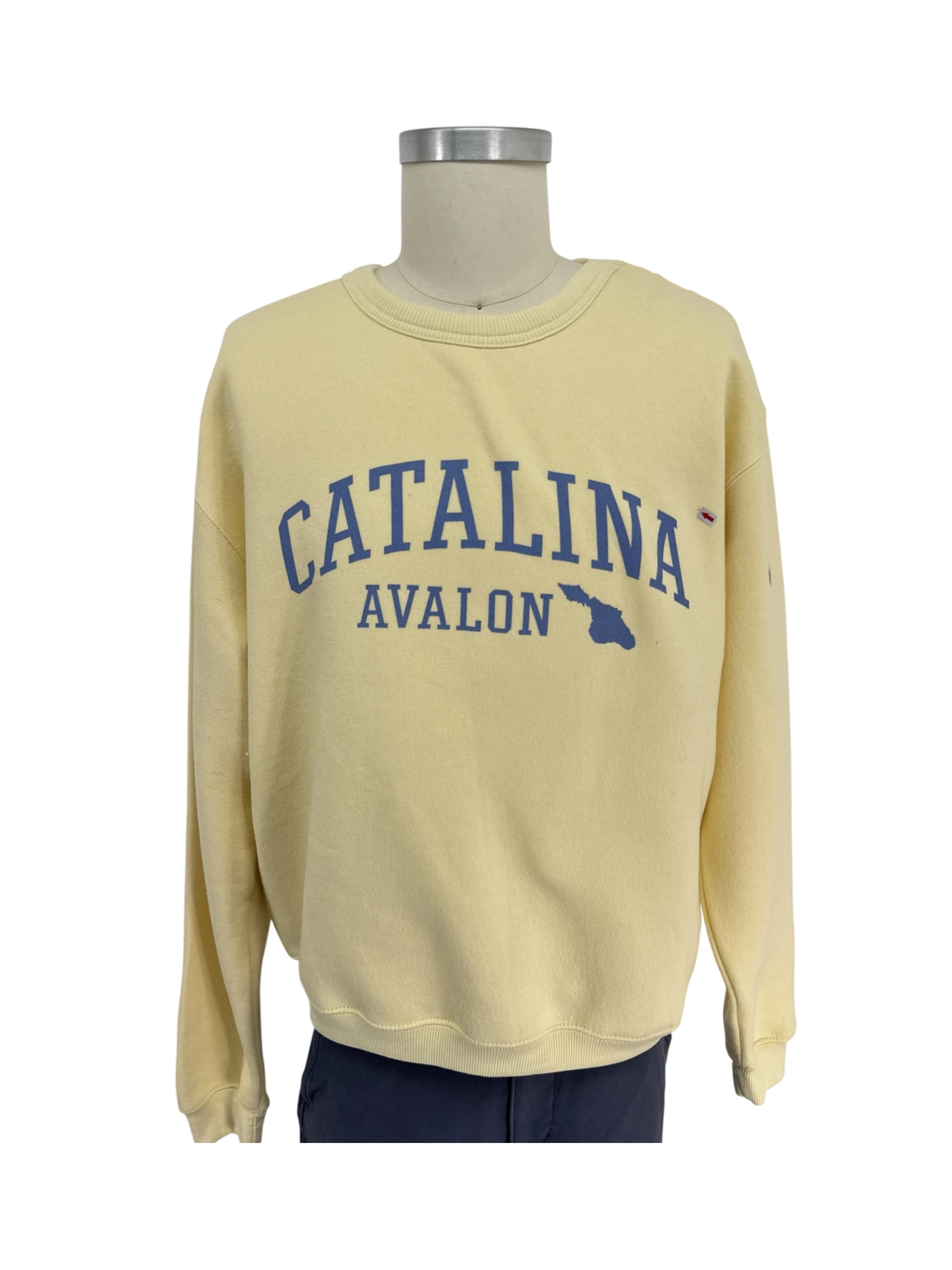 This pre-owned AUSTINS INC. sweater is a cozy and stylish addition to any wardrobe. The sweatshirt features a classic crew neck and long sleeves, making it perfect for cooler weather. Made from a comfortable cotton blend, this pullover sweater is ideal for everyday wear. The Catalina design on the front adds a touch of character. It's in good condition and offers a great combination of comfort and style. A must-have for anyone looking for a comfortable and fashionable sweater.