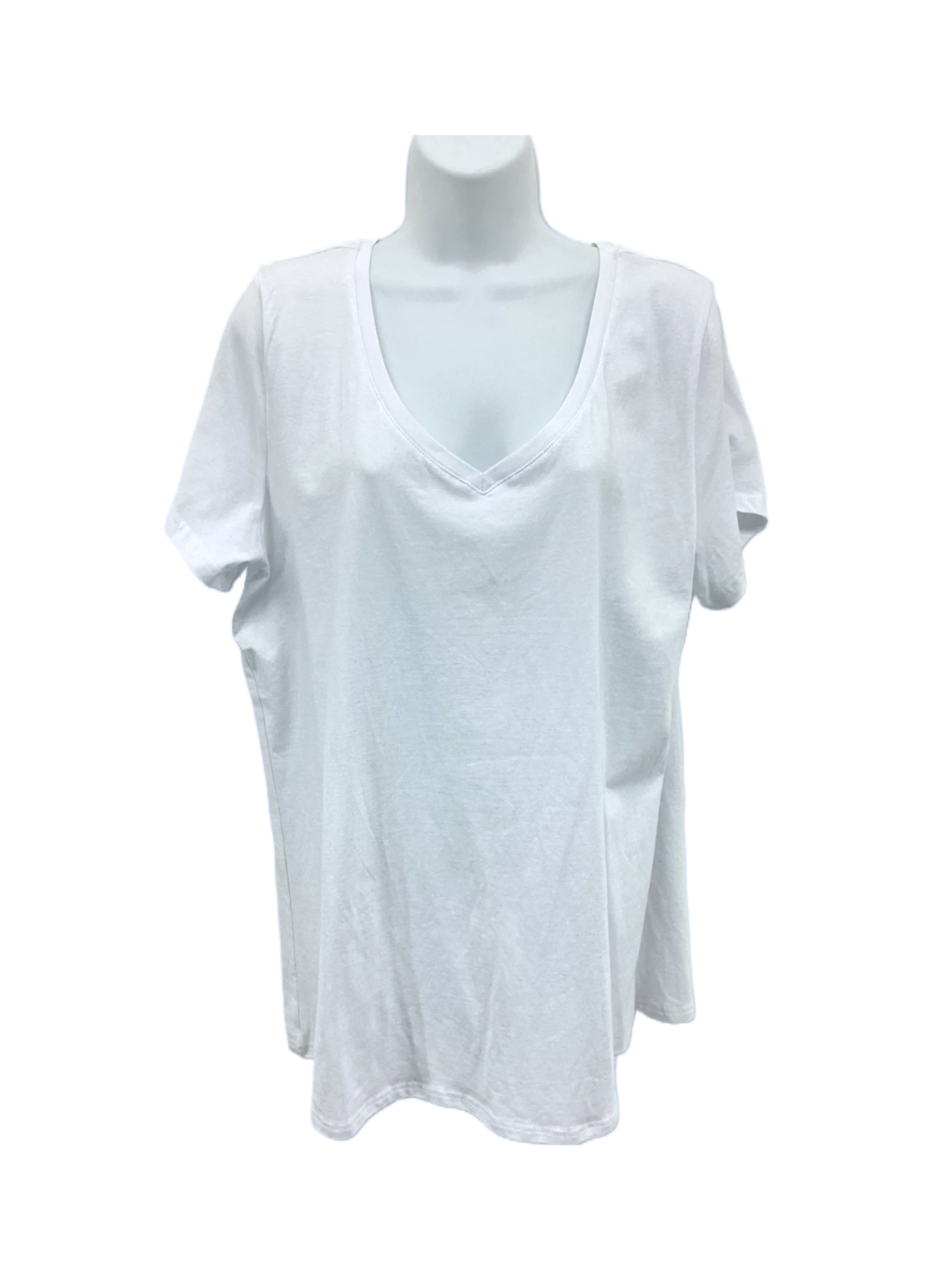 This Aveto Plus T-shirt is a stylish and comfortable addition to your wardrobe. Made from a blend of cotton and spandex, it offers a soft and stretchy feel. The classic V-neck and short sleeves make it perfect for warm weather. This second-hand tee is a great way to add a casual, versatile top to your collection. Ideal for everyday wear, its neutral white color makes it easy to pair with any outfit.