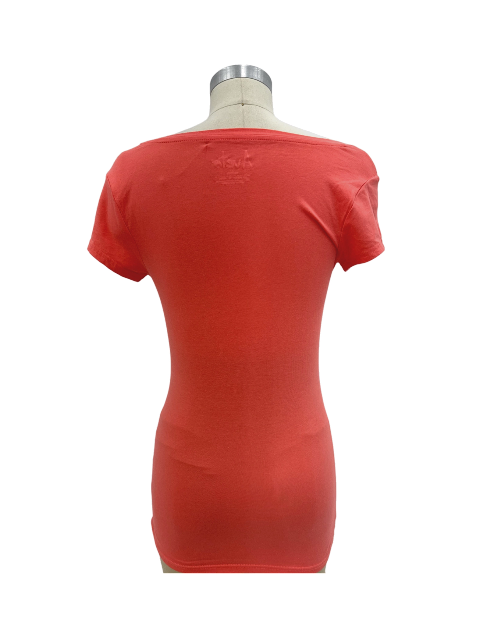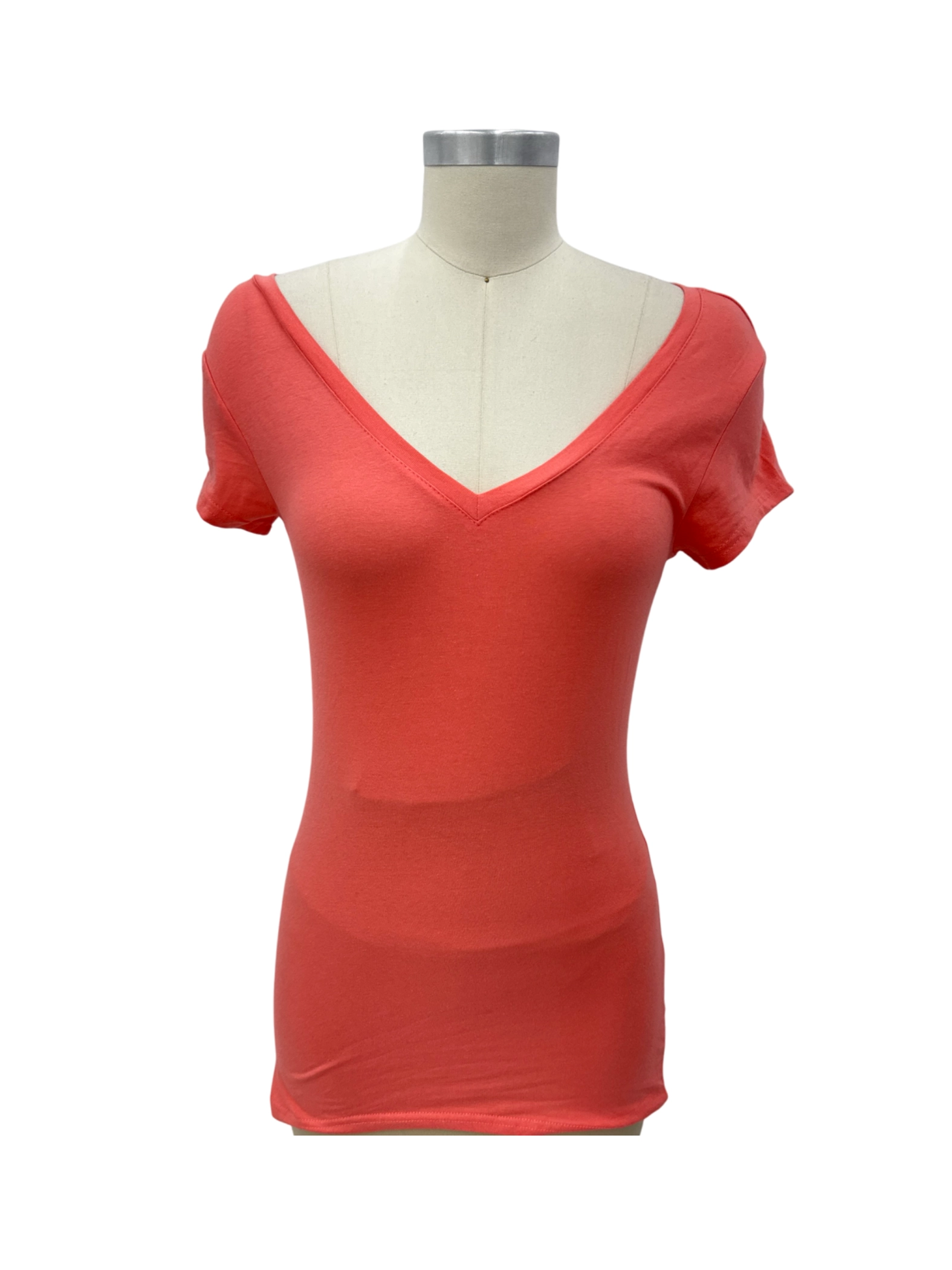 Elevate your casual wardrobe with this stylish Aveto t-shirt, perfect for everyday wear. This pre-owned top features a flattering V-neck, short sleeves, and a comfortable fit. Crafted from a blend of cotton and spandex, it offers both softness and stretch. The vibrant orange color adds a pop of brightness to any outfit. This versatile tee is a must-have addition to your collection.