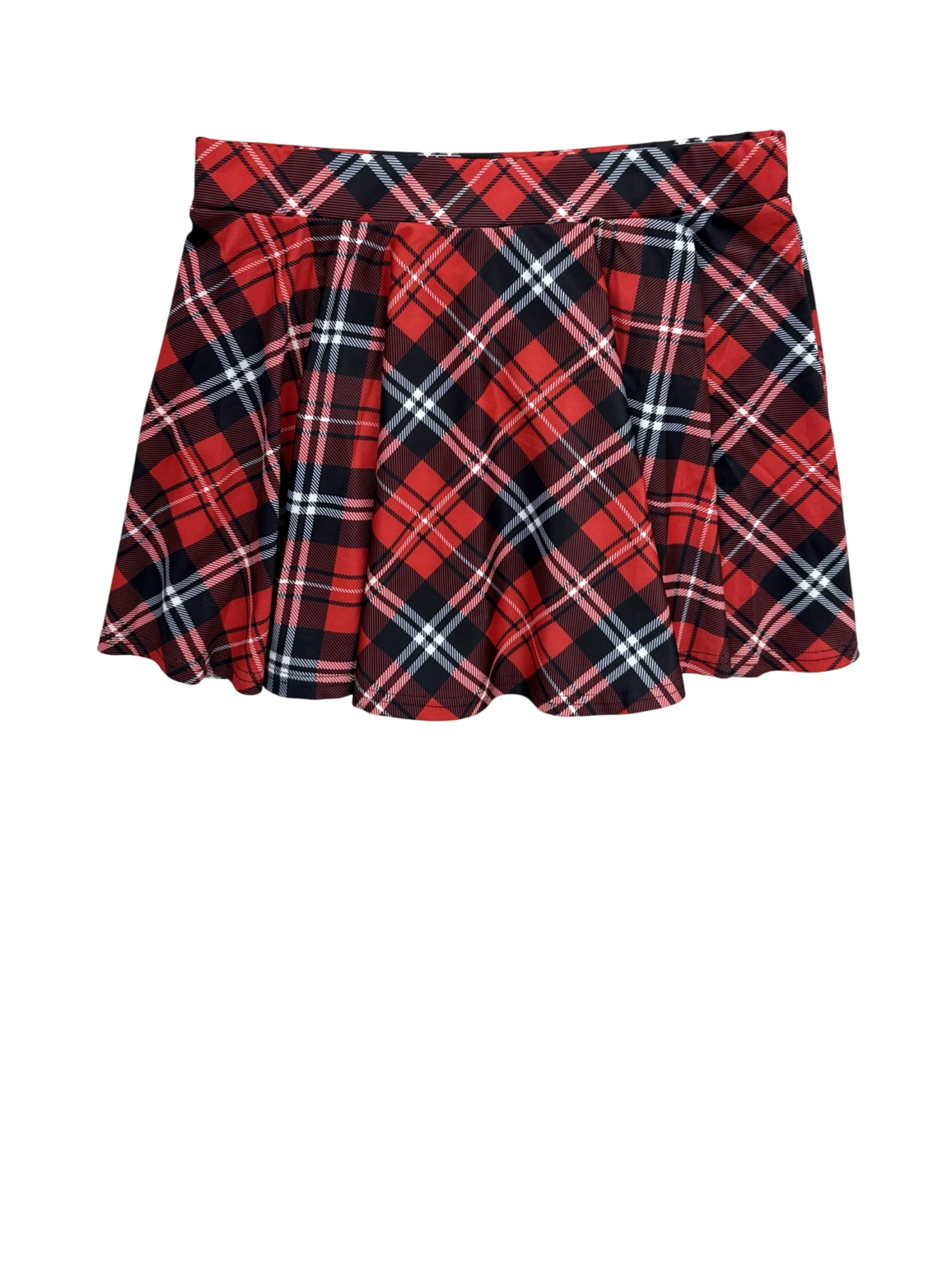 This adorable pre-owned Avidlove plaid skater skirt is a must-have for your wardrobe! Featuring a classic red, black, and white plaid pattern, this A-line mini skirt is perfect for a variety of occasions. Made from a comfortable blend of polyester and spandex, it's designed for all-day wear. The skirt falls at a flattering mini length and has a skater style, making it ideal for creating a chic, casual look. A perfect addition to your closet for a touch of classic style.