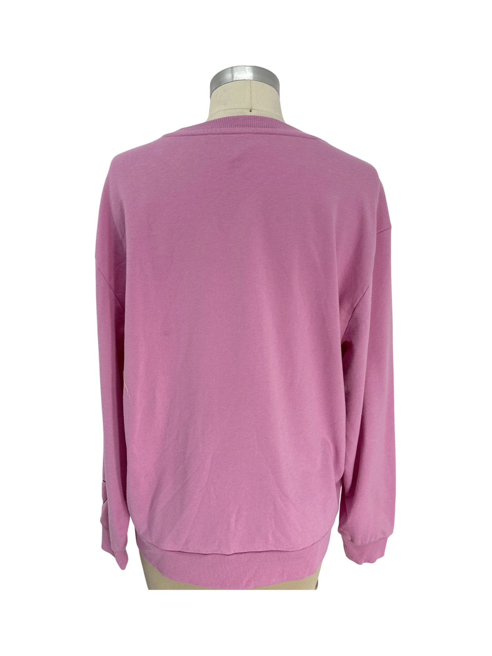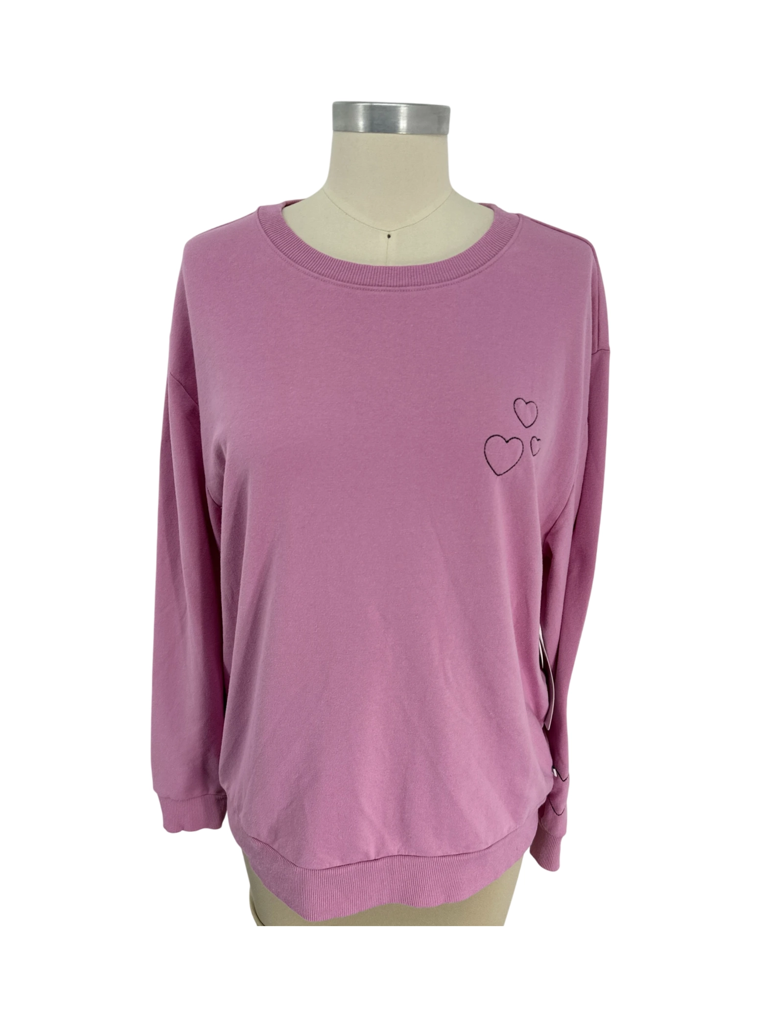 This pre-owned Balance Collection sweater is a stylish and comfortable addition to any wardrobe. The soft pink color with subtle heart detailing makes it a versatile piece for various occasions. Its crew neck design provides a classic fit, and the blend of cotton and polyester ensures durability and ease of care. Perfect for layering or wearing on its own, this sweater is ideal for cooler seasons. Designed in Los Angeles, made in China.