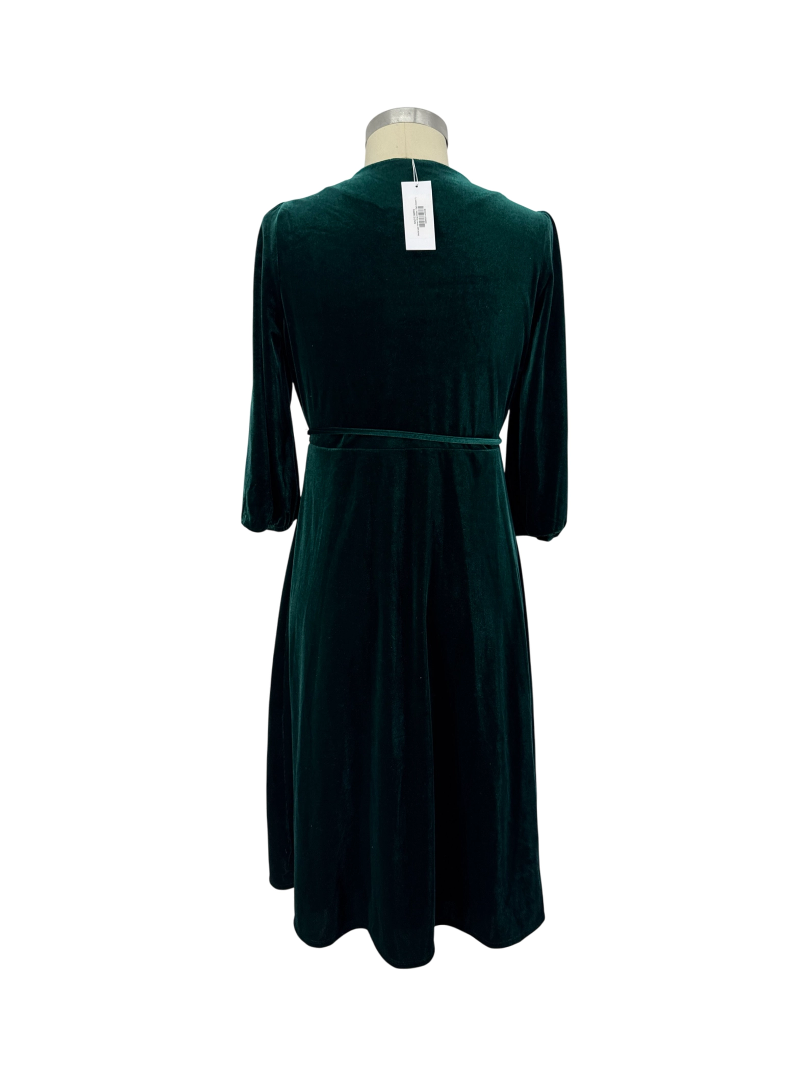 This gorgeous pre-owned BALTICBØRN dress is a sophisticated choice for any occasion. Crafted from luxurious velvet in a deep emerald green, this wrap dress offers a flattering A-line silhouette. Featuring a elegant V-neckline, it provides a refined look. Perfect for fall or winter, this dress combines comfort and elegance. A timeless piece that adds a touch of luxury to your wardrobe.