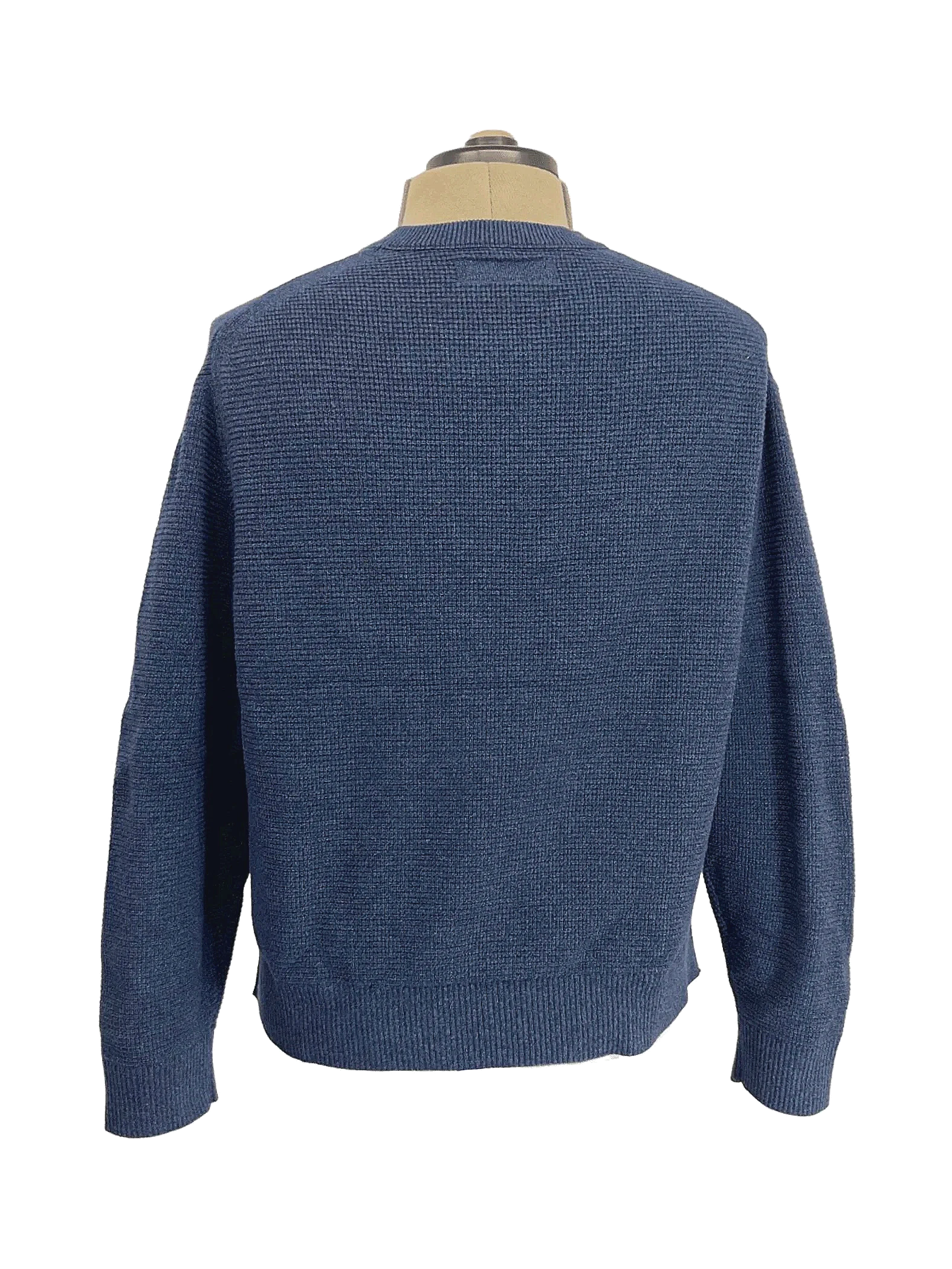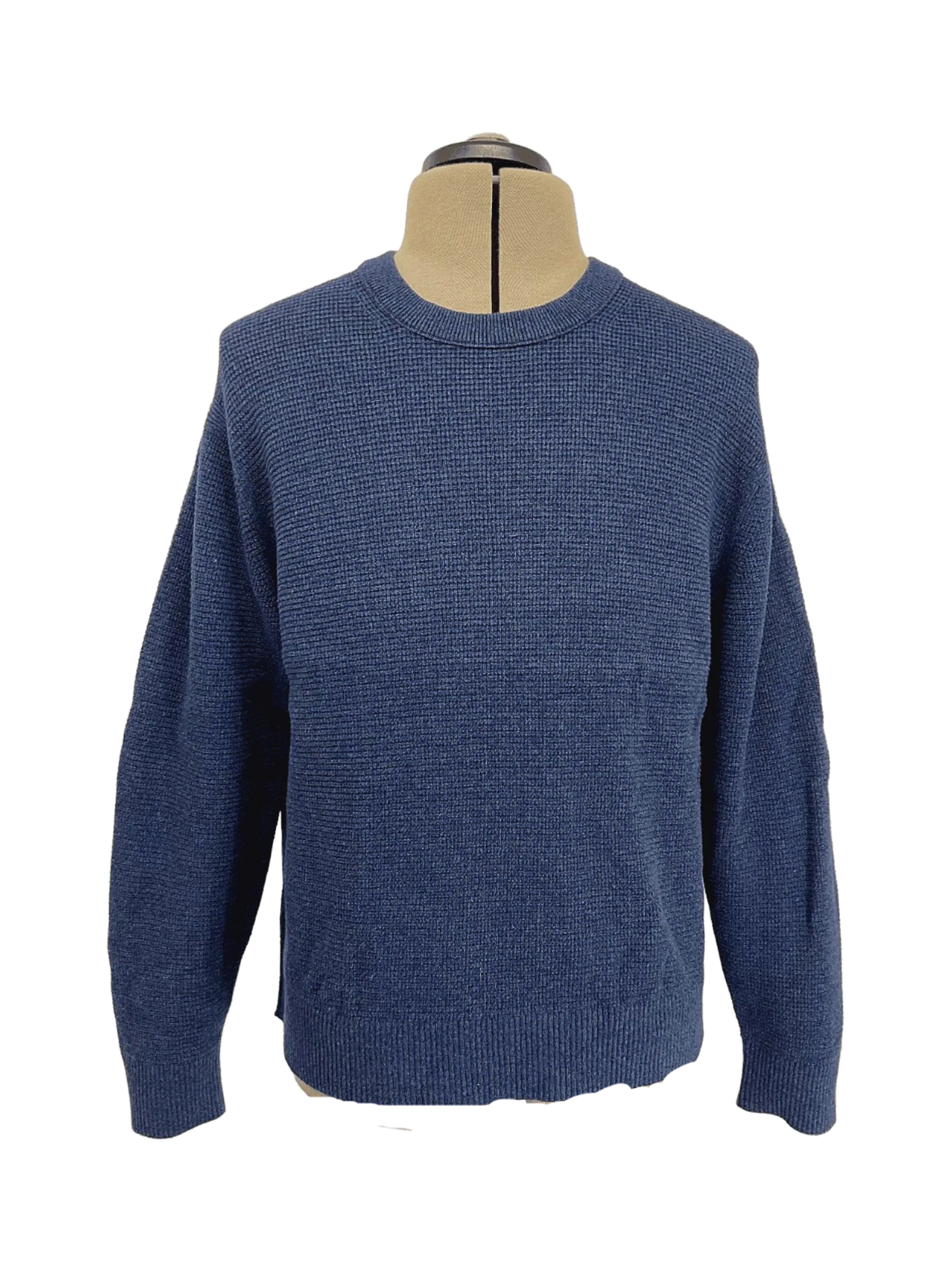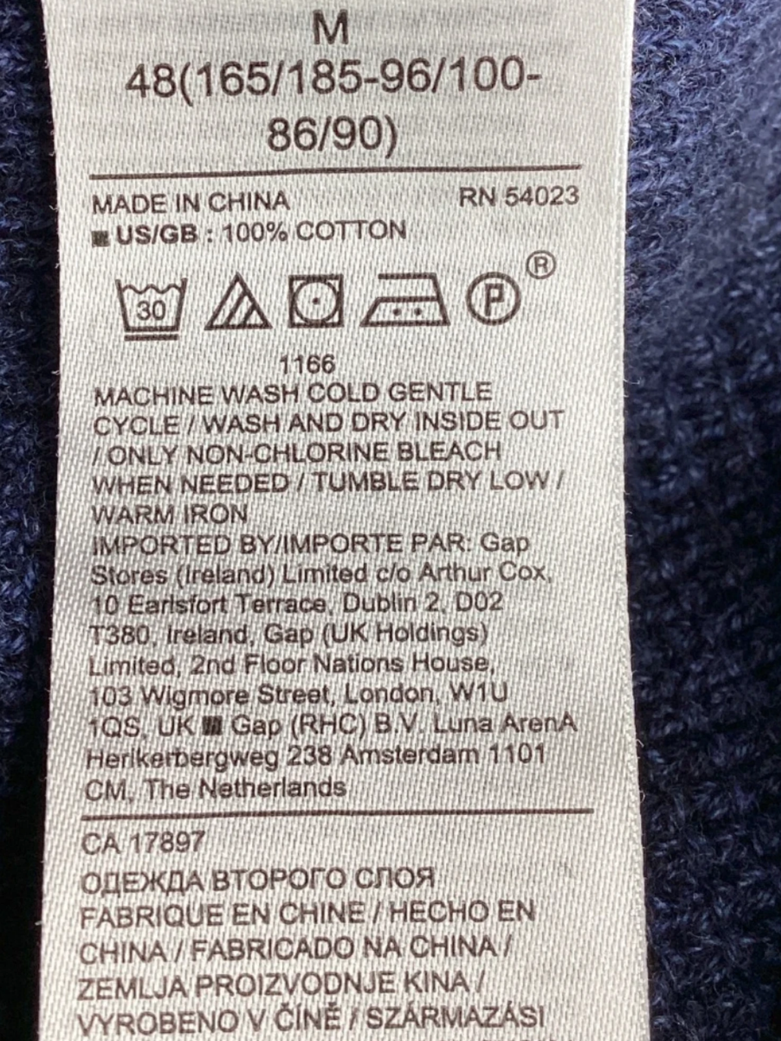 This is a medium-sized Banana Republic navy long sleeve organic cotton crew neck sweater. Made: 100% Cotton.