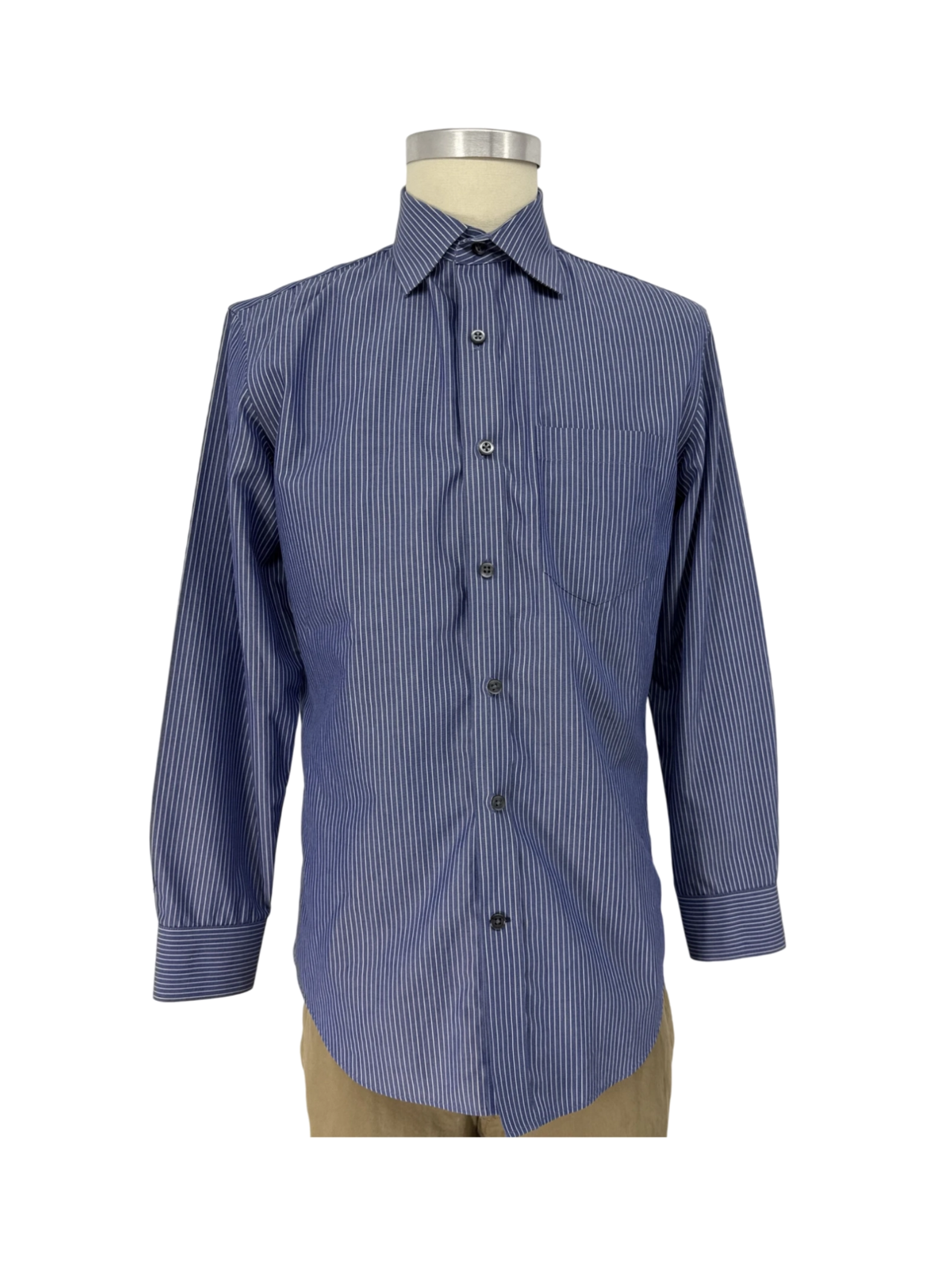 This stylish Banana Republic long-sleeve shirt is a perfect addition to any man's wardrobe. Made from a blend of high-quality fabrics, this shirt offers both comfort and durability. It features a classic button-up design, a collared neckline, and a timeless striped pattern. The shirt is in excellent condition, ready to elevate any casual or semi-formal outfit. The size is XS, ensuring a tailored fit. Perfect for those cool autumn days.