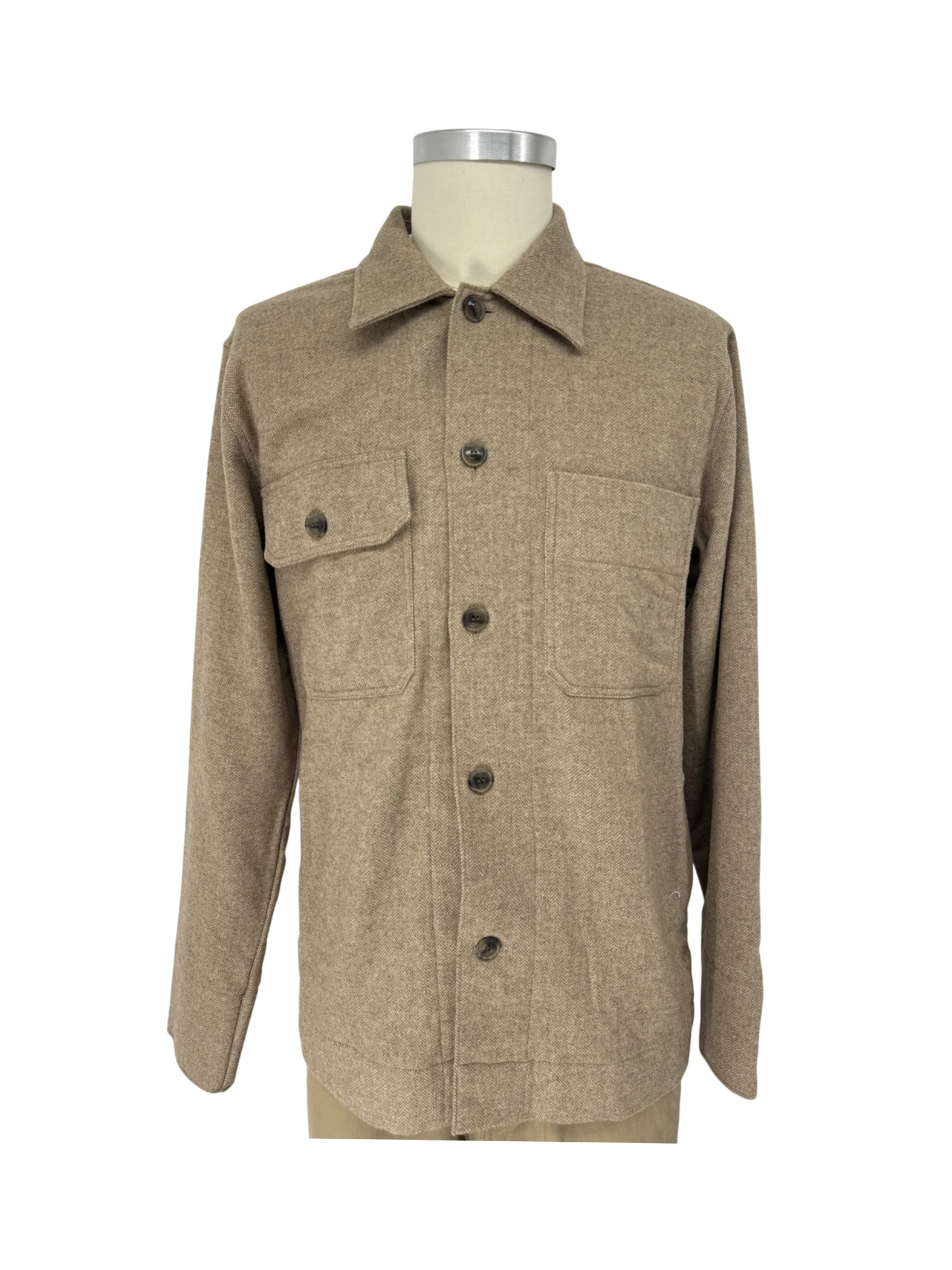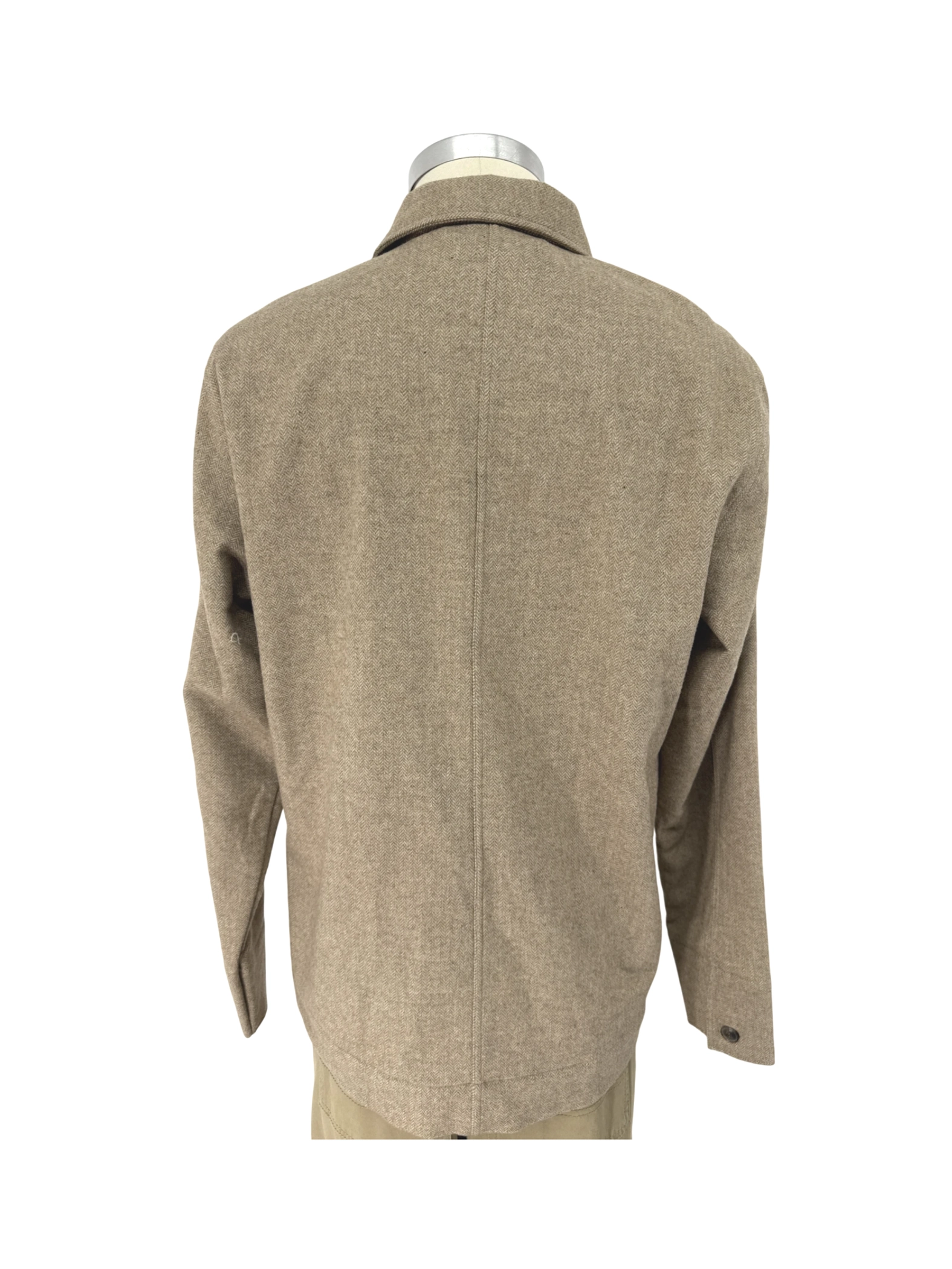 Elevate your wardrobe with this stylish Banana Republic long sleeve shirt, perfect for the fall and winter seasons. Made from a quality wool blend, this pre-owned shirt features a classic collar and button-up closure. The neutral brown color makes it versatile for various outfits. This shirt is a great addition to any man's closet, offering both comfort and sophistication. A perfect staple for casual wear, this shirt is an excellent choice for creating a polished, timeless look. The jacket is in great condition.