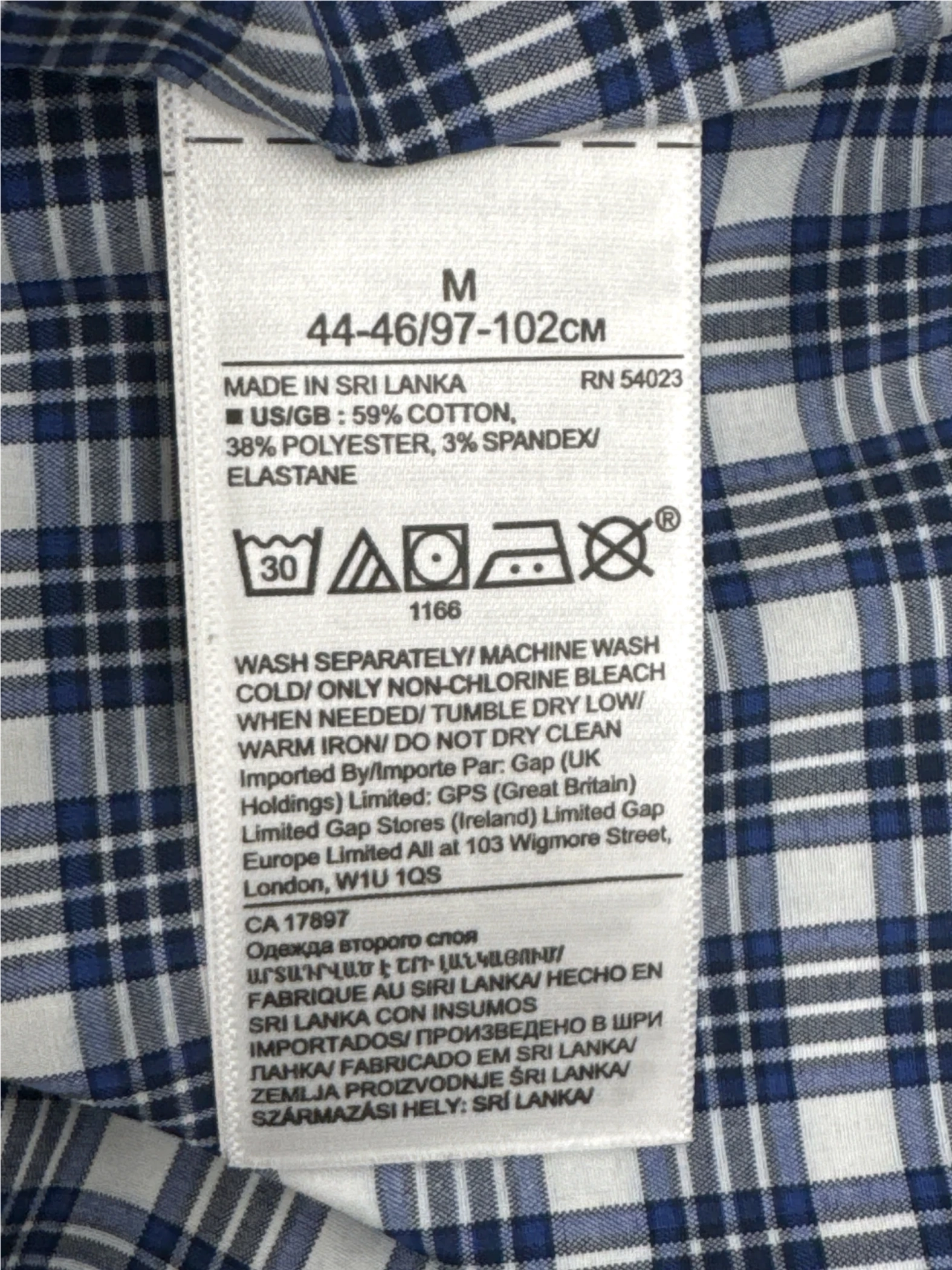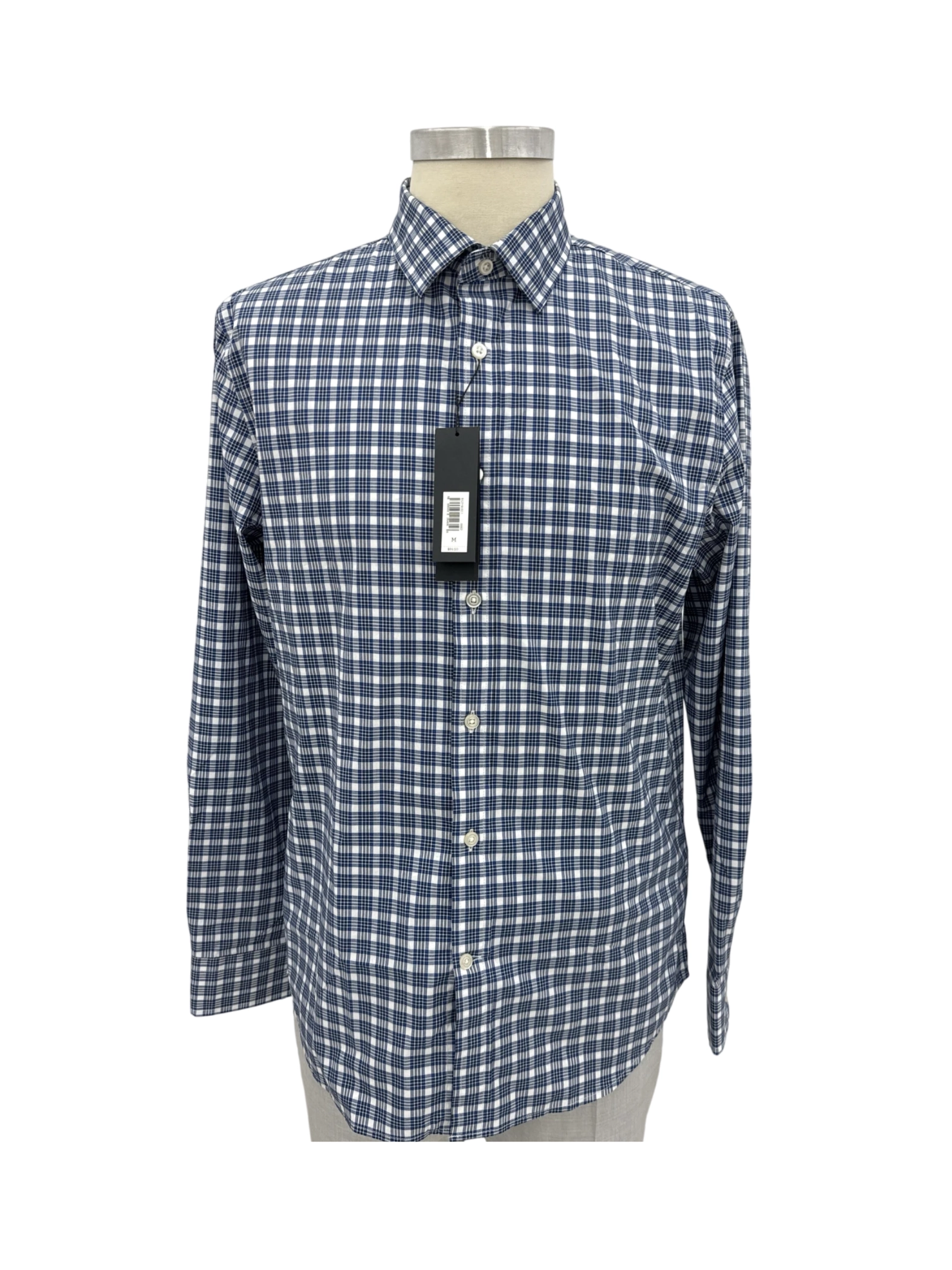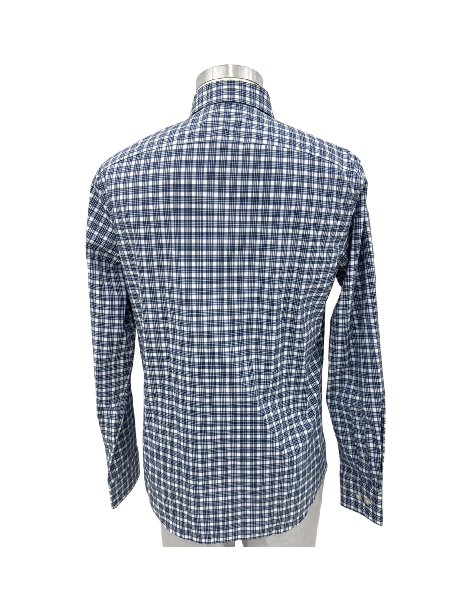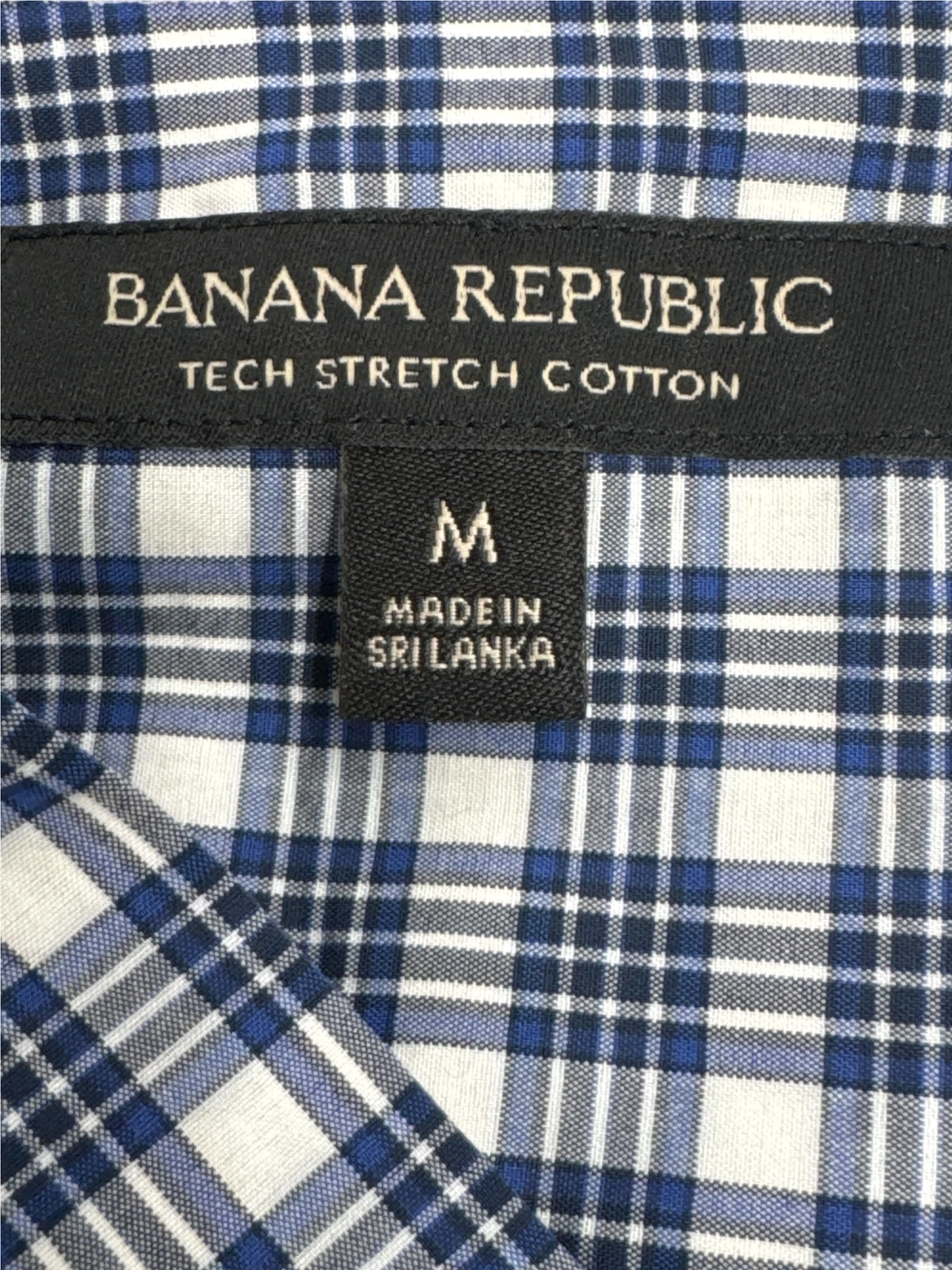 Elevate your wardrobe with this stylish pre-owned Banana Republic long sleeve shirt. Crafted with a blend of cotton, polyester, and spandex for comfort and stretch, this shirt features a classic plaid pattern in blue and white. Perfect for spring and fall, the shirt showcases a collared neckline and a button-down closure. Ideal for a sophisticated, yet casual look. Made in Sri Lanka, the shirt is in great condition and ready to be worn.