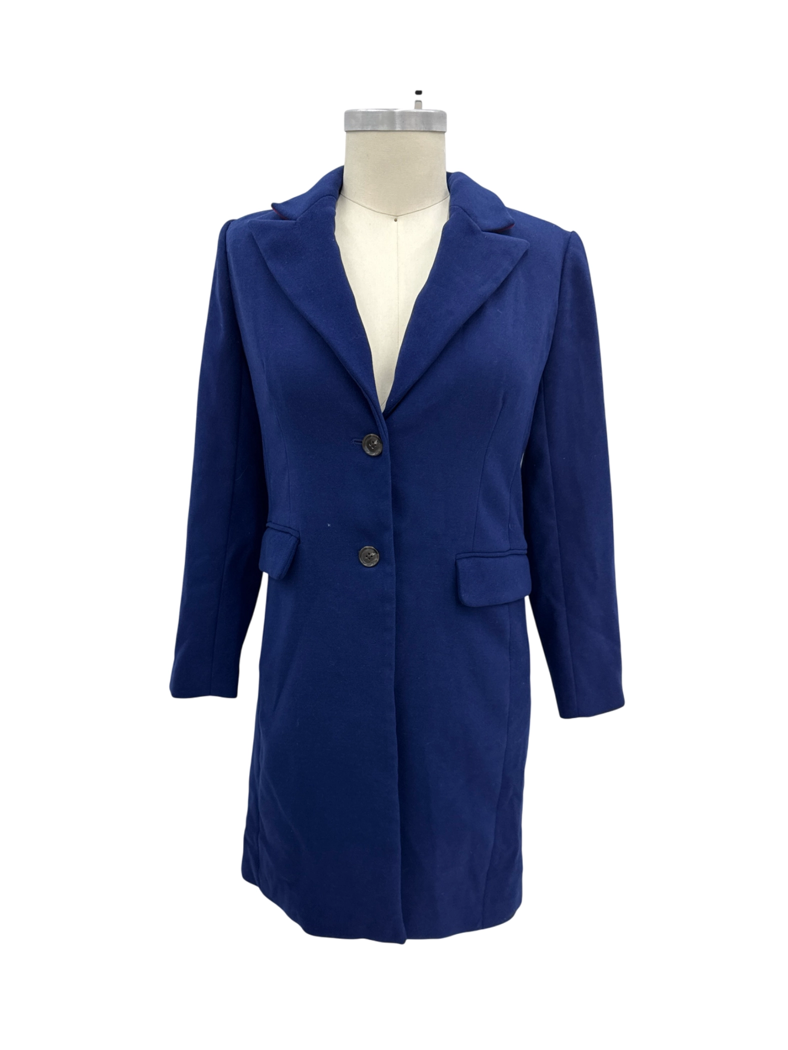 Elevate your wardrobe with this stylish Banana Republic blazer/coat. Crafted from a blend of premium materials, this piece offers both comfort and sophistication. The classic design, featuring a sleek silhouette and timeless blue hue, makes it a versatile addition to any outfit. Perfect for layering during cooler seasons, this pre-owned gem is a must-have for the fashion-conscious individual seeking quality and value. Dress it up or down, this piece is sure to become a staple in your collection.