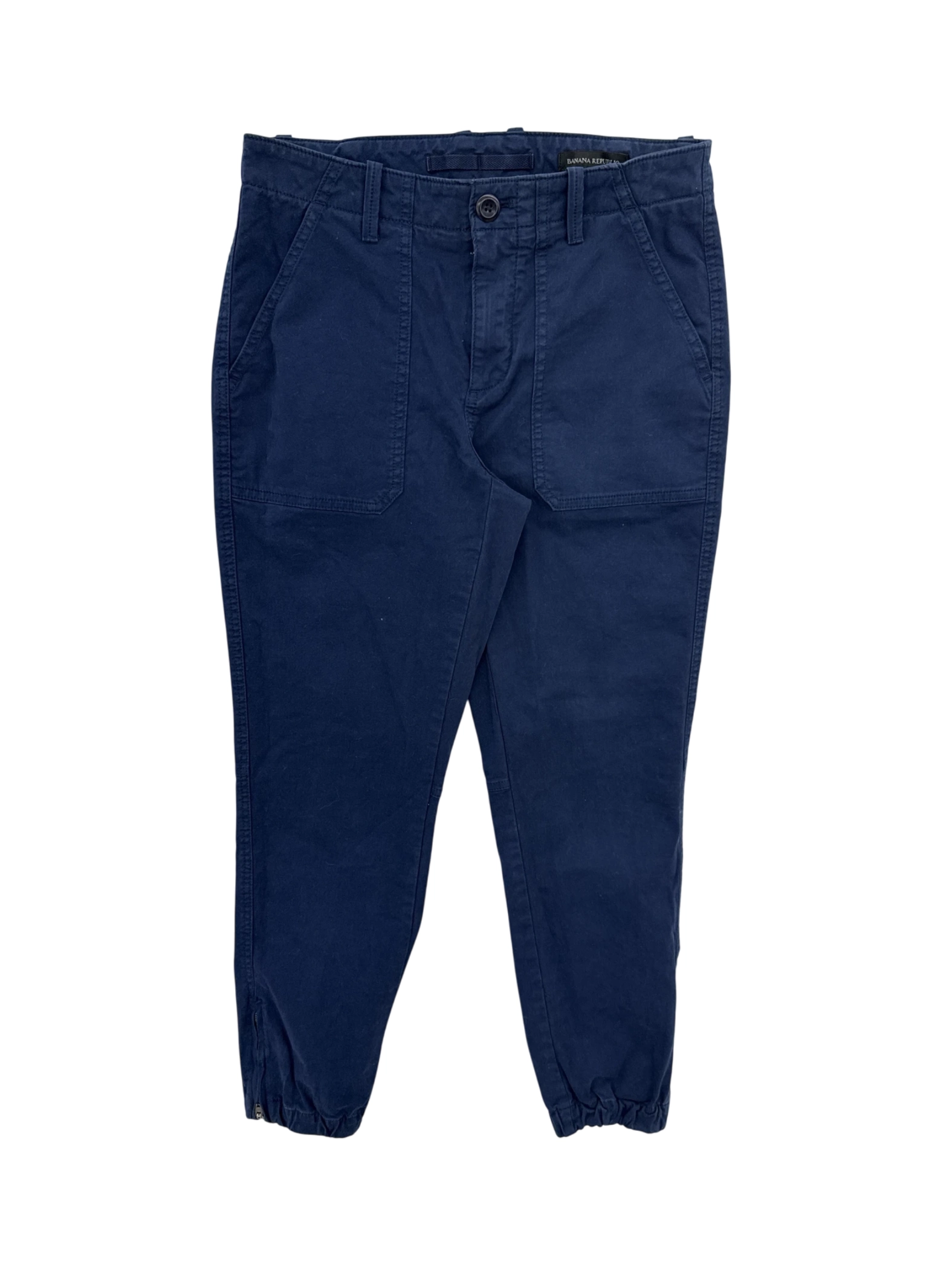 Elevate your wardrobe with these pre-owned Banana Republic cargo jogger pants in a rich navy blue hue. Crafted with a blend of cotton and spandex, these pants offer both style and comfort. The sleek, skinny leg and slim fit silhouette provide a modern and flattering look. Featuring practical cargo pockets and a comfortable jogger design, these versatile pants are perfect for various occasions. Excellent condition, ready to be worn and enjoyed.