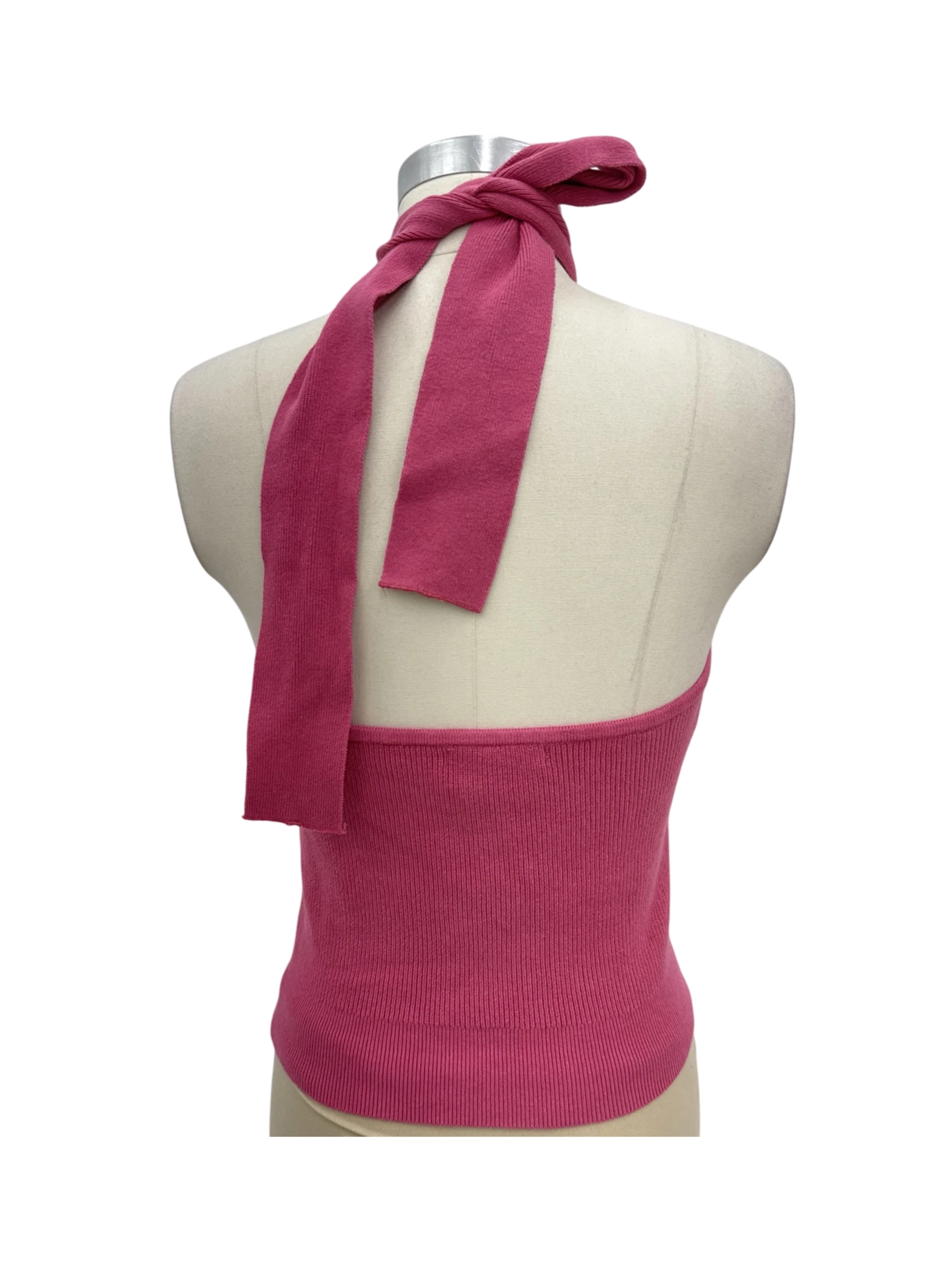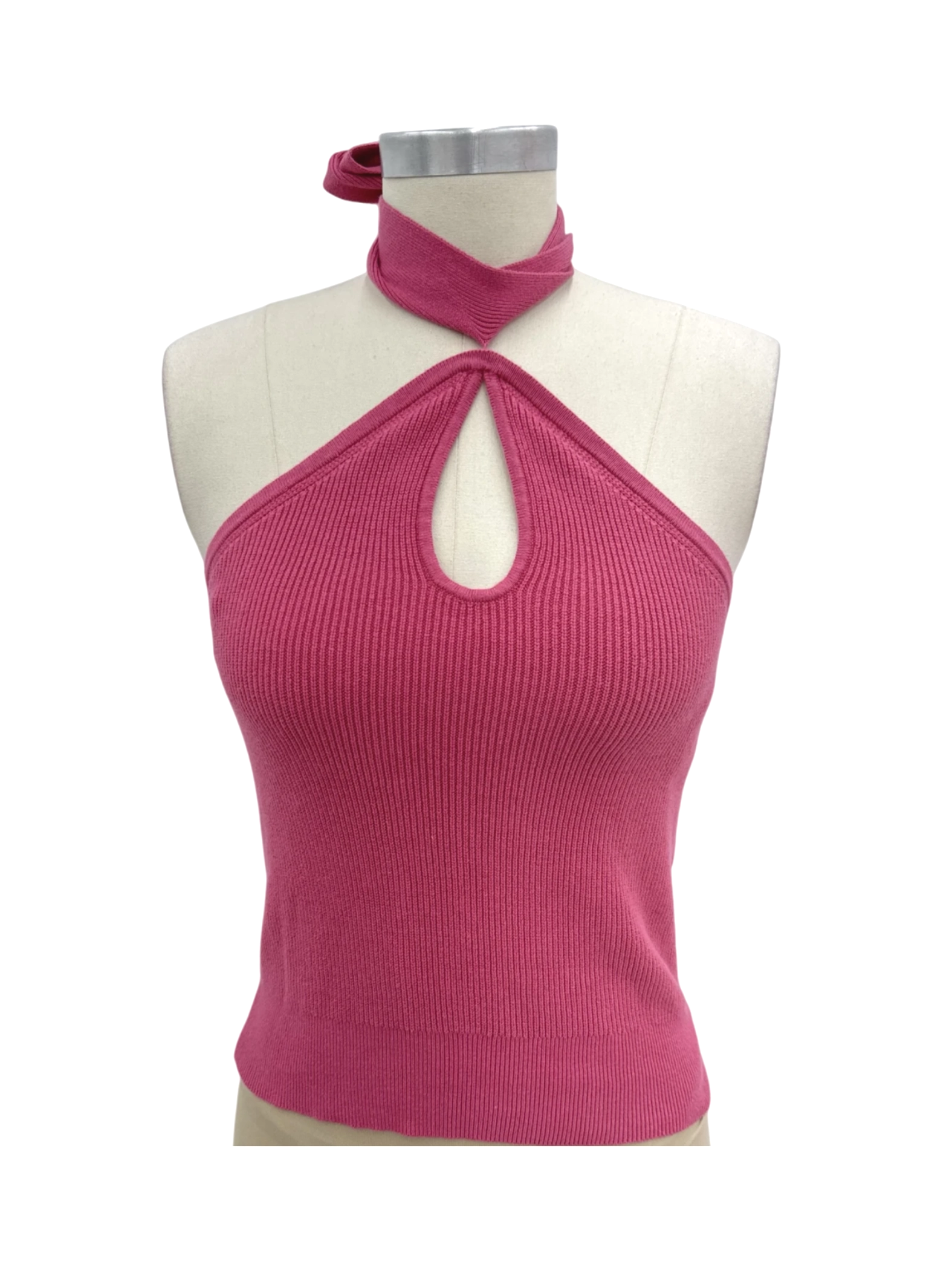 Elevate your wardrobe with this stylish and chic Banana Republic halter top. Perfect for warm weather, this pre-owned tank top features a flattering keyhole design and a cropped silhouette. Made from a comfortable blend of cotton, nylon, and spandex, this top is easy to care for and wear. The vibrant pink color makes it a versatile piece for various occasions. A perfect addition to any fashion-conscious woman's collection.