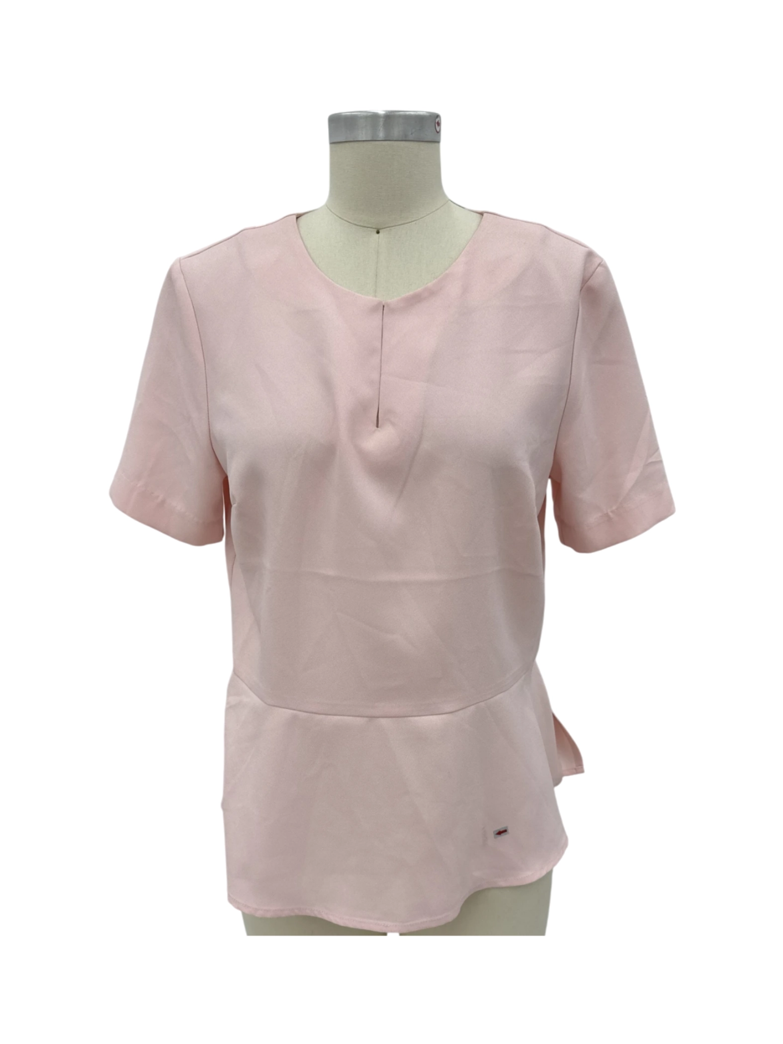 Pre-owned Banana Republic blouse in a soft pink color, perfect for adding a touch of elegance to any outfit. This stylish top features a flattering design with short sleeves and a classic neckline. Crafted from 100% polyester, this blouse offers both comfort and durability. Ideal for spring or summer, this blouse is a versatile addition to your wardrobe.