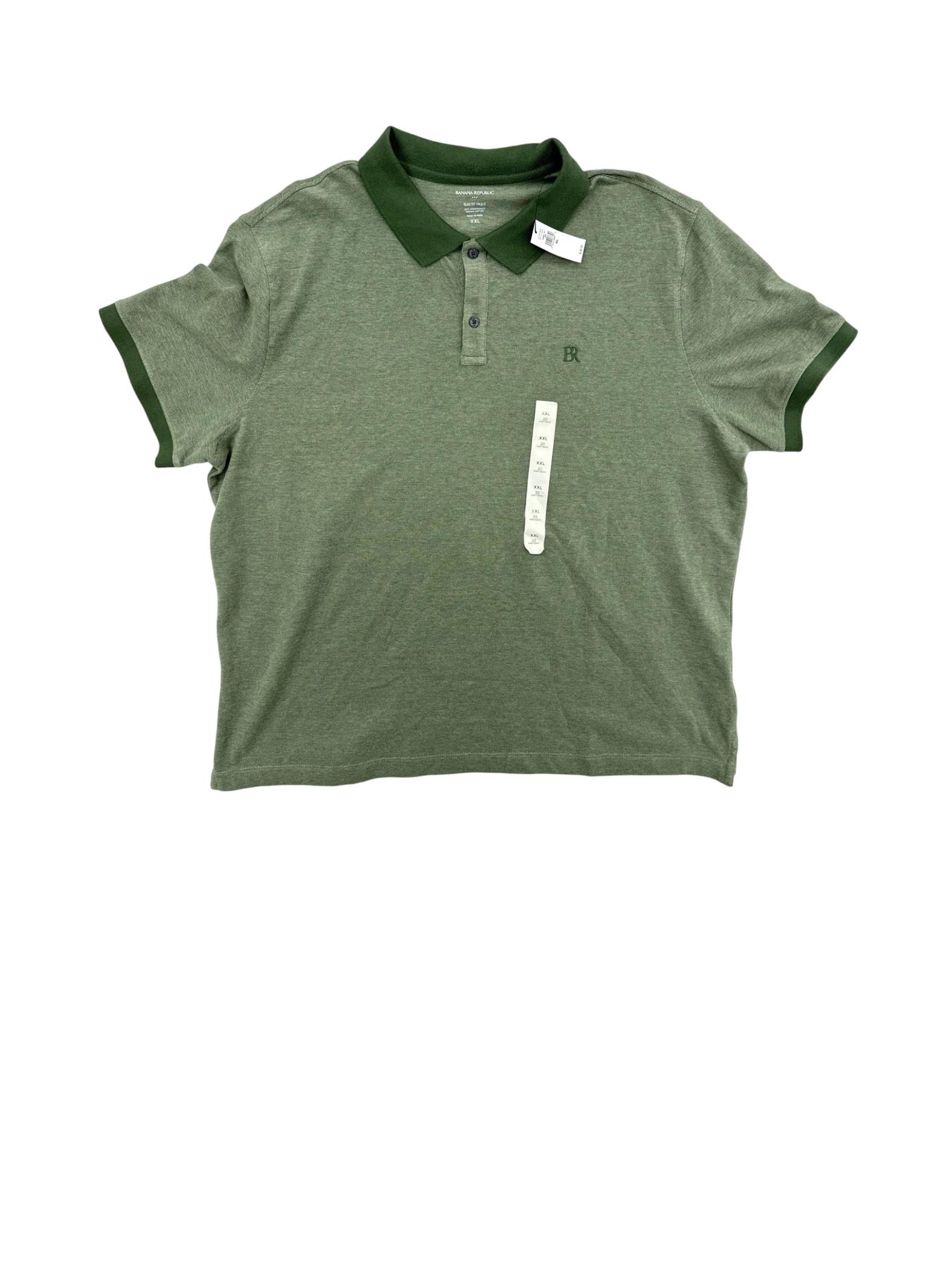 Elevate your casual wardrobe with this pre-owned Banana Republic polo shirt. Crafted from 100% organically grown cotton, this slim fit pique polo offers both comfort and style. Featuring a classic collar and short sleeves, it's perfect for warm weather. The versatile green hue makes it easy to pair with various bottoms. This polo is an excellent addition to any man's closet. Made in India, this high-quality shirt is a must-have for the modern man.