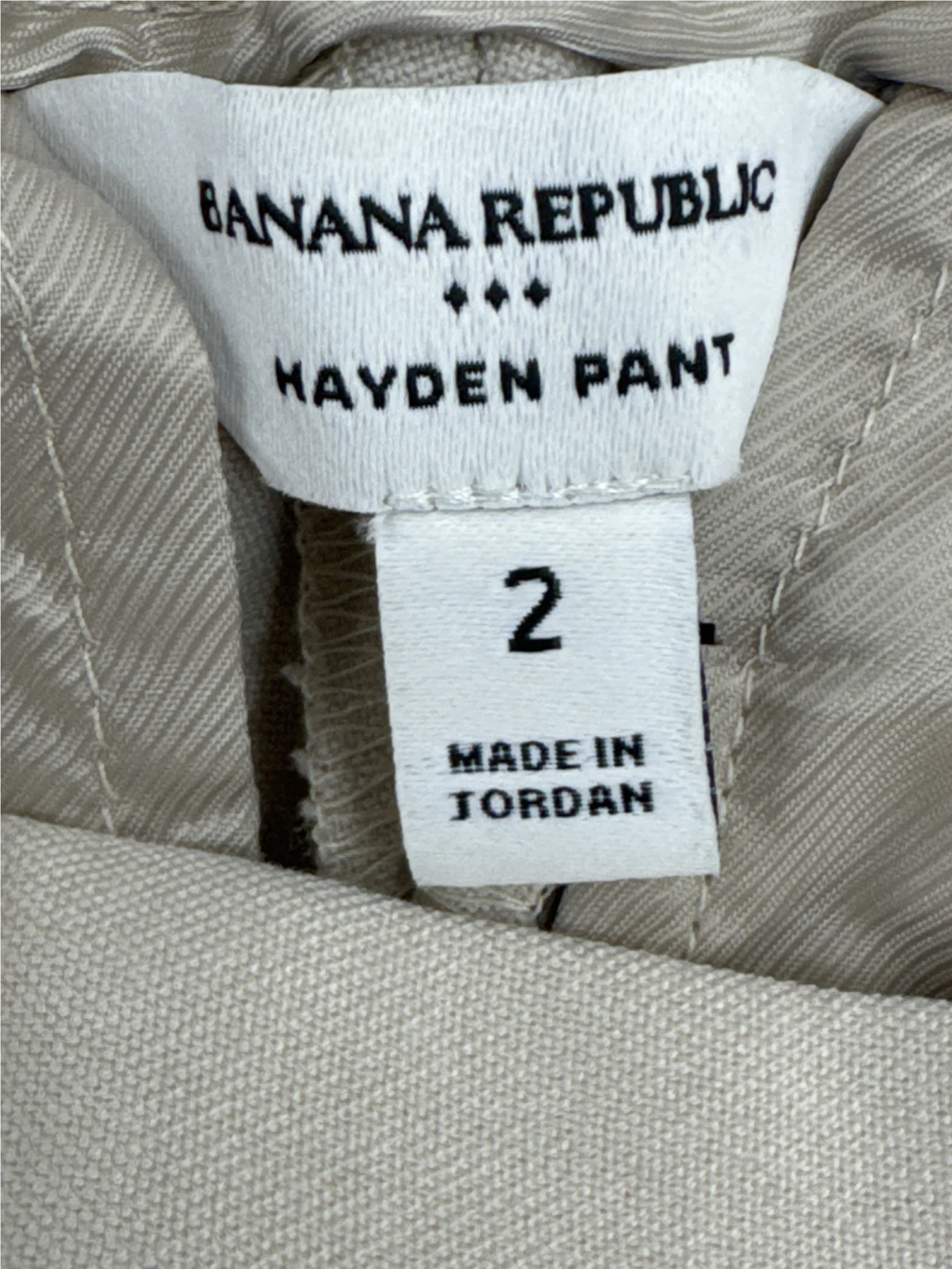 Elevate your wardrobe with these pre-owned Banana Republic Hayden pants. These stylish wide-leg pants are perfect for creating a chic and comfortable look. Made from a blend of polyester, rayon, and spandex, these pants offer a comfortable fit with a touch of stretch. The neutral beige color makes them versatile for pairing with various tops and shoes. Ideal for spring, summer, and fall, these pants are a great addition to any fashion-forward closet. Size 2.