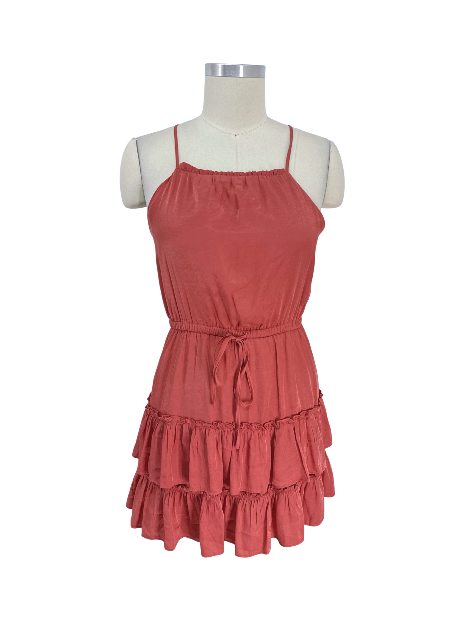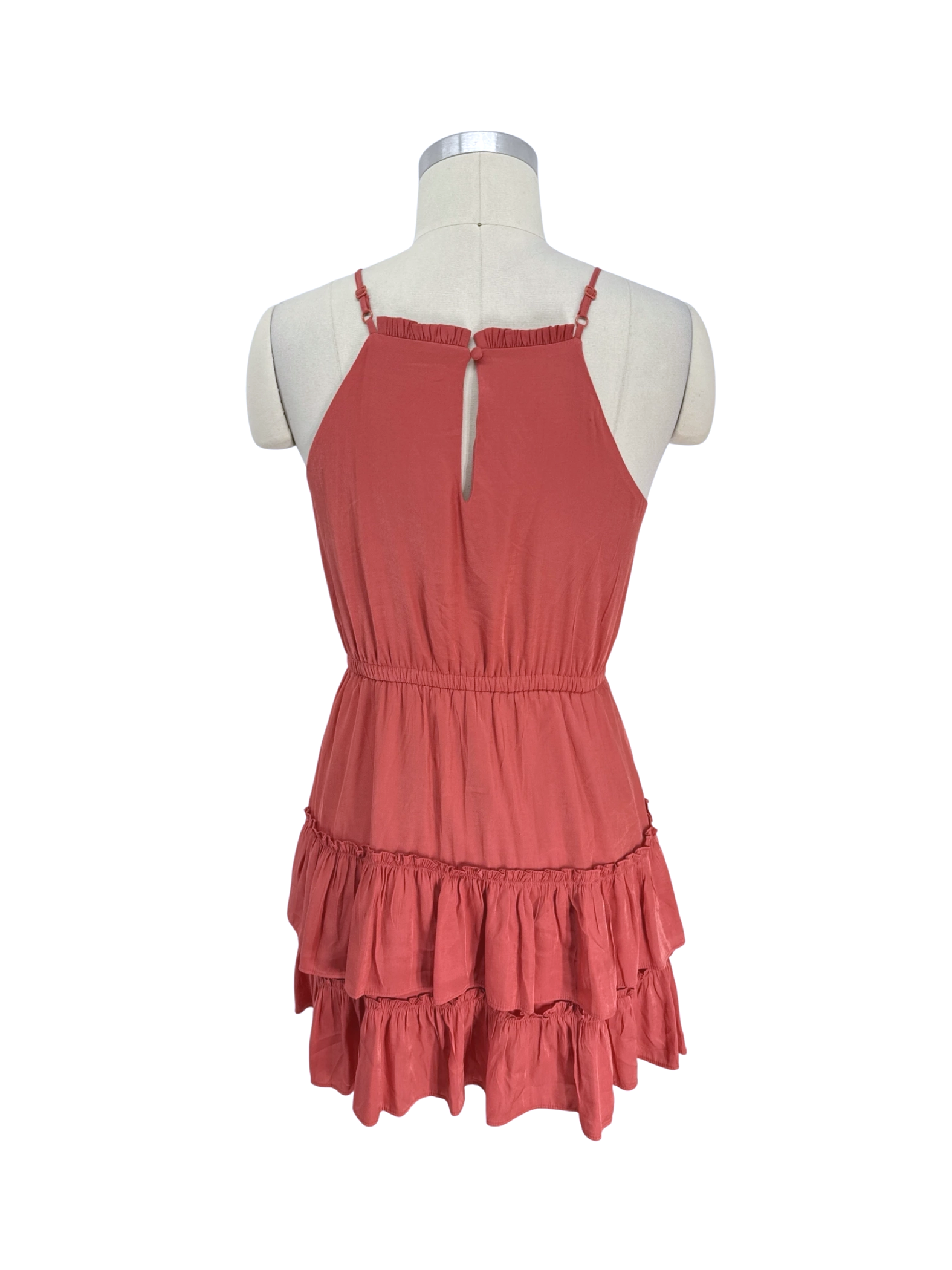 This adorable bar III dress is perfect for a summer day or spring outing! It features a flattering A-line silhouette in a beautiful peach color. The lightweight and flowing material makes it comfortable and easy to wear. This pre-owned dress is in great condition and ready to be added to your wardrobe. A versatile dress that is perfect for casual wear.
