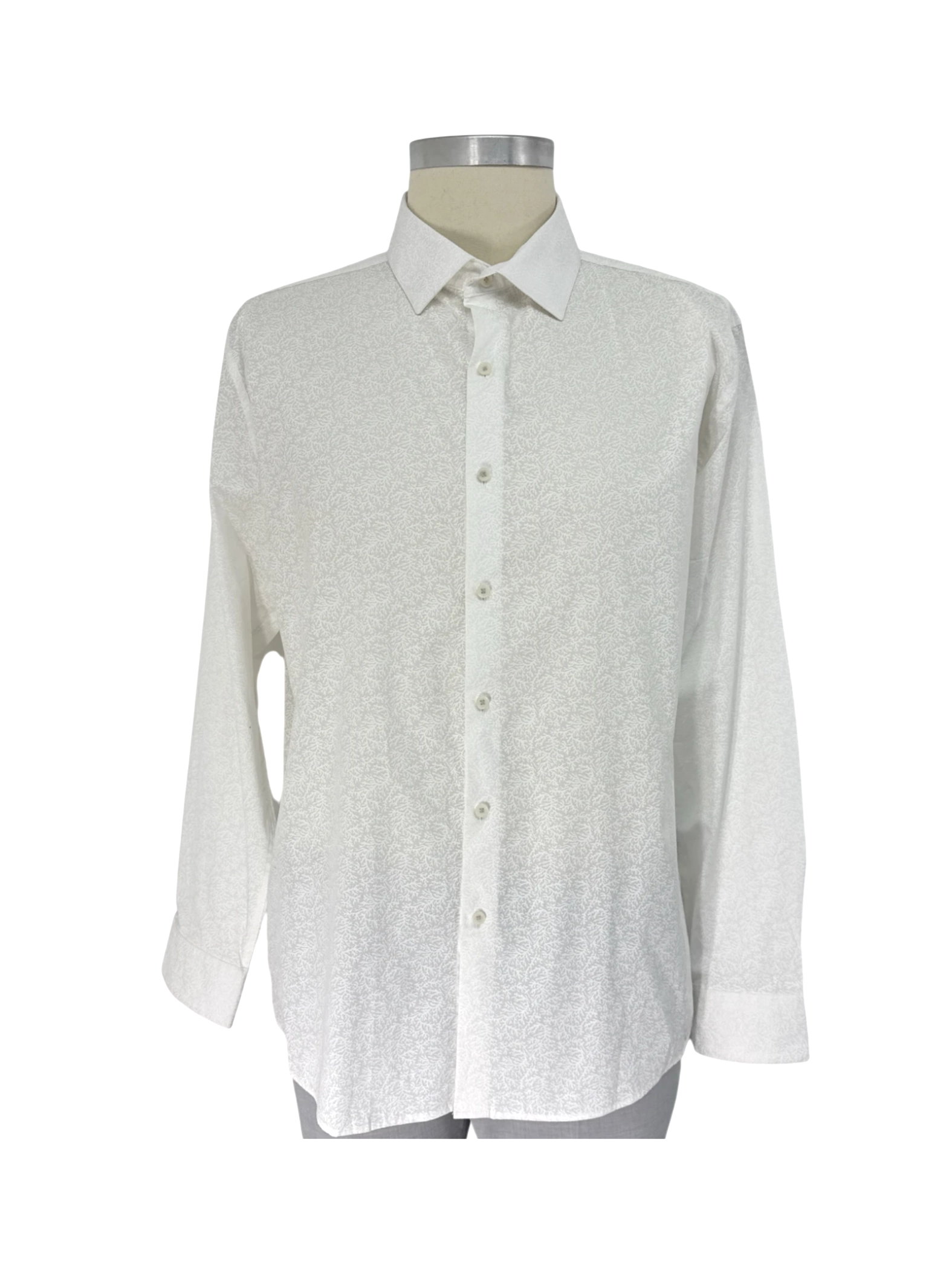 Elevate your wardrobe with this pre-owned bar III men's shirt. Crafted from 100% cotton, this slim-fit shirt features a classic collar and long sleeves, perfect for a polished look. The white floral pattern adds a touch of sophistication. Ideal for the fall, winter and spring seasons, this shirt is a versatile addition to any stylish man's collection. Made in Indonesia.