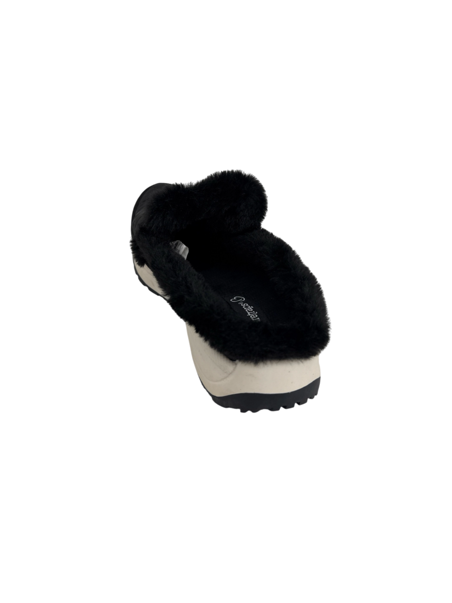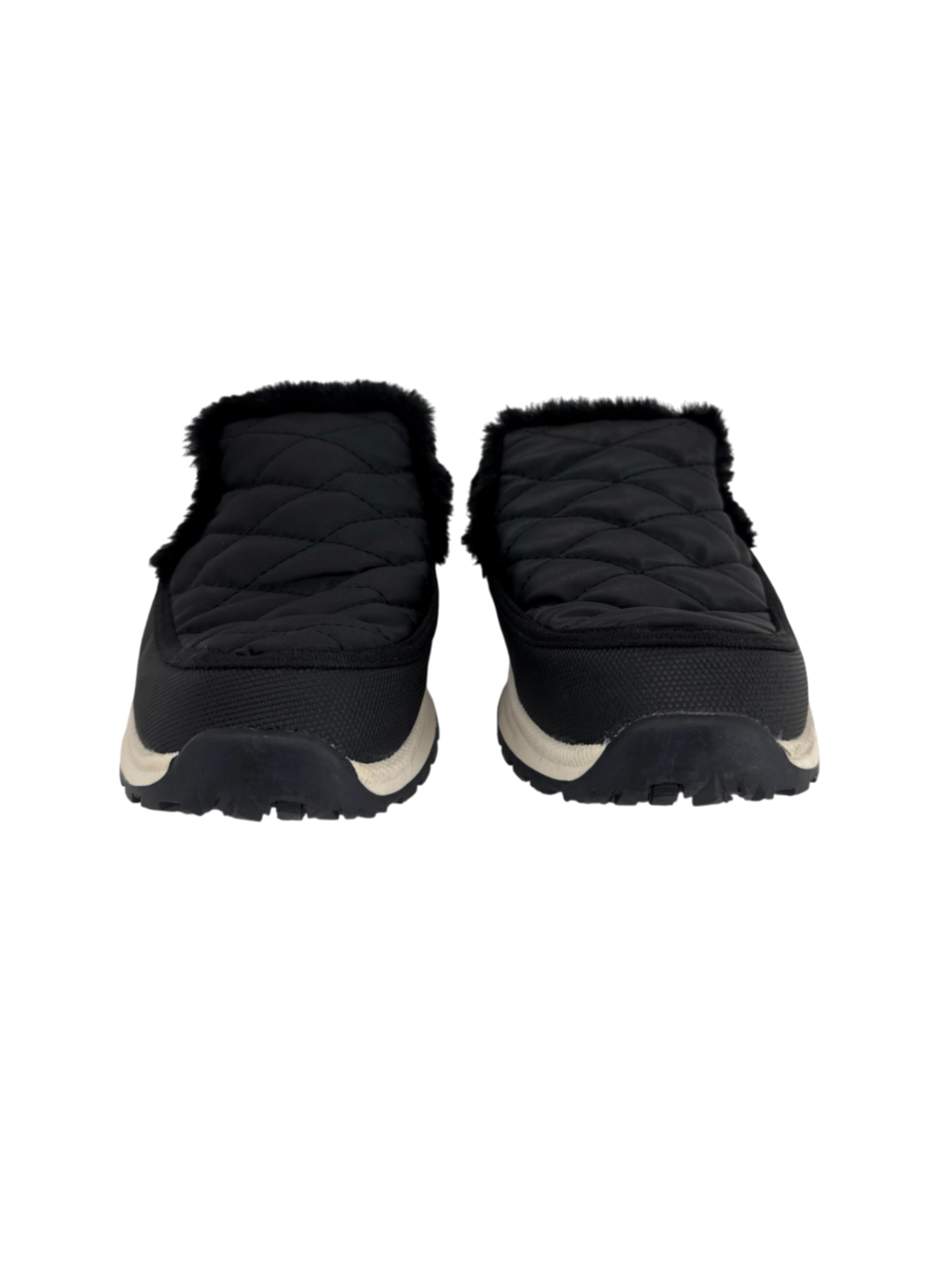 Cozy up with these pre-owned women's slip-on slippers, perfect for chilly days. Featuring a quilted design with faux fur lining, these slippers provide both warmth and style. The black color and simple design make them versatile for any outfit, while the durable sole offers comfort and support. These slippers are ideal for lounging at home or running quick errands. Comfortable and stylish, they are the perfect addition to your casual wardrobe.