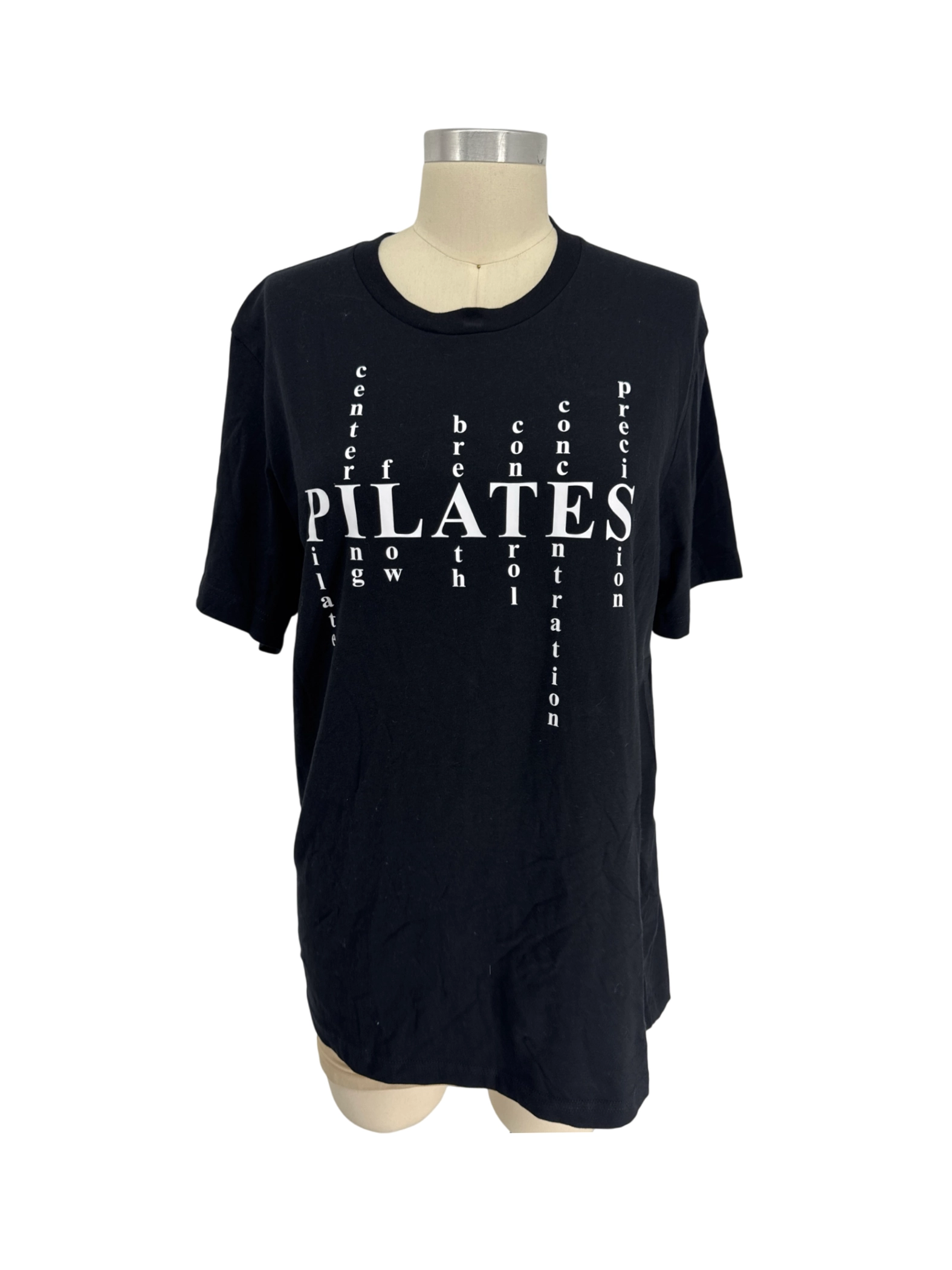 Elevate your workout wardrobe with this stylish black Pilates T-shirt by Bella + Canvas. Made from 100% soft cotton, it's perfect for workouts or casual wear. Featuring a unique Pilates-themed design, this top offers both comfort and style. This pre-owned shirt is in excellent condition and ready to add a touch of elegance to your collection. It's an ideal choice for Pilates enthusiasts seeking fashionable and comfortable apparel.
