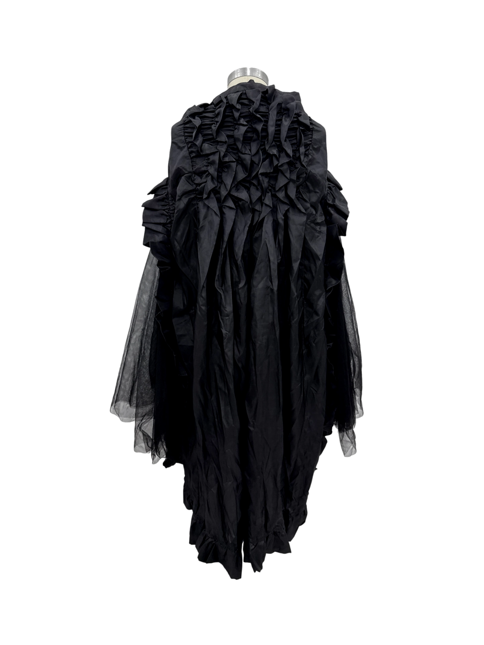 Embrace dramatic flair with this pre-owned Belle Poque skirt, a unique piece designed to make a statement. This black, asymmetrical maxi skirt features intricate tiered layers and a touch of tulle, perfect for special occasions. Crafted from a blend of polyamide and polyester, this skirt combines elegance with a modern edge. Ideal for those who love to stand out, this skirt is a testament to bold fashion choices.
