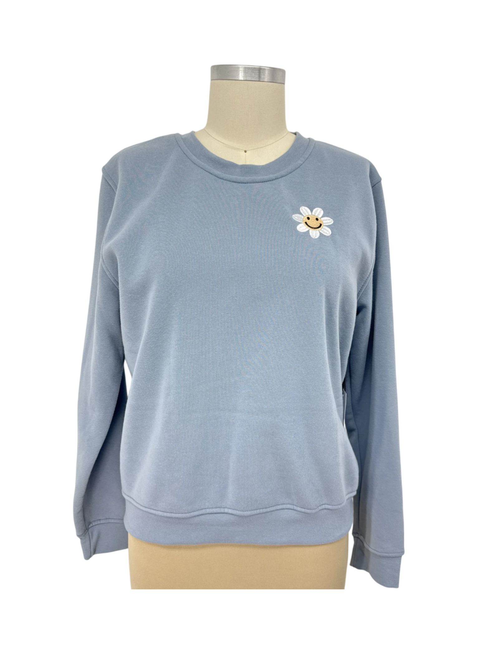 Elevate your casual wardrobe with this pre-loved better / together sweater. Featuring a classic crew neck and a charming daisy detail, this sweater offers a relaxed fit. Crafted from a comfortable cotton-polyester blend, it's perfect for cooler days. This cozy and stylish sweater is in great condition, ready to add a touch of effortless chic to your outfit. A must-have addition to any wardrobe, offering both style and comfort.