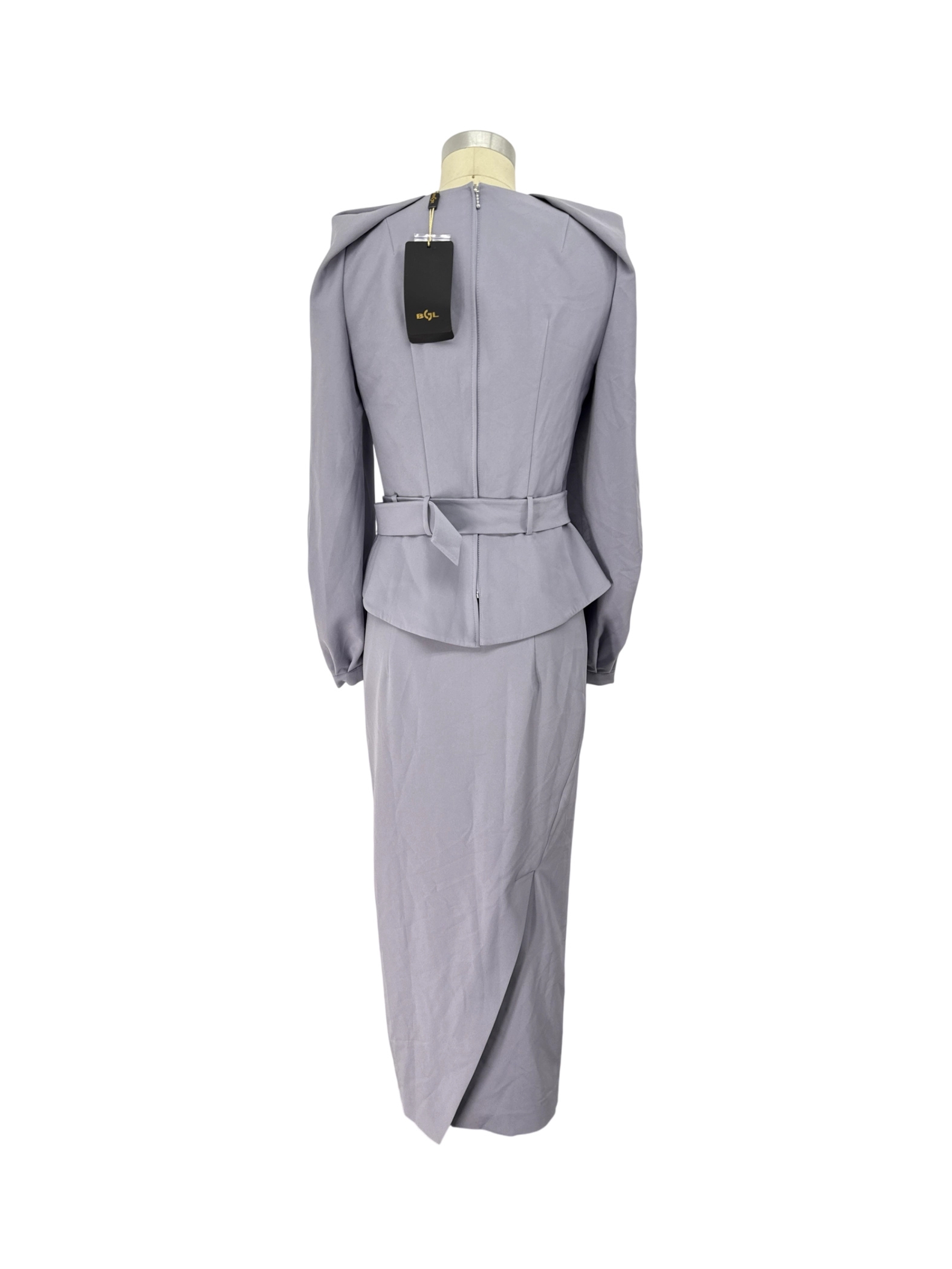 This stunning pre-owned BGL set exudes sophistication and elegance. The tailored design features a sleek gray color, perfect for a polished look. Crafted from a blend of Viscose, Polyester and Elastane, this ensemble offers both comfort and style. Ideal for the Fall season, this suit is a statement piece ready to elevate your wardrobe. This set is perfect for those seeking a timeless and chic addition to their collection. Excellent for business or a special event!