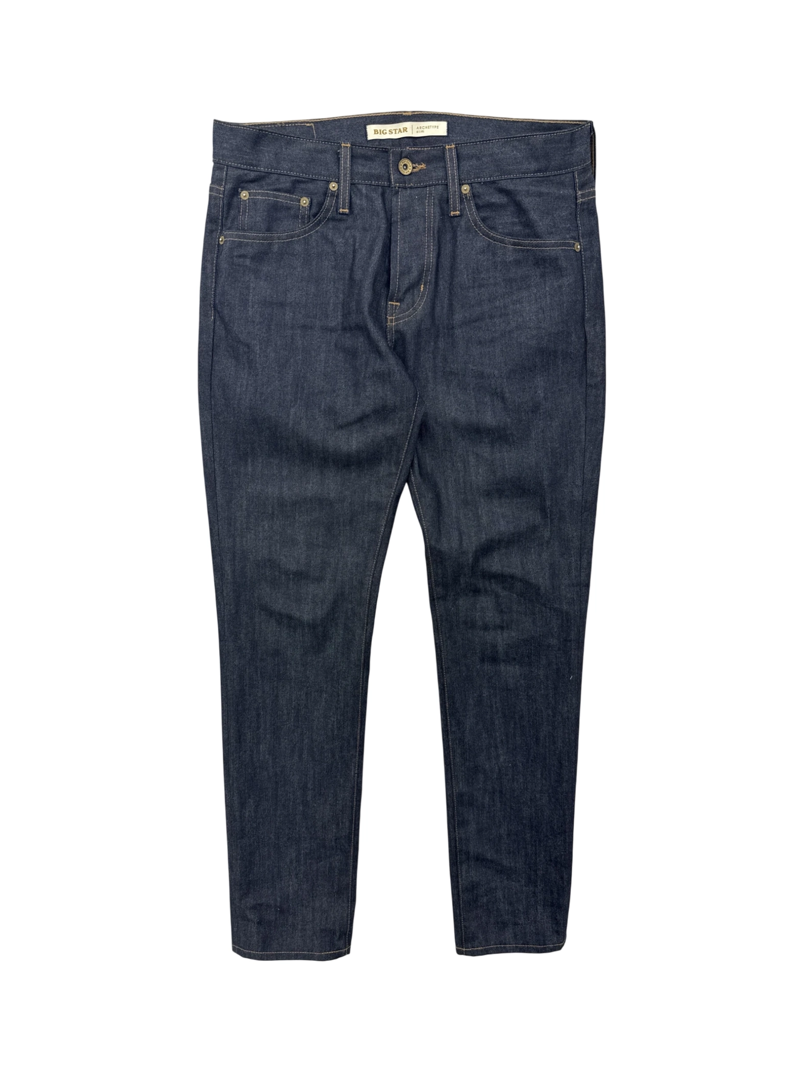 Classic Big Star denim jeans, pre-loved and ready for a new chapter. Crafted from durable cotton denim, these jeans feature a timeless straight-leg cut, perfect for a versatile wardrobe. The rich dark wash adds a touch of sophistication. They are perfect for everyday wear and can be dressed up or down with ease. Embrace the timeless appeal of denim with these Big Star jeans.