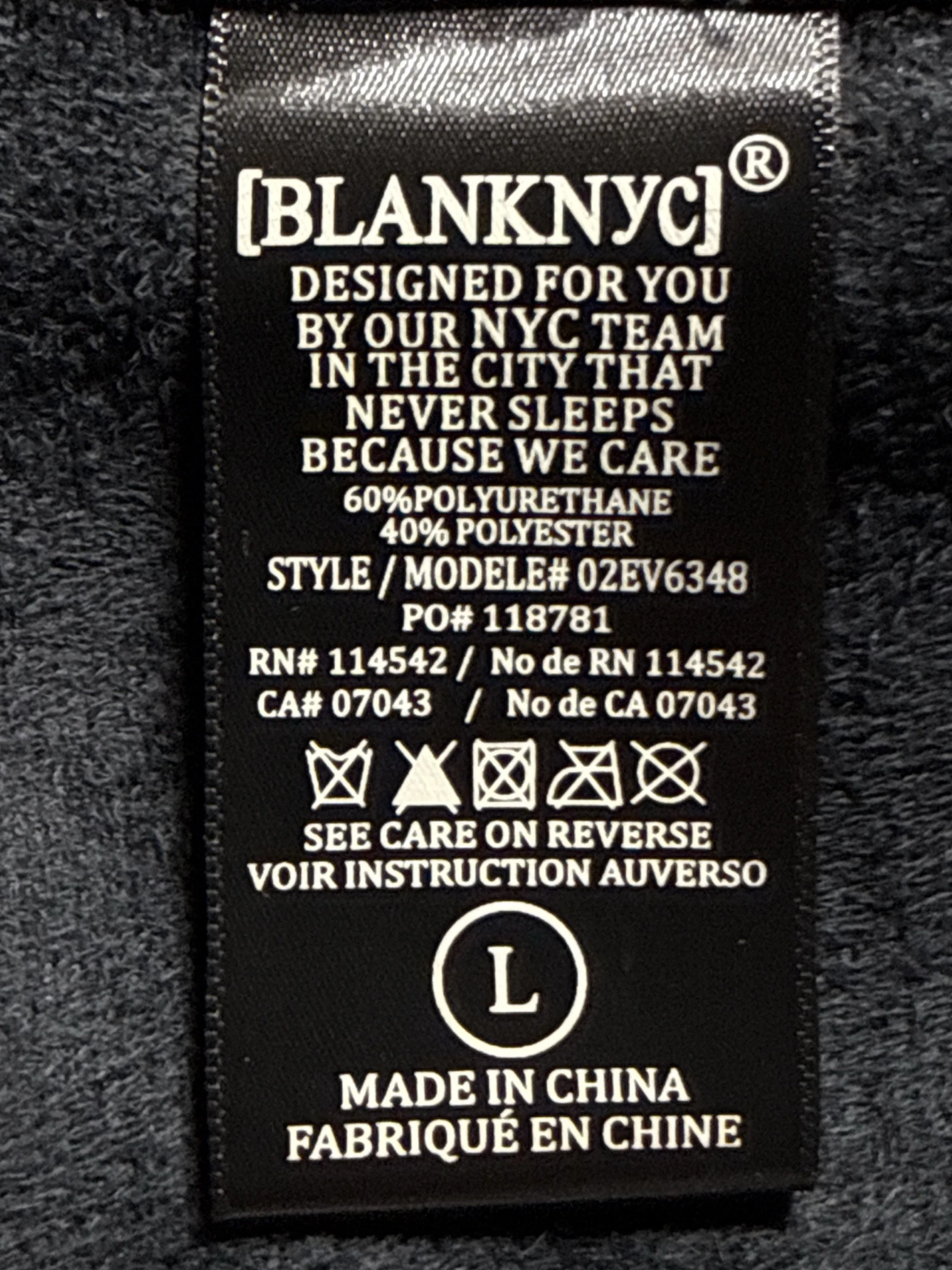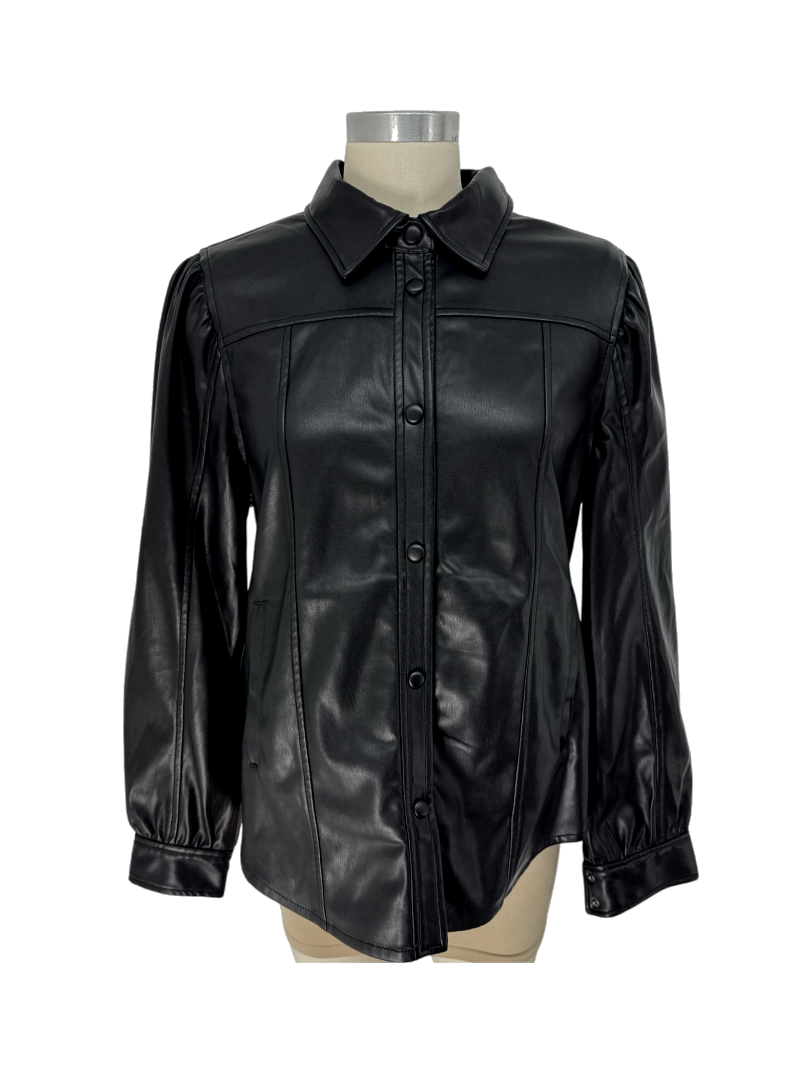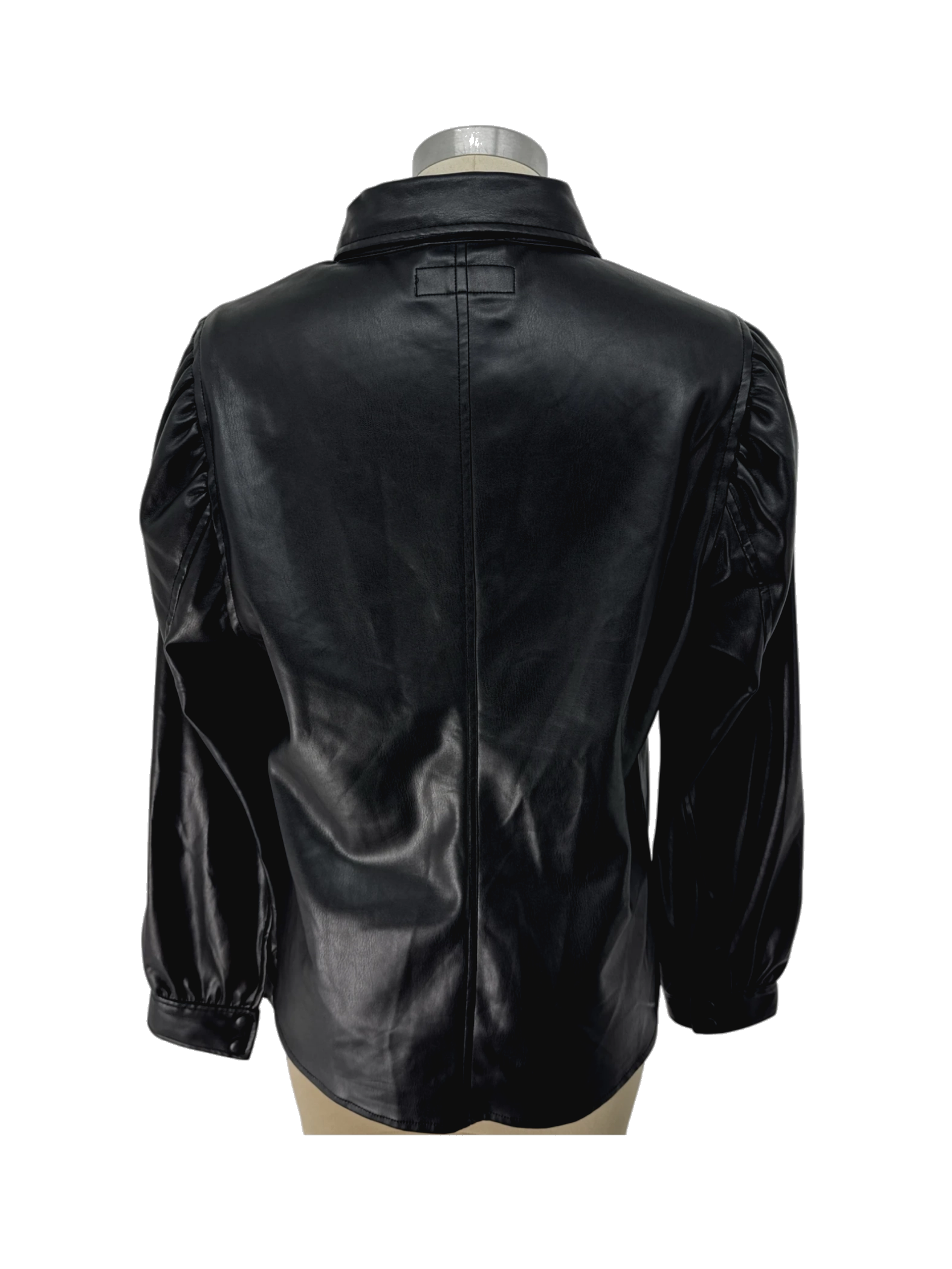 Elevate your wardrobe with this stylish pre-owned [BLANKNYC] faux leather jacket. This chic piece features a classic silhouette, a button-up closure and a sleek design. The jacket is made from a durable blend of polyurethane and polyester, ensuring both comfort and longevity. Its versatile design makes it perfect for layering over your favorite tops or dresses. With its timeless appeal and quality construction, this jacket is a must-have addition to any fashion-forward closet.