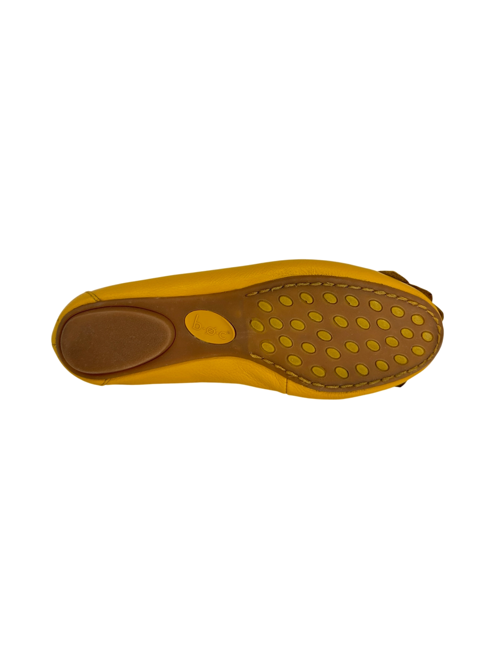 These pre-owned B.O.C. flats are a stylish and comfortable choice for any woman's wardrobe. The vibrant yellow color and floral accent add a touch of fun and femininity. These flats are perfect for spring and summer, pairing well with dresses, skirts, or jeans. The leather upper and man-made materials offer durability and a comfortable fit. With their versatile style, these flats are ideal for everyday wear, from casual outings to work.