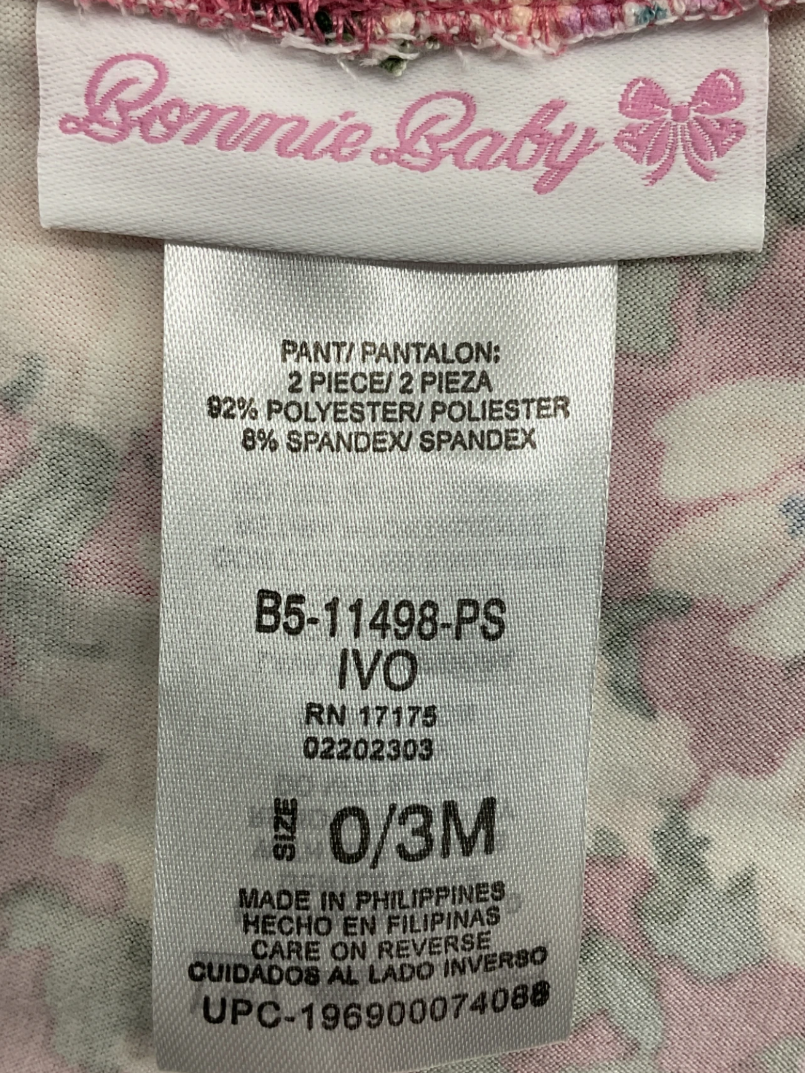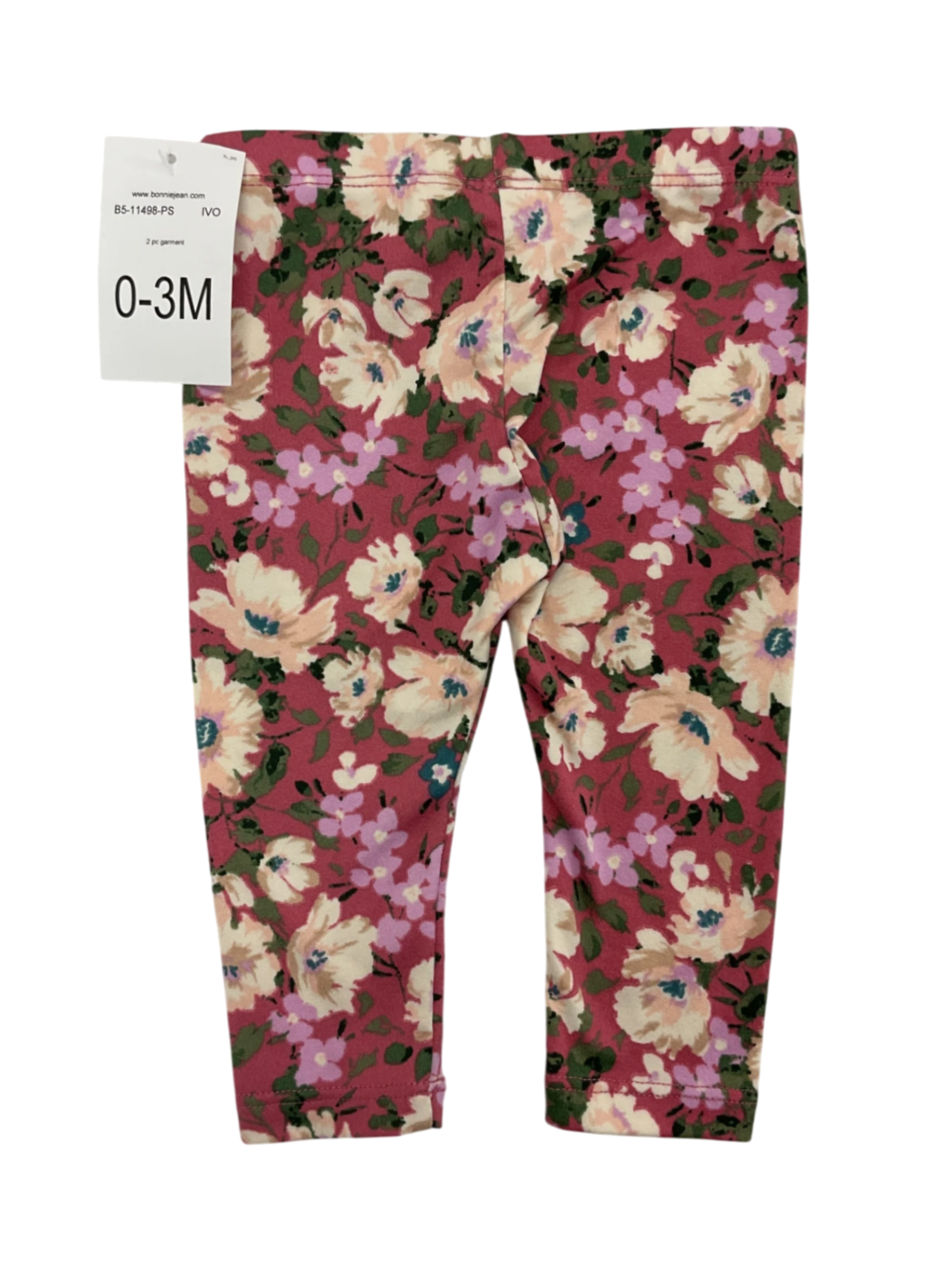 Floral pants for baby by the brand Bonnie Baby in red color, size 0-3 months.