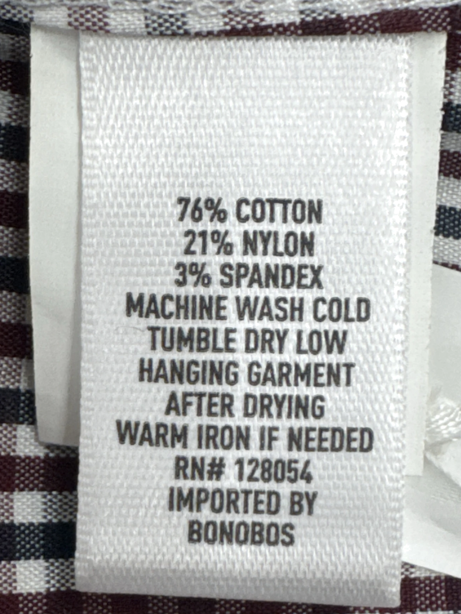 Elevate your wardrobe with this stylish, pre-owned BONOBOS long sleeve shirt. This shirt features a classic plaid pattern in black and white, perfect for versatile styling. Crafted from a comfortable blend of cotton, nylon, and spandex, it offers both durability and a great fit. Its features include a button-down closure and a collared neckline, adding a touch of sophistication to any outfit. Ideal for fall, winter, and spring. A great addition to your closet.