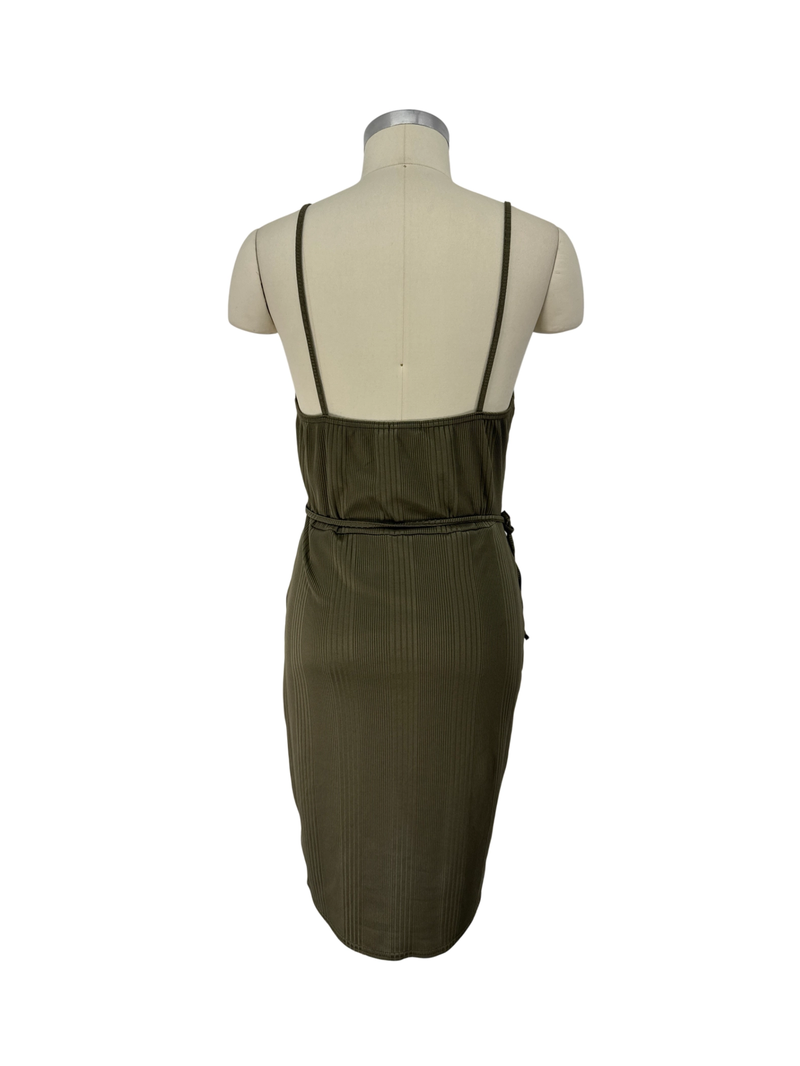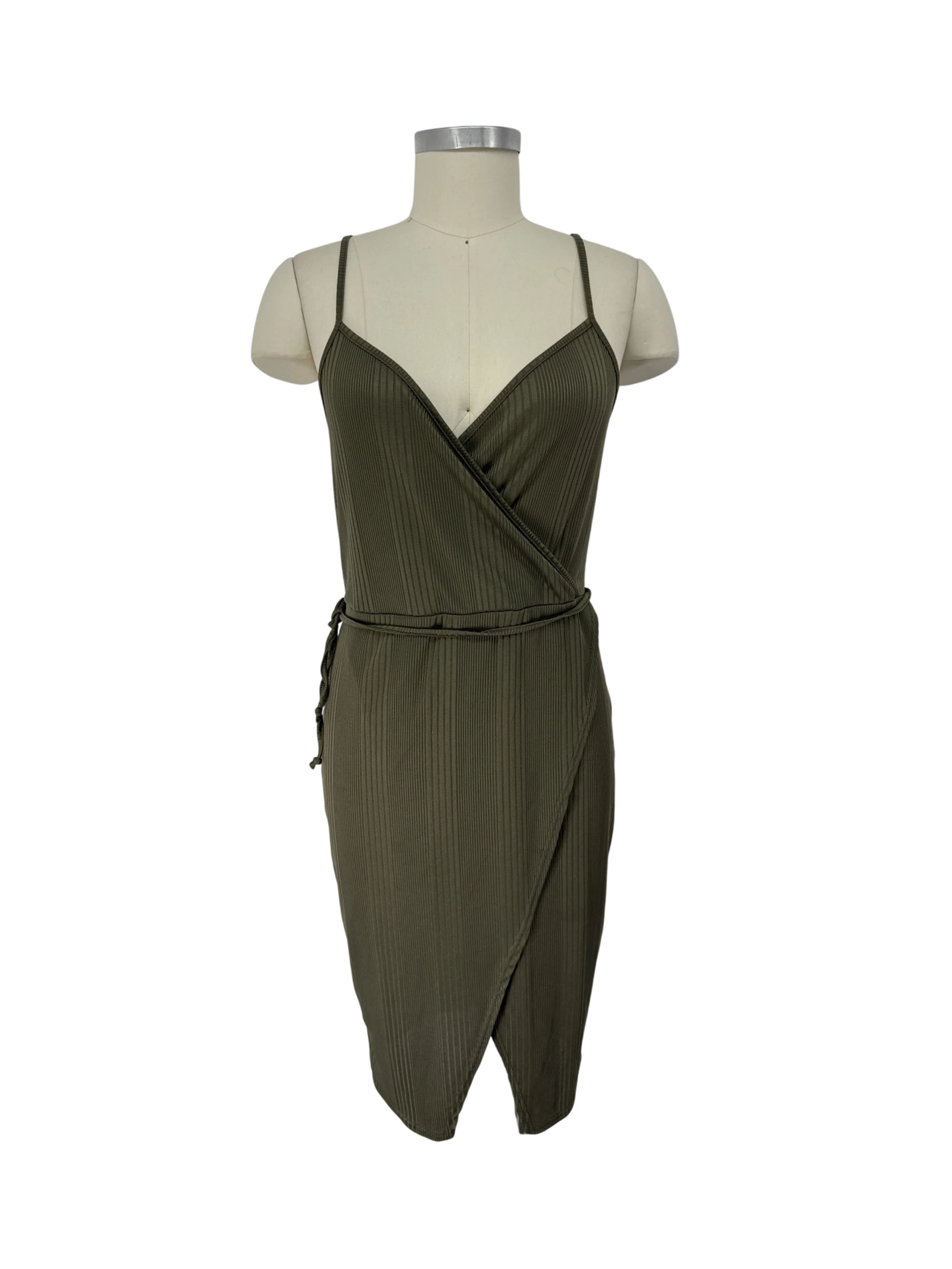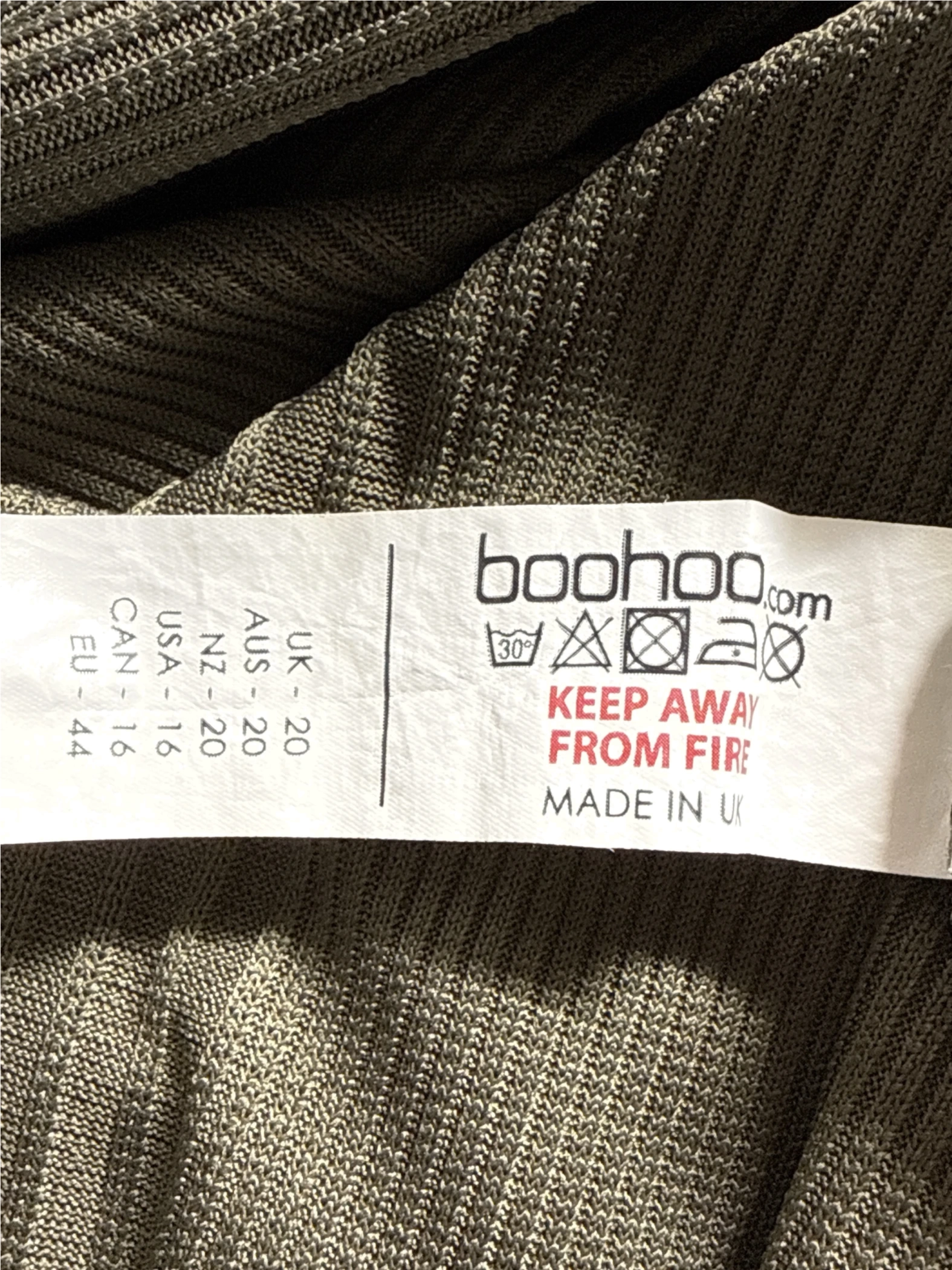 This pre-owned Boohoo wrap dress is a stylish addition to any wardrobe. The dress features a flattering V-neckline, adjustable straps, and a wrap style. The Olive color makes this dress versatile. Perfect for warm weather, casual outings, or dressing up for a night out. The material is lightweight and comfortable, ensuring you feel your best all day long. The dress comes in a size 16, ready to wear and enjoy.