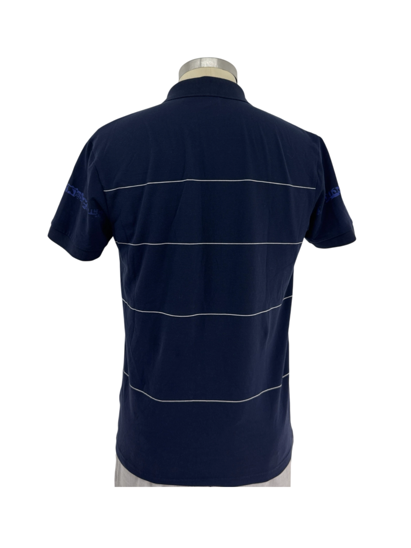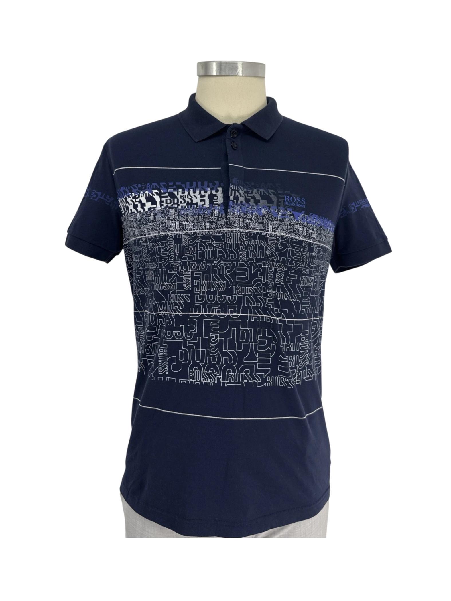 Elevate your casual wardrobe with this pre-owned Boss polo shirt. Crafted from comfortable cotton, this polo features a stylish geometric design on a navy blue backdrop. The classic collar and short sleeves offer a timeless appeal, perfect for warm weather. This versatile piece can be dressed up or down, making it a great addition to any closet.