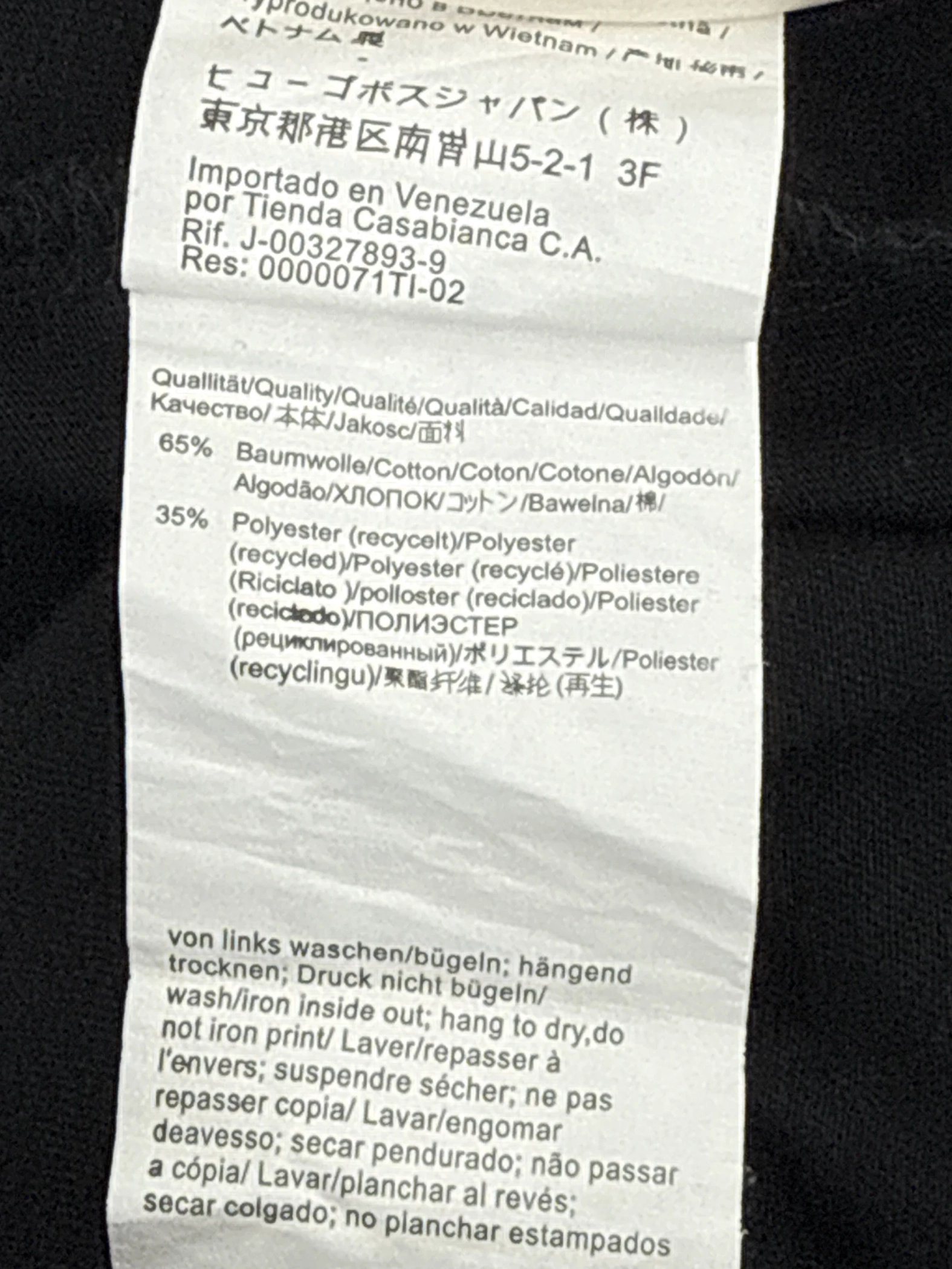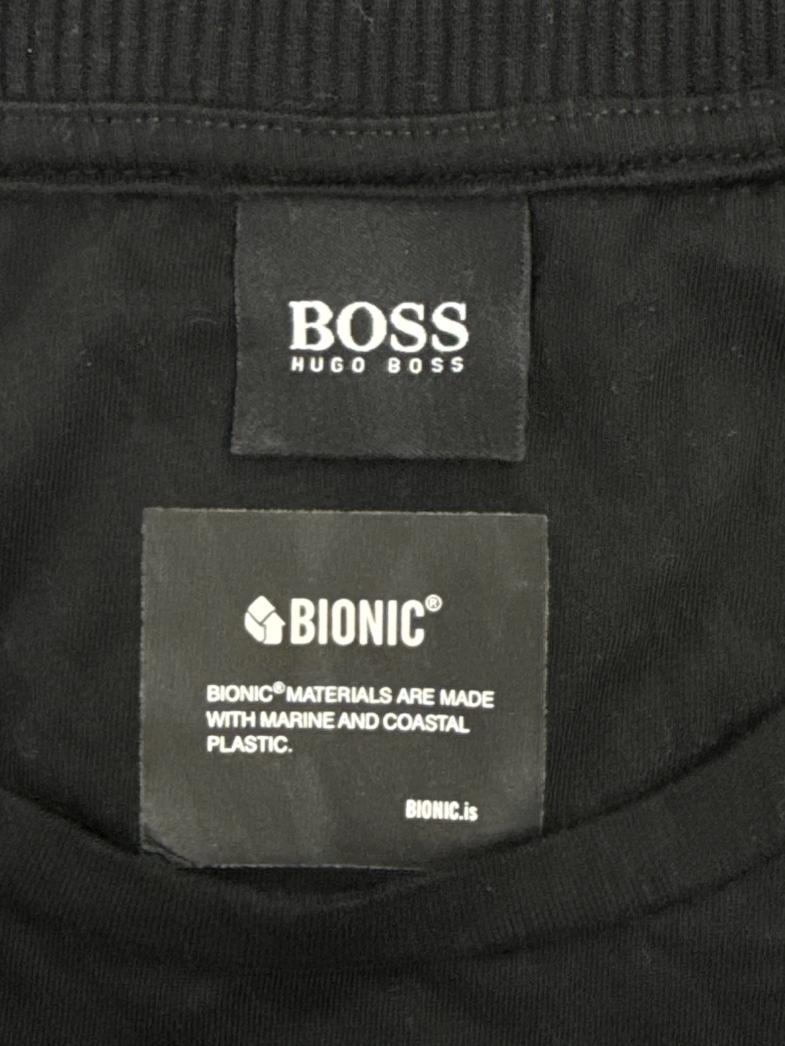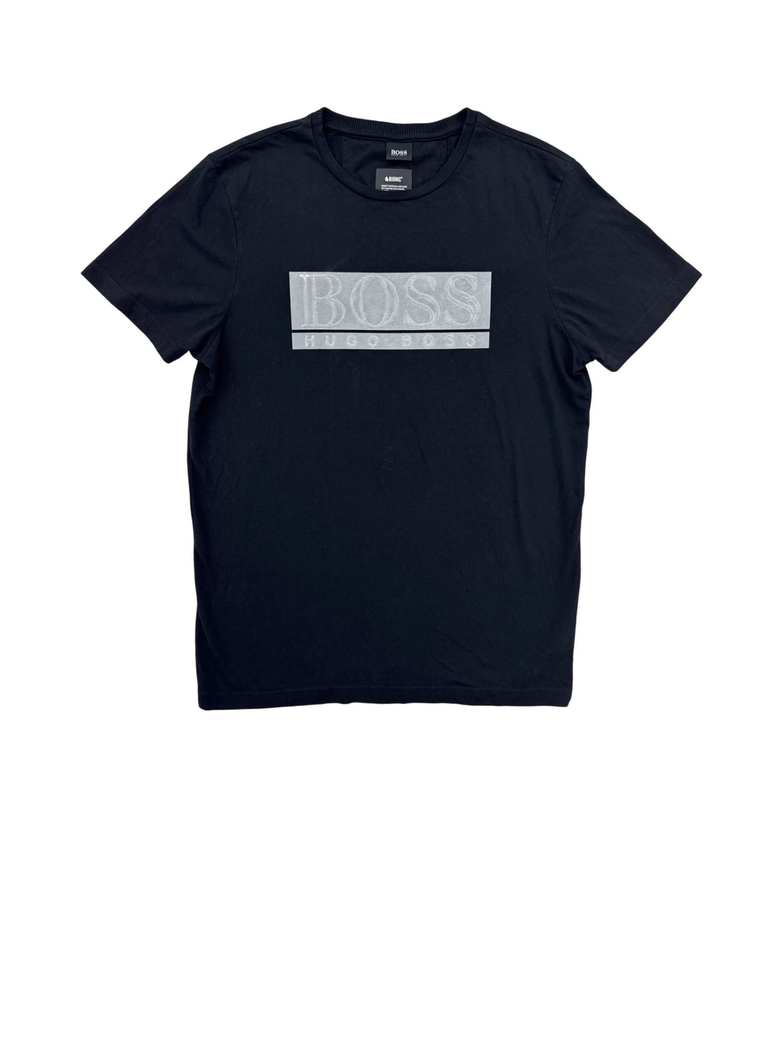 Elevate your casual wardrobe with this BOSS Hugo Boss T-shirt, a stylish and sustainable choice for any man. Crafted from a blend of high-quality cotton and recycled polyester, this pre-owned tee offers both comfort and environmental responsibility. The classic black color and minimalist design make it a versatile piece suitable for various occasions, from everyday wear to relaxed outings. Embrace the blend of luxury and eco-consciousness.