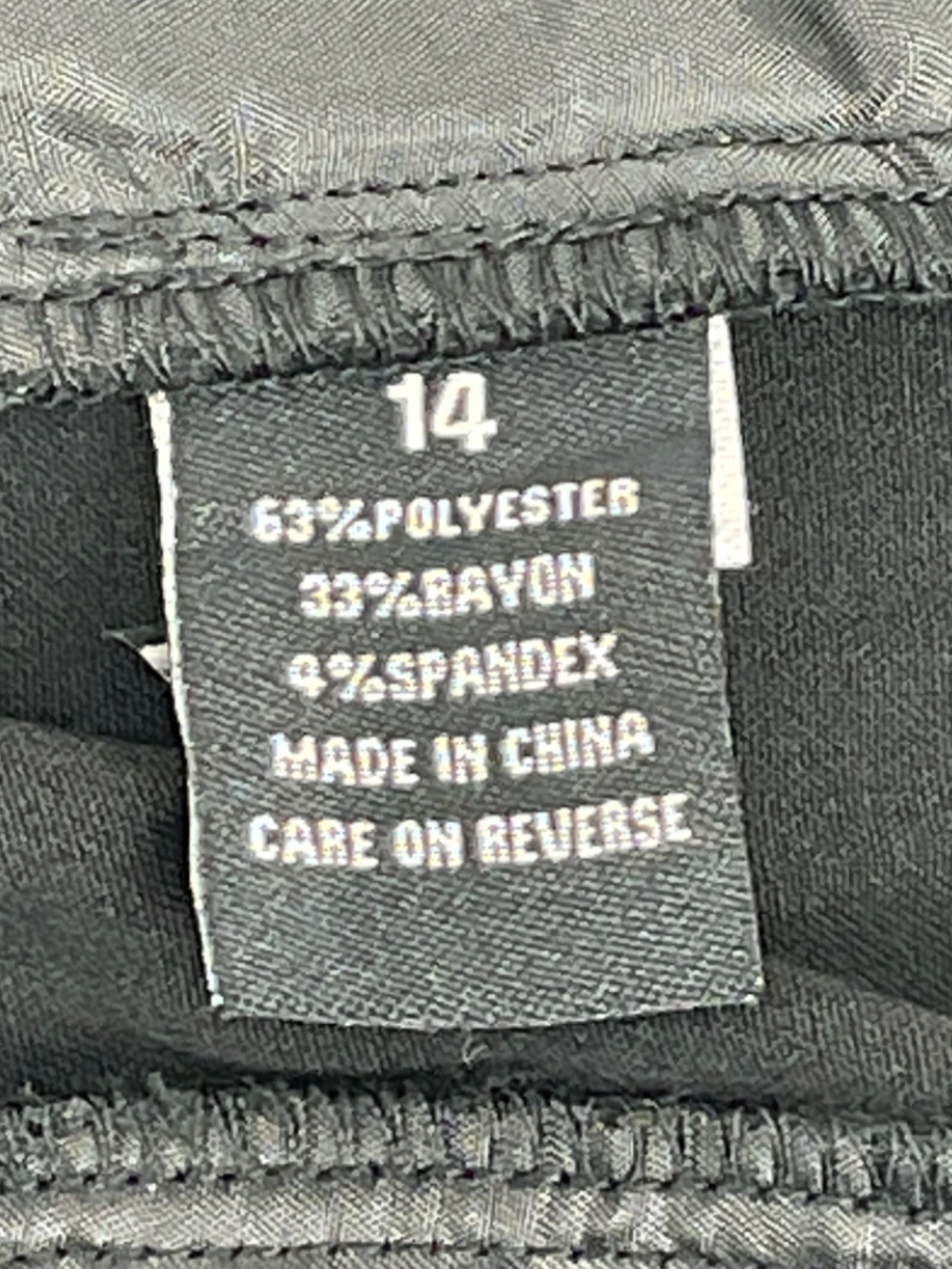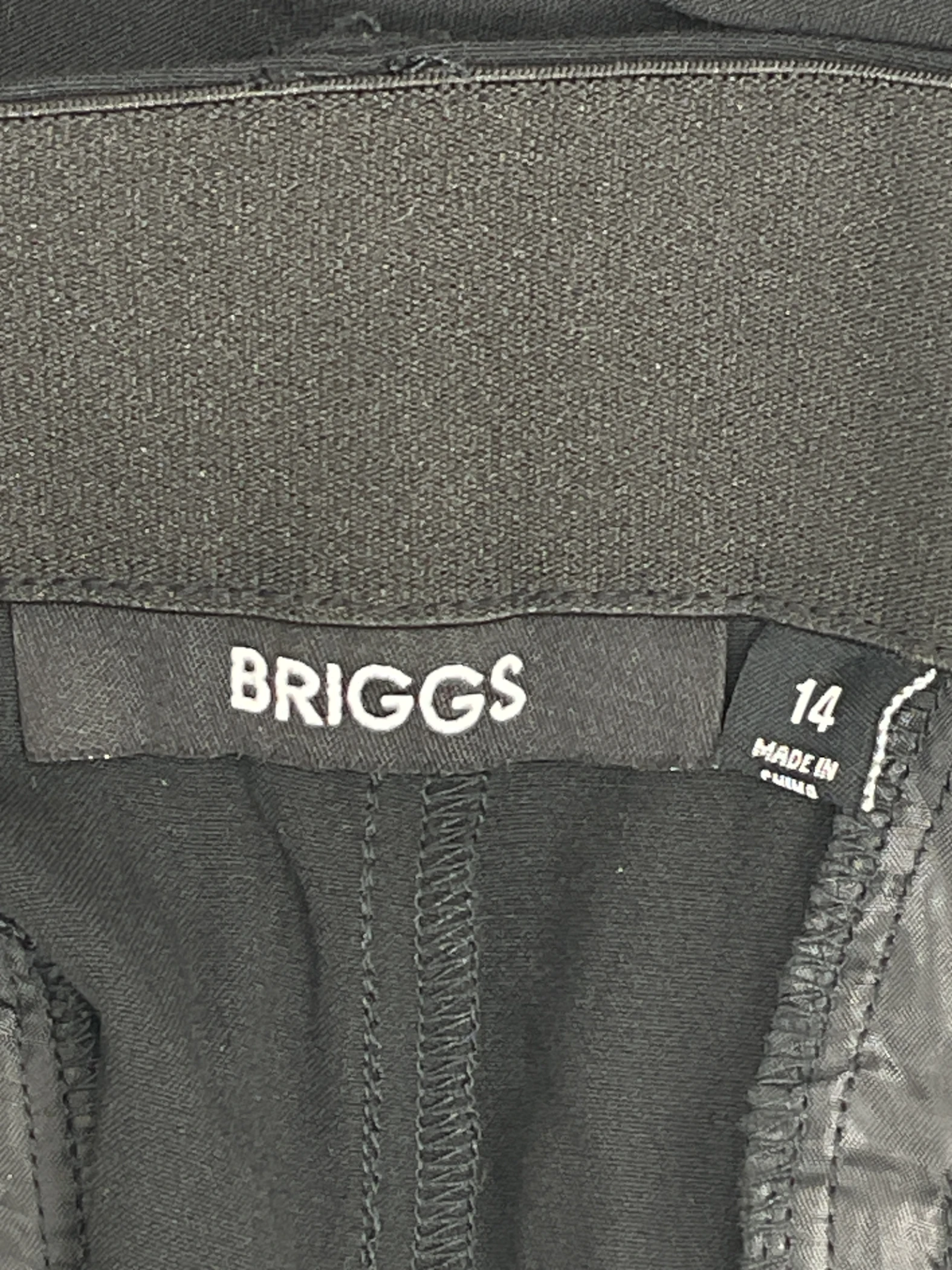 Briggs wide leg dress pants in black, with a flat front and mid-rise, for women in size 14.