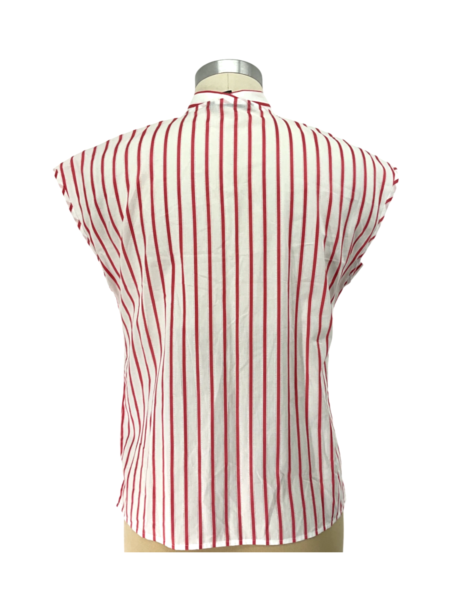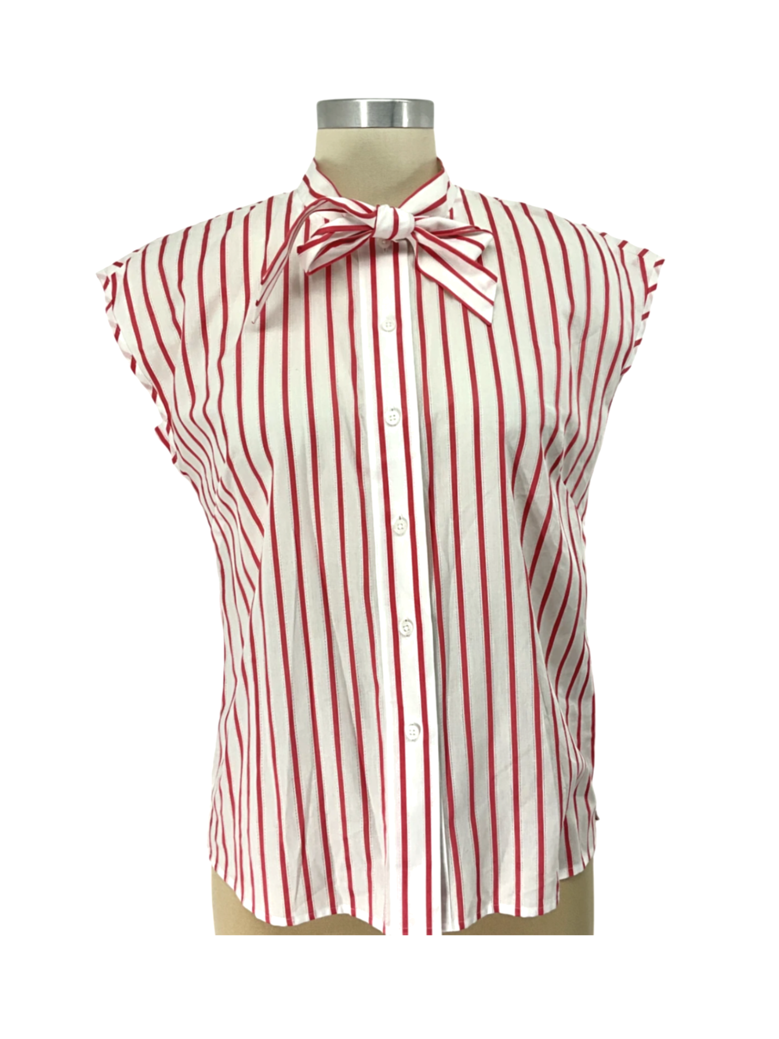 Brooks Brothers sleeveless blouse with pink and white stripes and a bow tie at the neck.