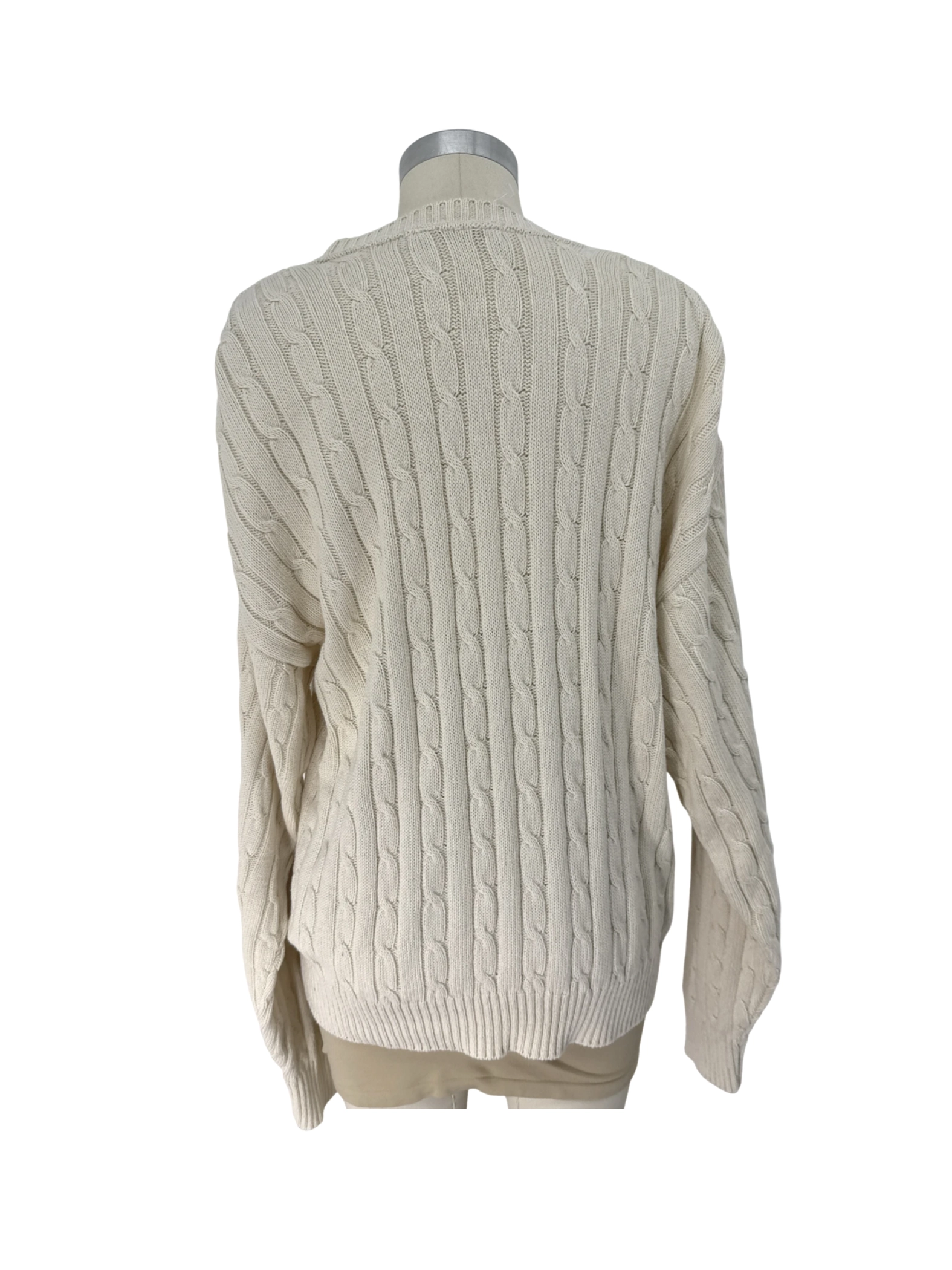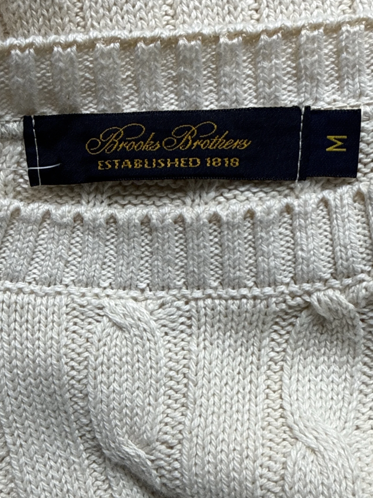 This pre-owned Brooks Brothers sweater is a classic addition to any wardrobe. Crafted from soft, ivory cotton, the sweater features a timeless cable-knit design and a comfortable round neck. Perfect for cooler weather, this versatile pullover offers both style and warmth. The sweater's neutral color makes it easy to pair with various outfits, ideal for both casual and more dressed-up occasions. A high-quality and durable choice.