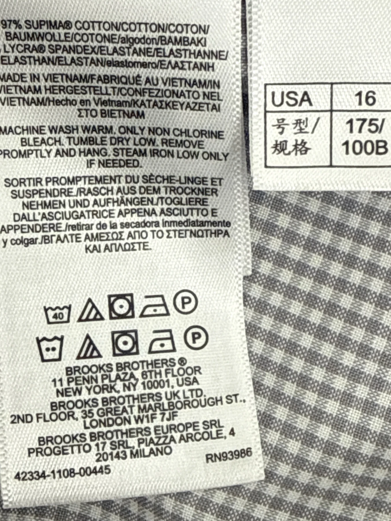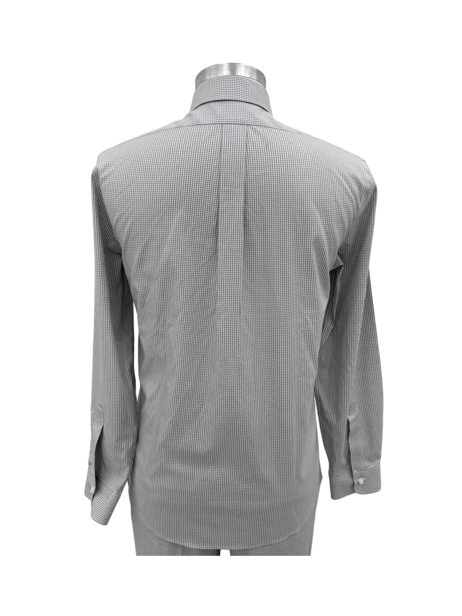 Elevate your wardrobe with this Brooks Brothers men's long sleeve shirt. This pre-owned shirt features a classic collar and a stylish checkered pattern in shades of gray. Crafted from a comfortable cotton blend with a touch of spandex for added stretch. It's perfect for both casual and formal occasions. A timeless piece that combines comfort and sophistication, perfect for the modern man. This shirt is a versatile addition to any closet.