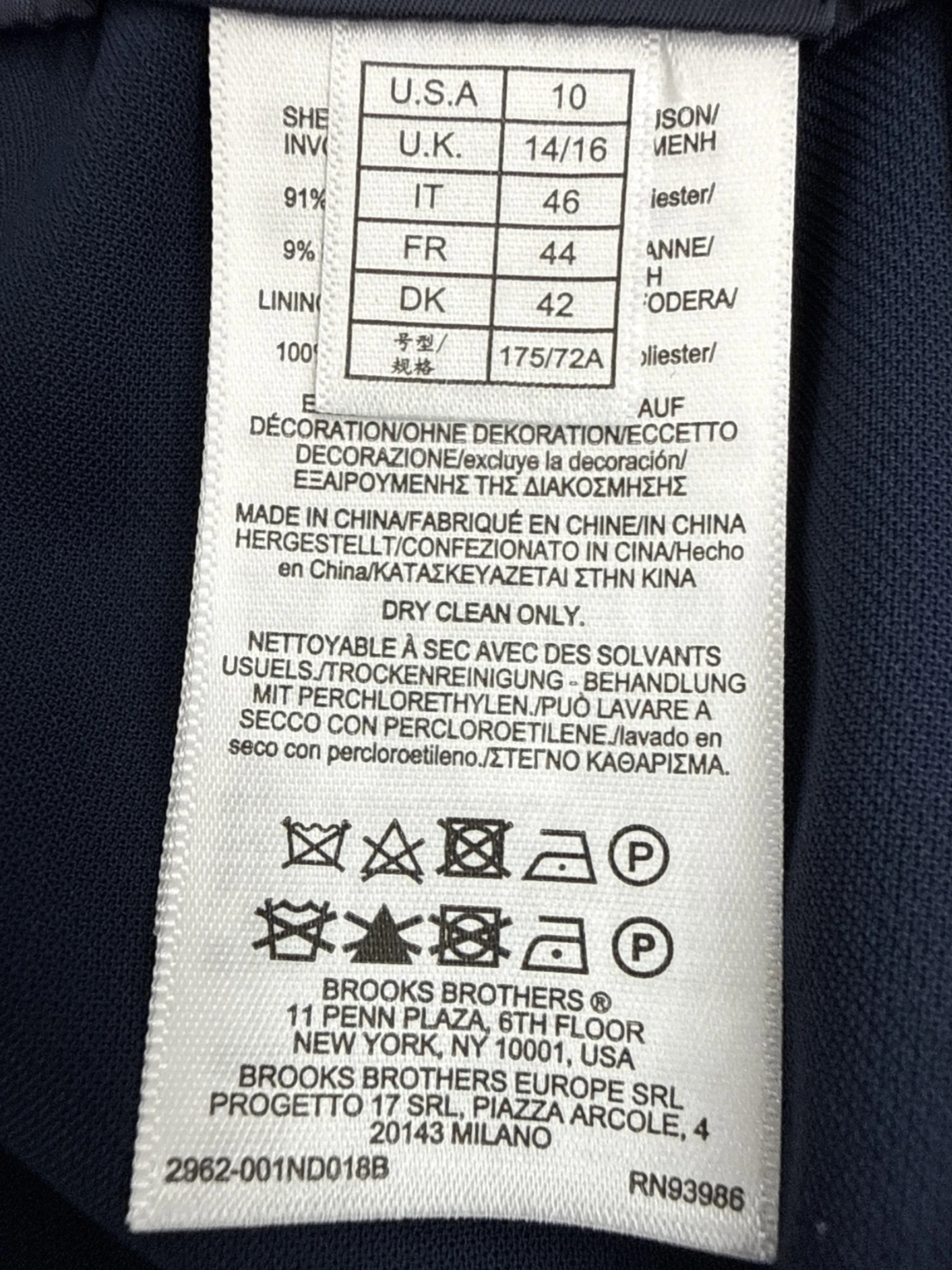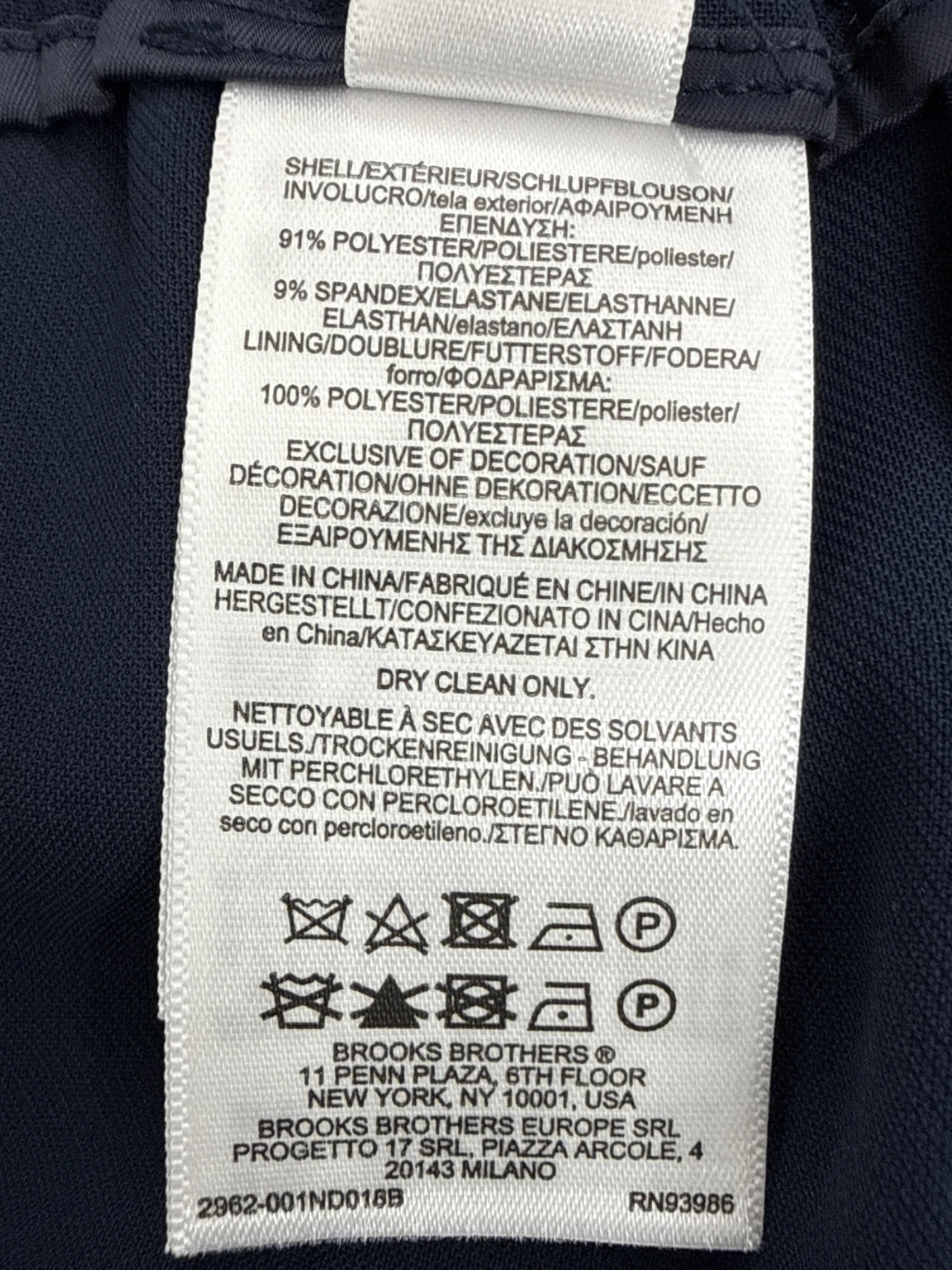 These pre-owned Brooks Brothers dress pants are a sophisticated addition to any wardrobe. Crafted from a blend of polyester and spandex, these pants offer both comfort and style. The classic navy blue color and straight-leg cut make them versatile for various occasions. Featuring a comfortable fit and a timeless design, these pants are perfect for the office or a night out. These Brooks Brothers pants are a blend of elegance and durability.