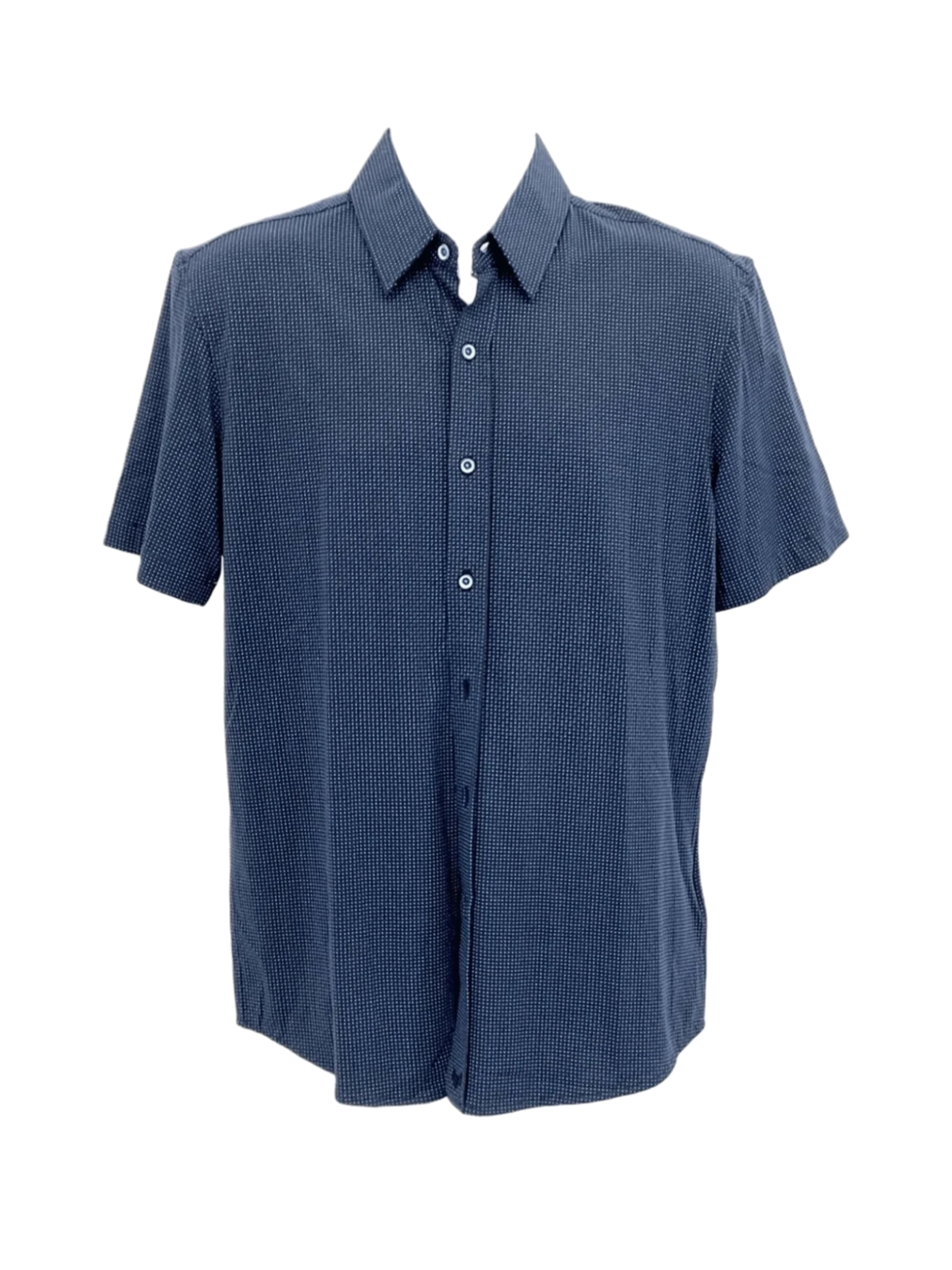 A regular fit men's blue shirt with polka dots, size M, by Buttercloth.