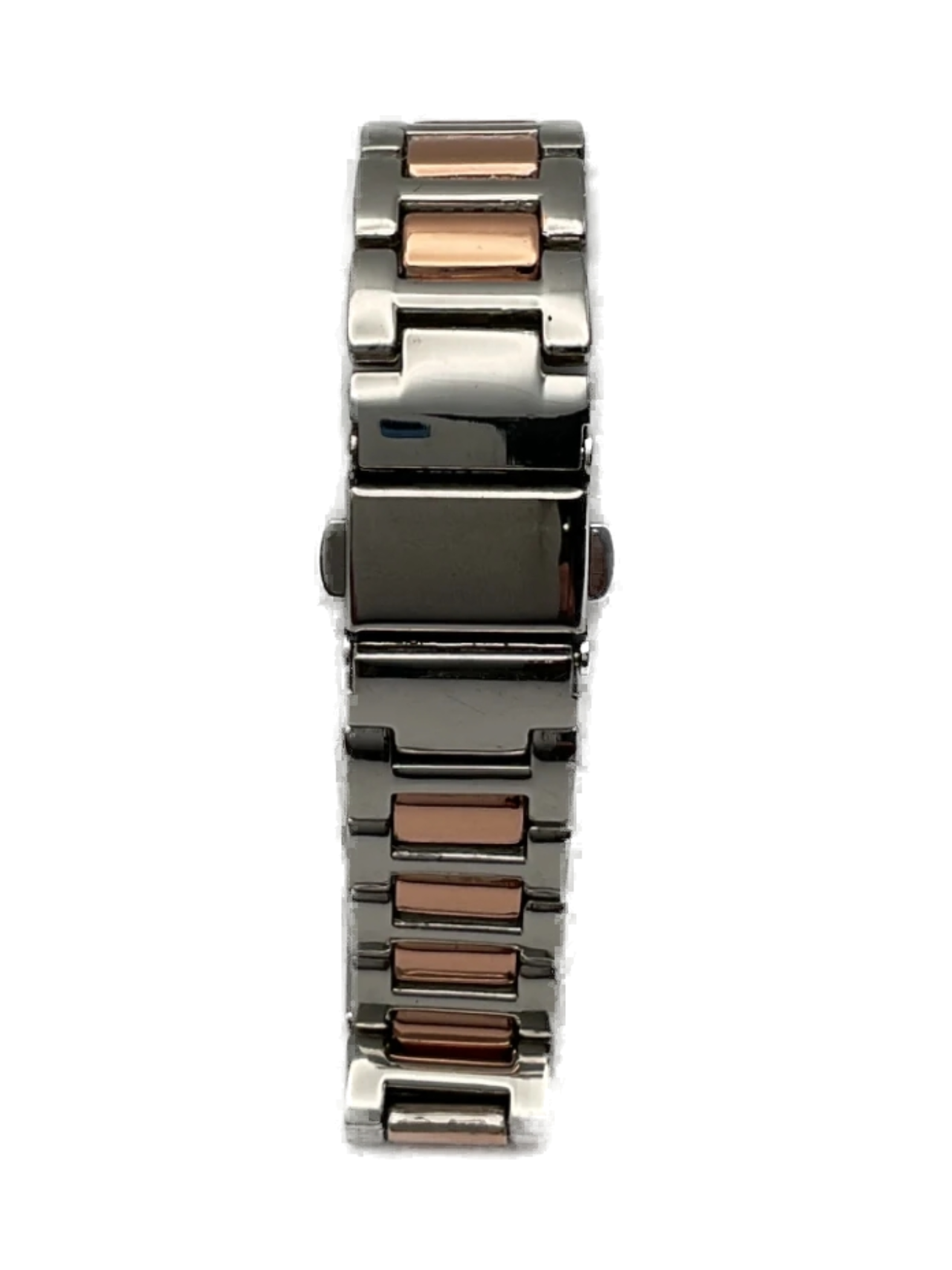 A women's stainless steel watch with silver and rose gold accents.