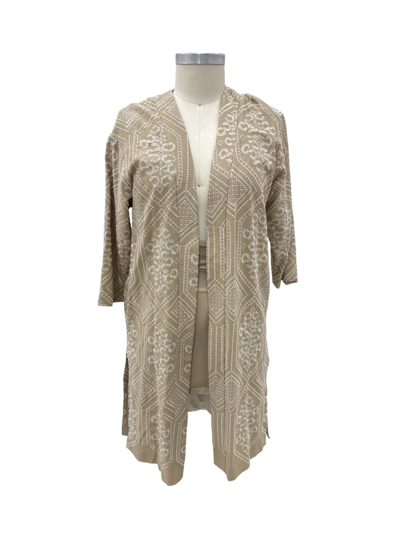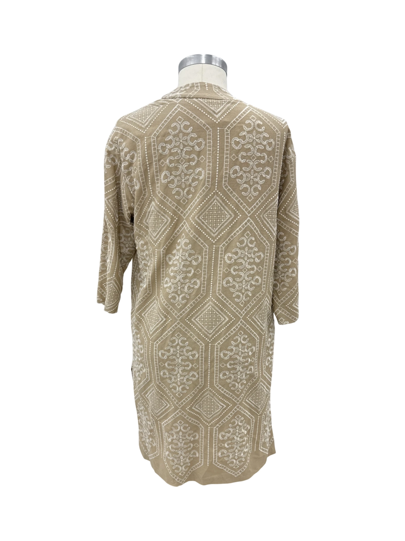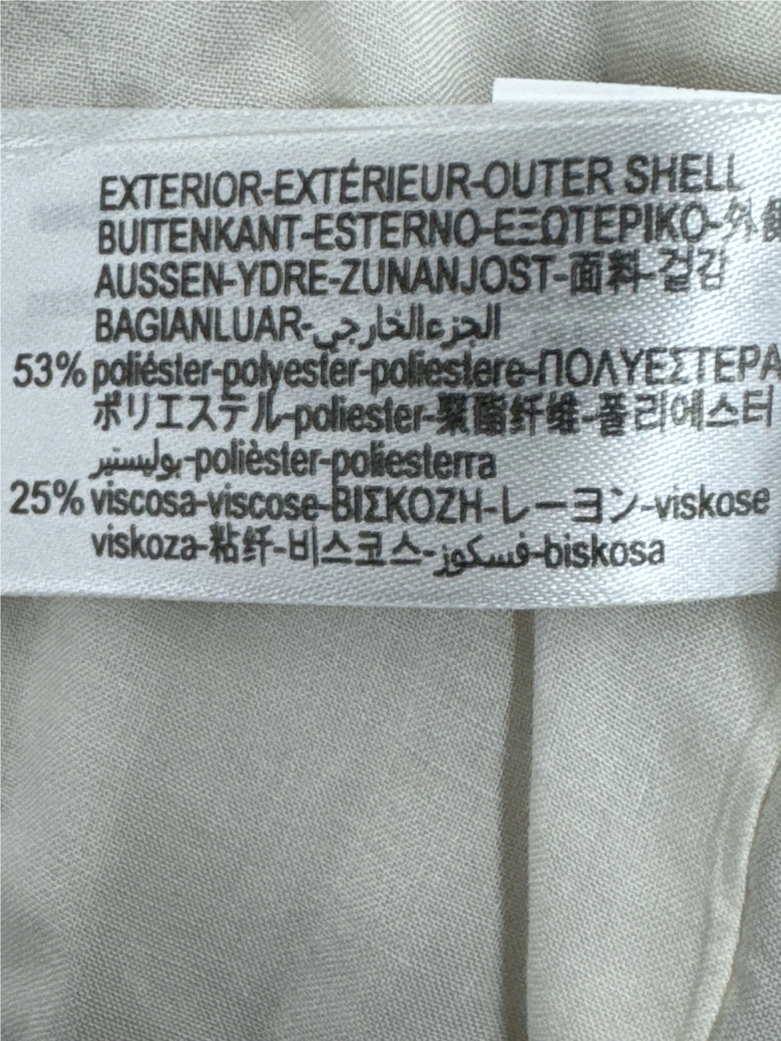 Elevate your wardrobe with this stylish pre-owned ZARA cardigan. This beige cardigan features an eye-catching pattern, perfect for adding a touch of elegance to any outfit. Crafted from a blend of polyester and viscose, it offers both comfort and durability. Ideal for spring and fall, this cardigan is a versatile addition to your closet. It features an open closure and is available in size XS. Embrace sustainable fashion with this chic, gently used piece.