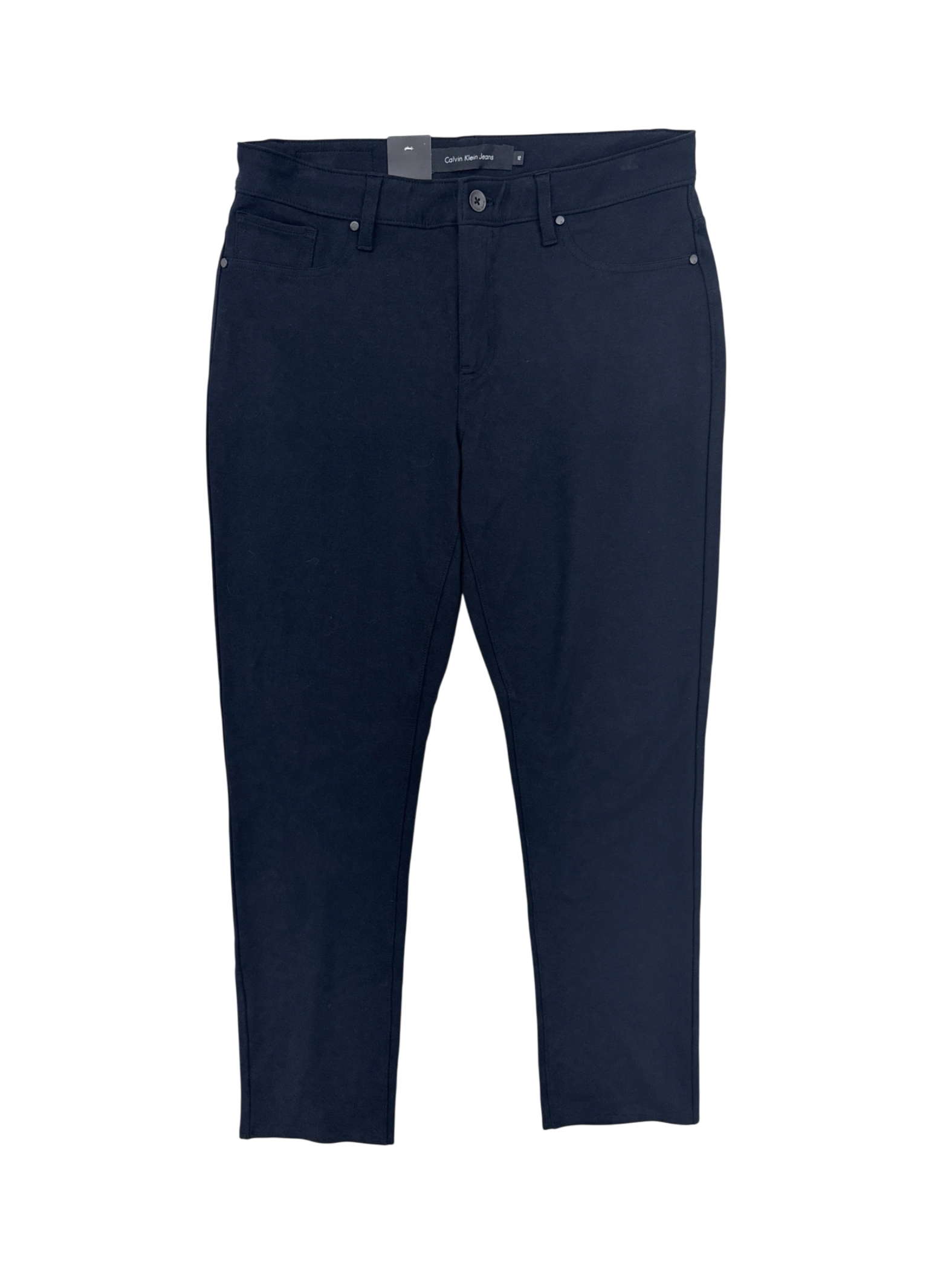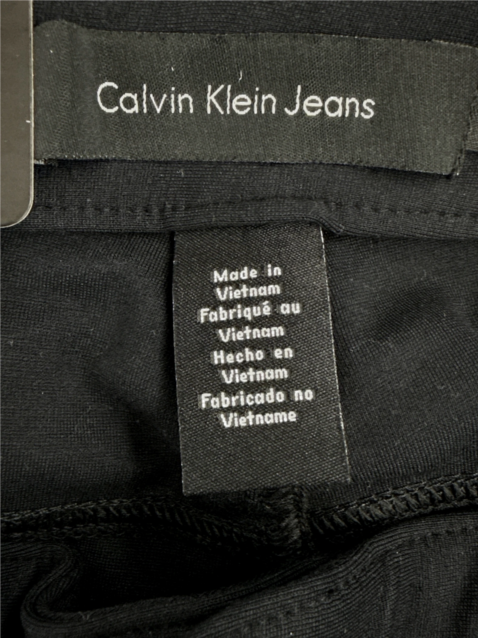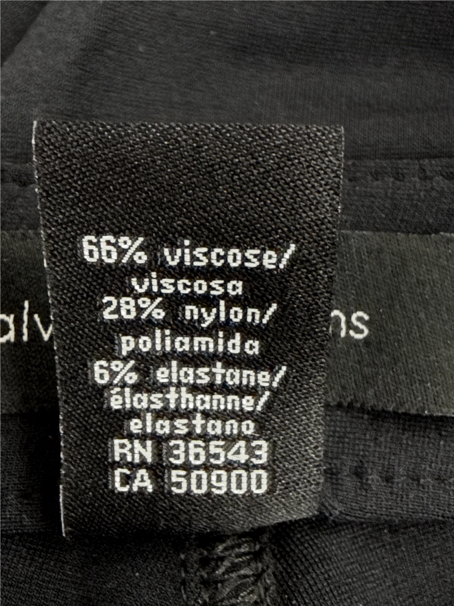 Elevate your wardrobe with these pre-owned Calvin Klein Jeans women's pants. These stylish dress pants feature a sleek black color and a comfortable straight leg cut. Crafted with a blend of viscose, nylon, and elastane, these pants offer a perfect fit and feel. These versatile pants are suitable for various seasons, making them a great addition to your collection. Available in size 8, these pants are in excellent condition.