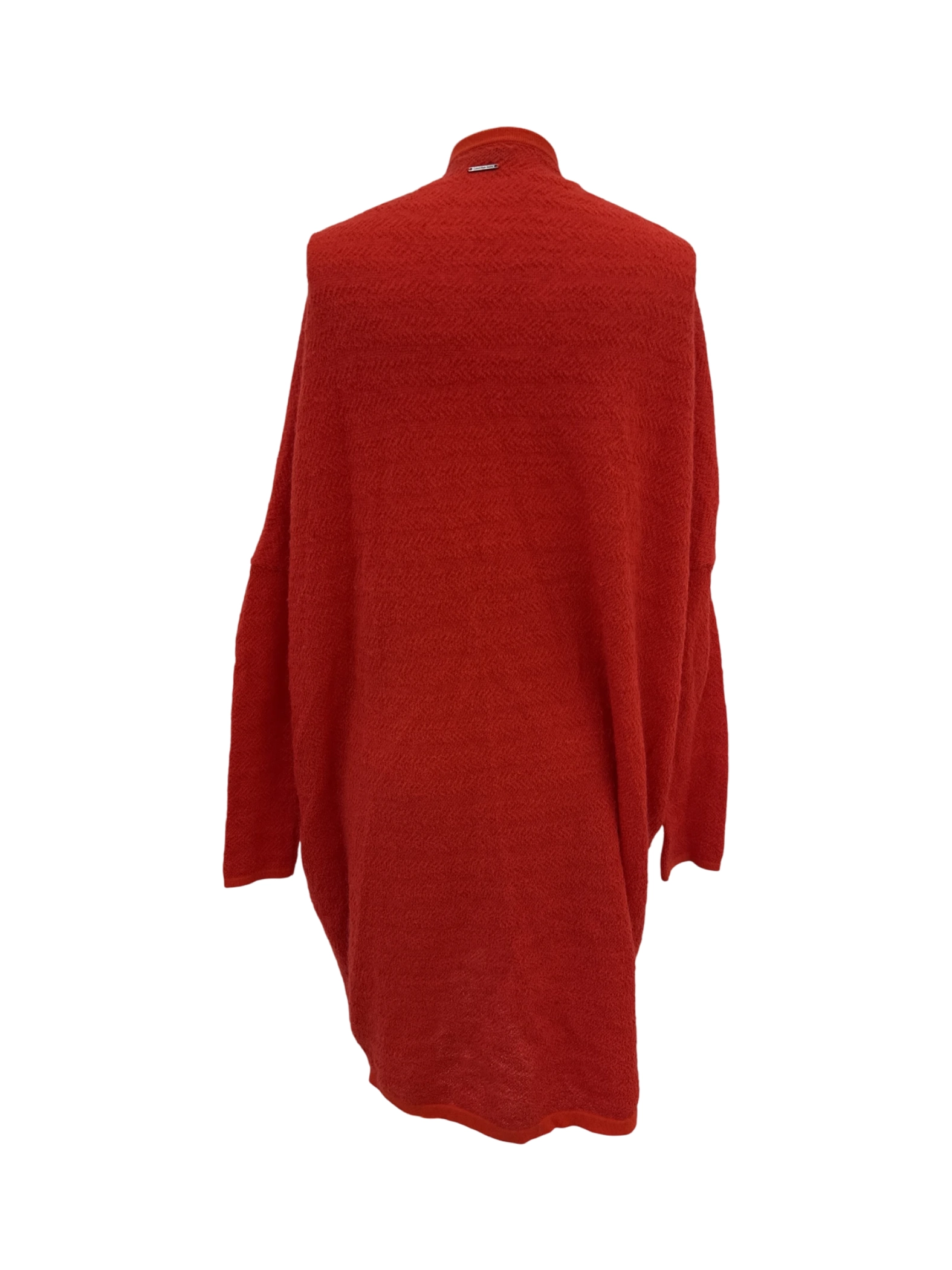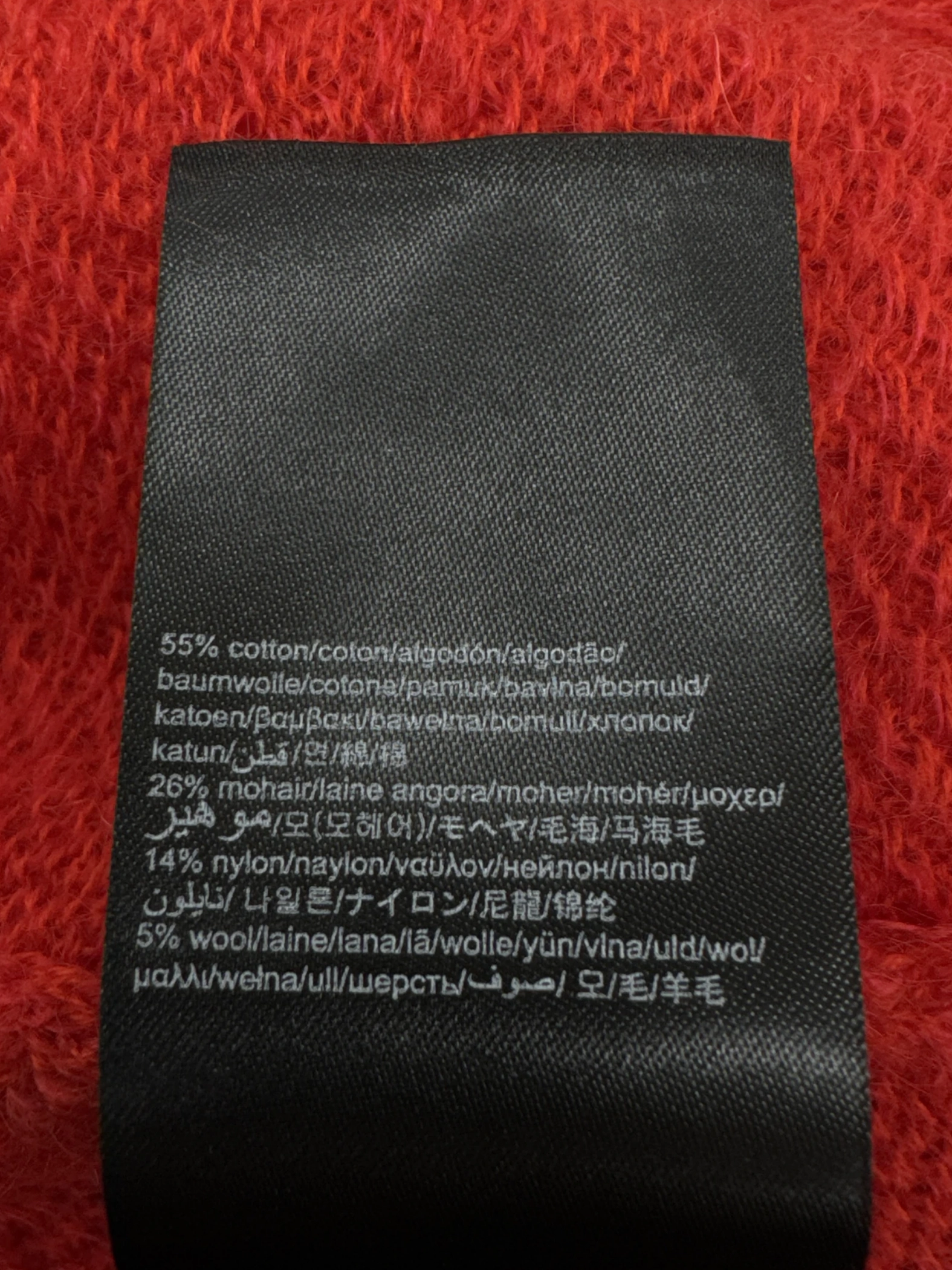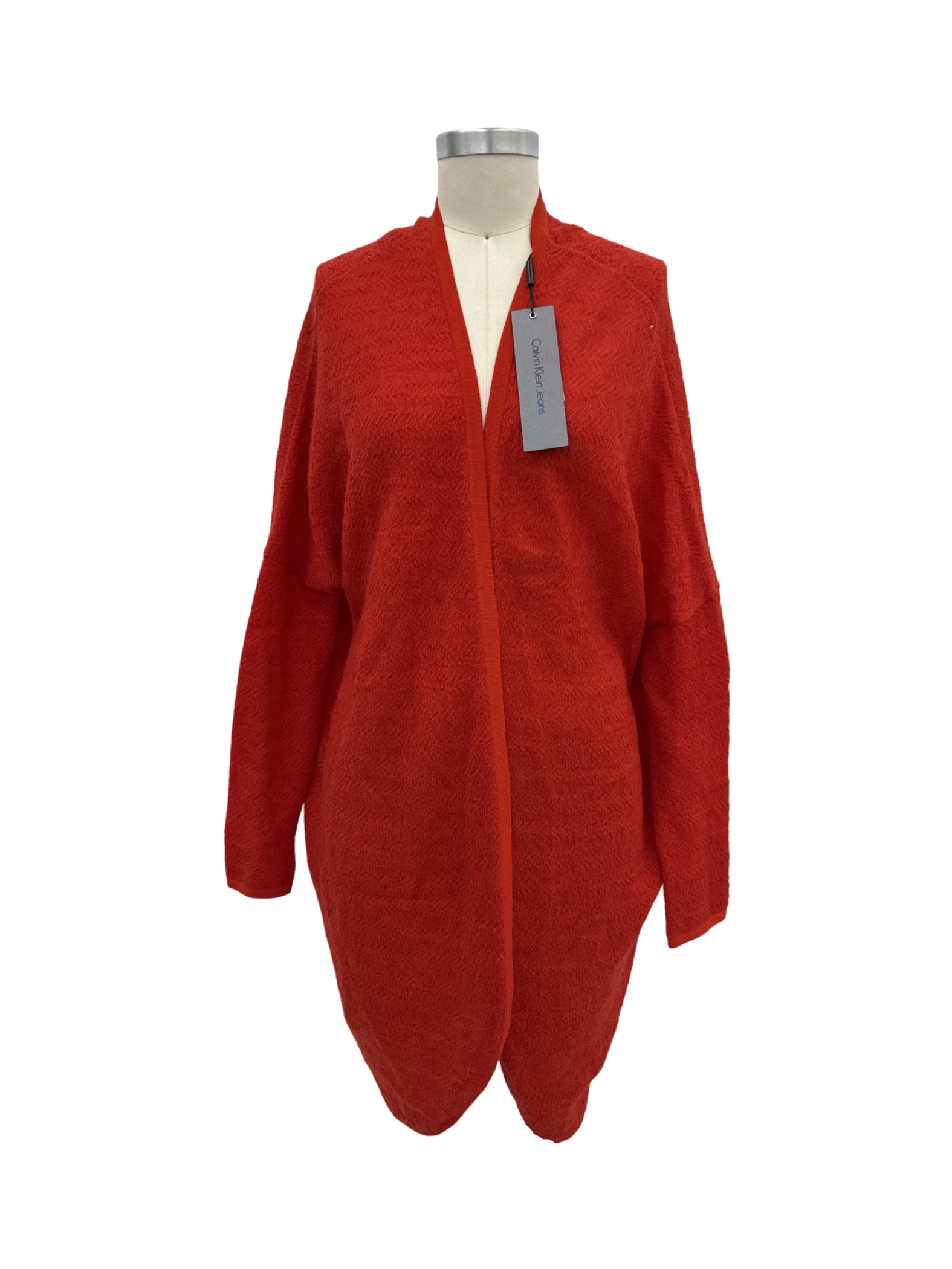 This pre-owned Calvin Klein Jeans cardigan is a stylish and warm addition to any wardrobe. Featuring a vibrant red color and a comfortable, relaxed fit, this cardigan is perfect for layering. The open-front design allows for easy wear, and the material is a blend of cotton, mohair, nylon and wool for added softness and warmth. A versatile piece that can be dressed up or down. A chic and effortless piece for cooler weather.