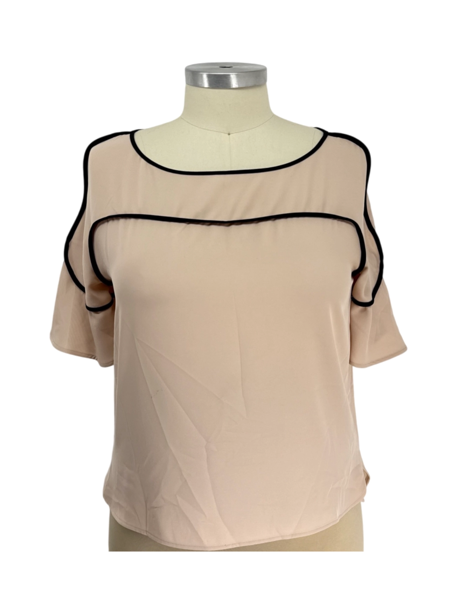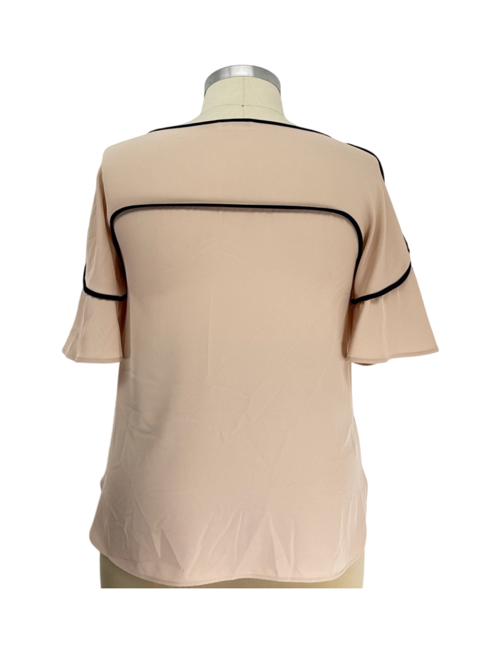 Calvin Klein's new women's short sleeve pink blouse with piping.