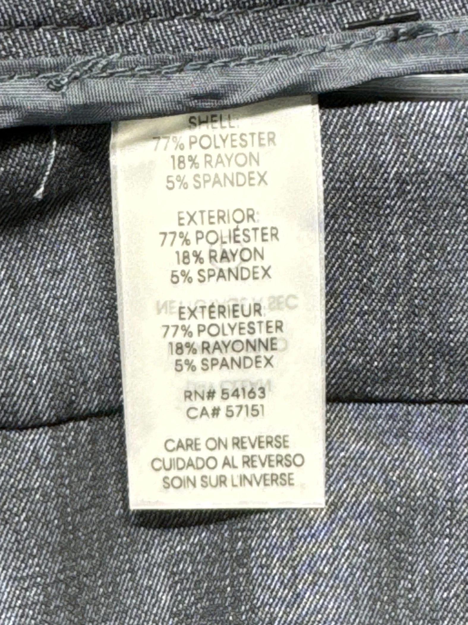 Elevate your wardrobe with these pre-owned Calvin Klein dress pants. These stylish pants are made from a blend of polyester, rayon, and spandex for a comfortable and flattering fit. Featuring a modern fit and a boot cut, they offer a timeless silhouette perfect for any professional or special occasion. With their sophisticated grey color, they can be easily paired with a variety of tops for versatile styling options.