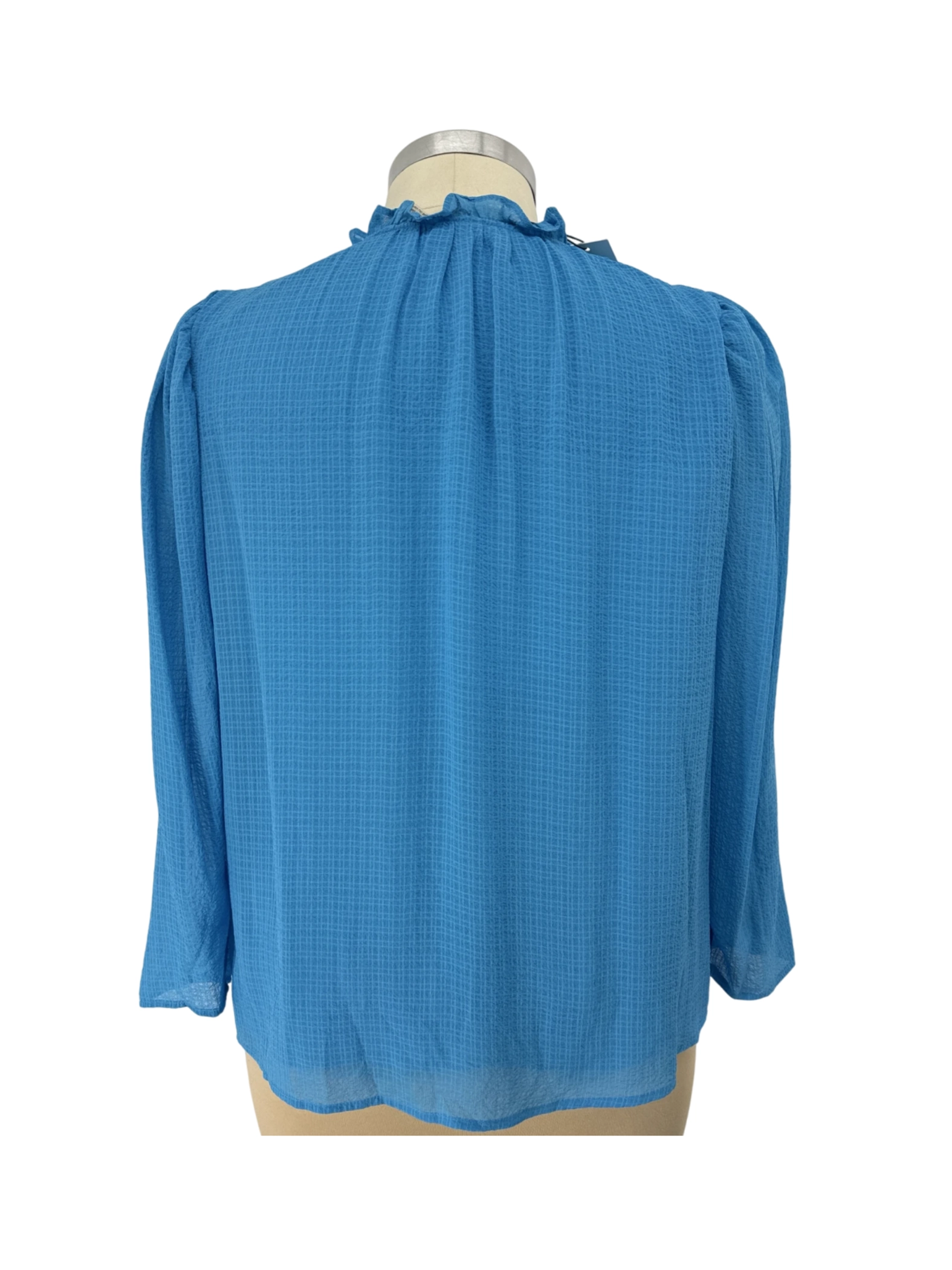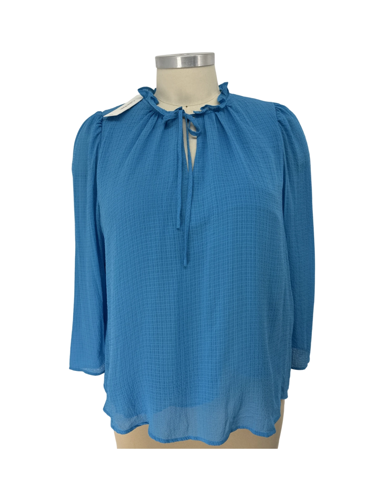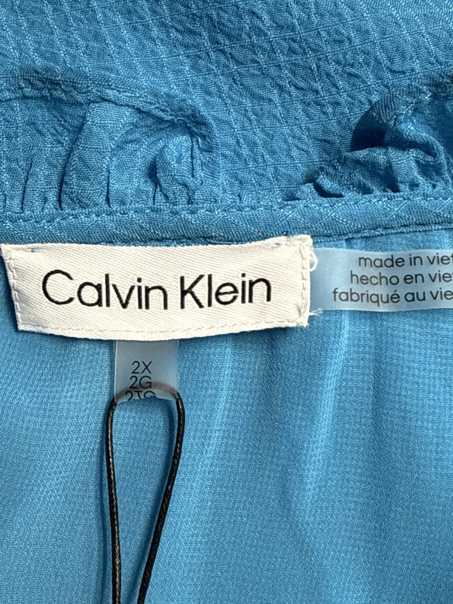 This Calvin Klein blouse is a stylish addition to any wardrobe. Made from a blend of polyester and spandex, it offers a comfortable and flattering fit. The teal color and subtle texture add a touch of elegance, while the round neckline and long sleeves make it suitable for various occasions. Perfect for spring and summer, this pre-owned blouse is in excellent condition and ready to elevate your style.