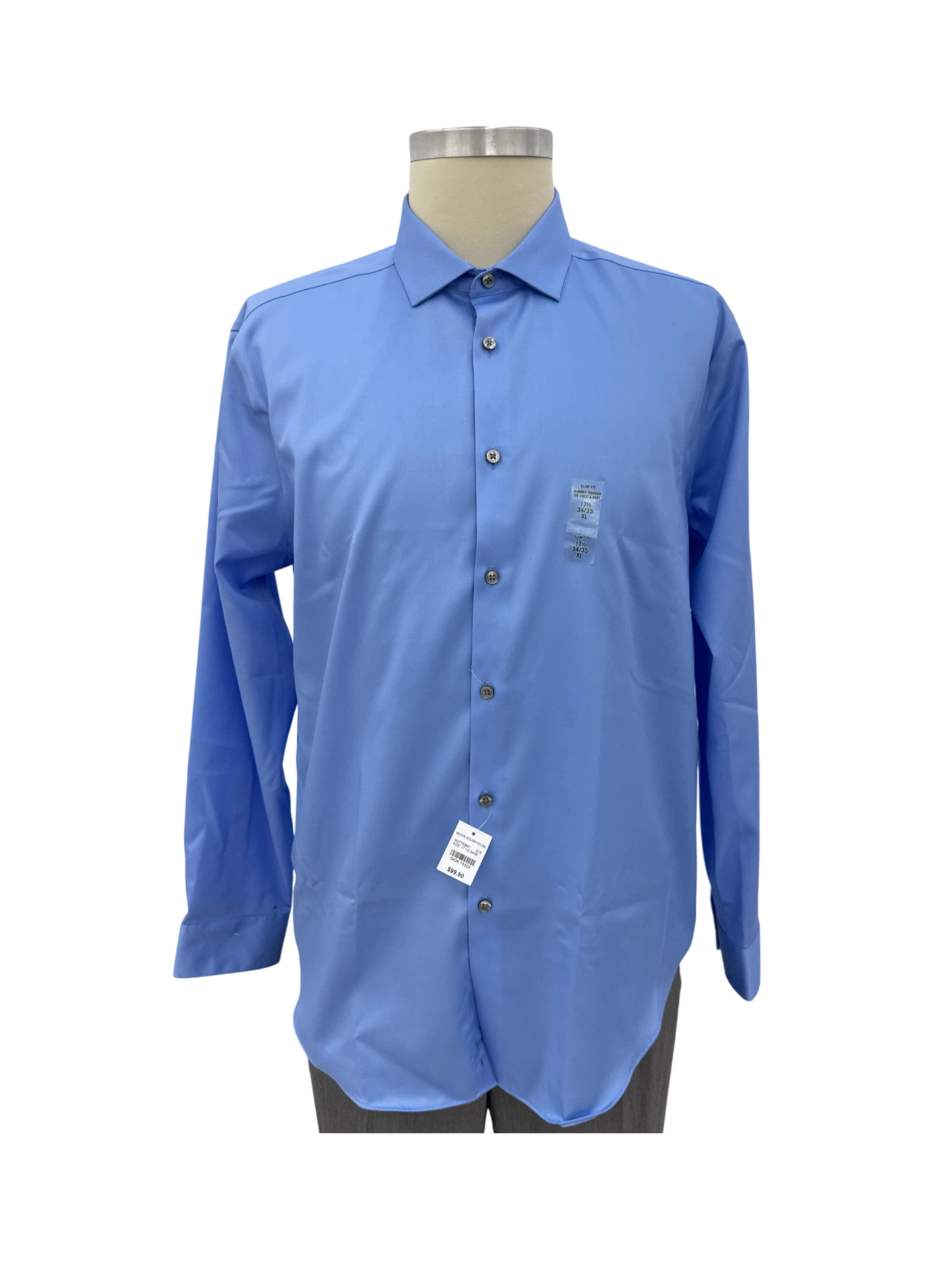 This Calvin Klein men's long sleeve shirt is a classic addition to any wardrobe. The light blue color and button-up closure offer a timeless appeal, while the cotton and polyester blend provides comfort and durability. The shirt features a collar and a regular fit, suitable for both casual and formal occasions. Ideal for any season, this pre-owned shirt offers quality and style at an affordable price.