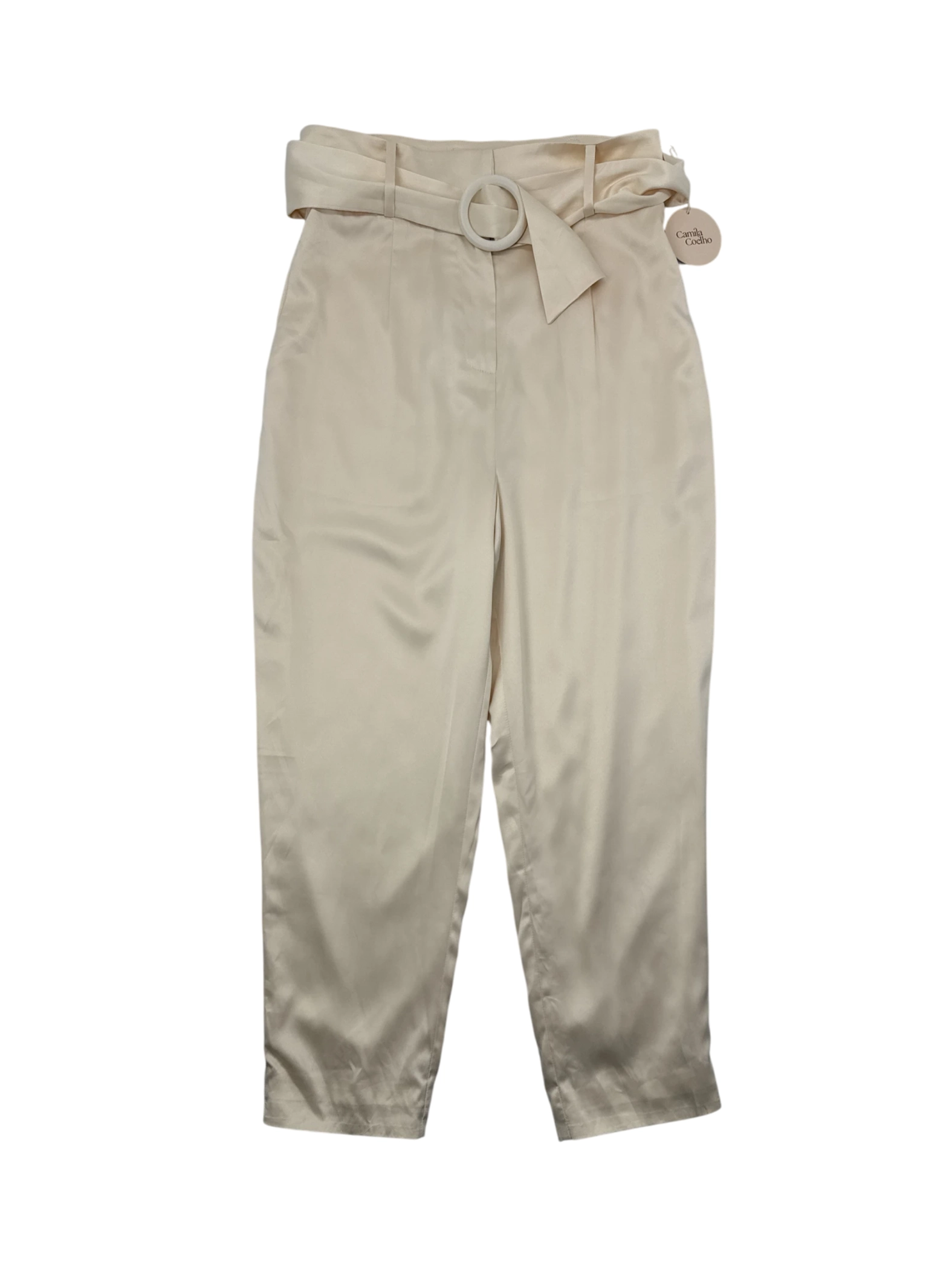 Elevate your wardrobe with these pre-owned Camila Coelho ivory wide-leg pants. Crafted from a luxurious polyester fabric, these pants feature a sophisticated paperbag waist design, a stylish belt, and a flattering wide-leg cut. Perfect for warm weather, these versatile pants can be dressed up for a night out or paired with a casual top for a chic daytime look. The subtle ivory hue offers a clean, polished aesthetic.