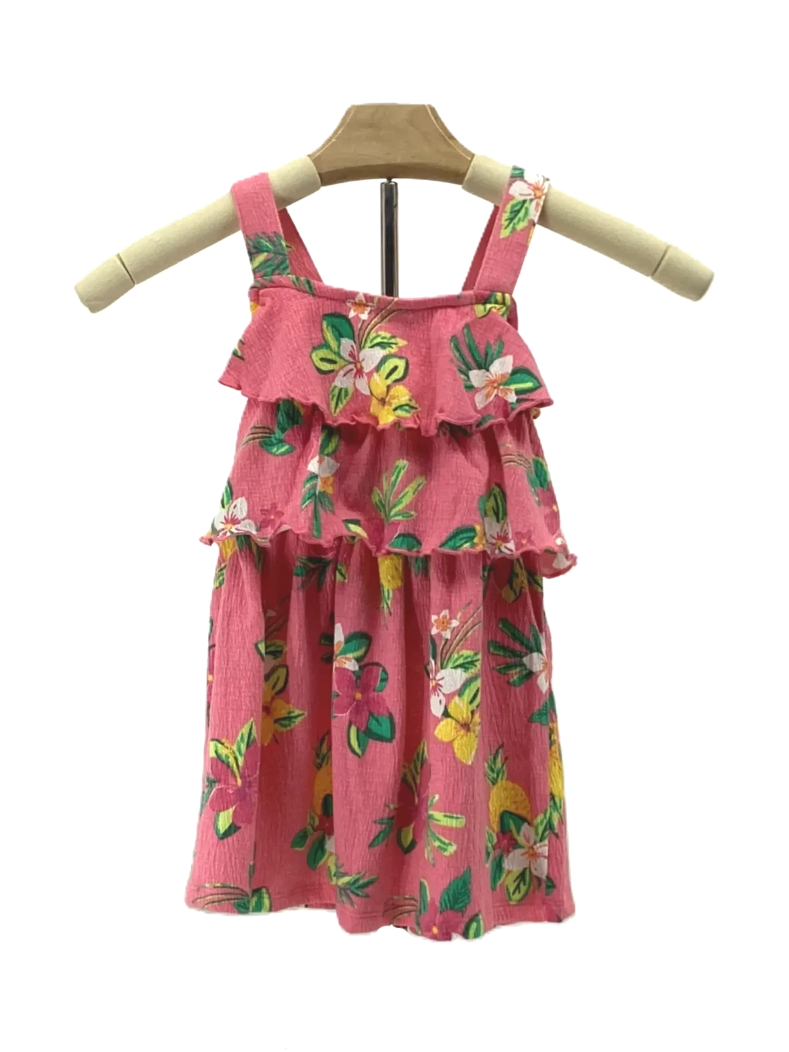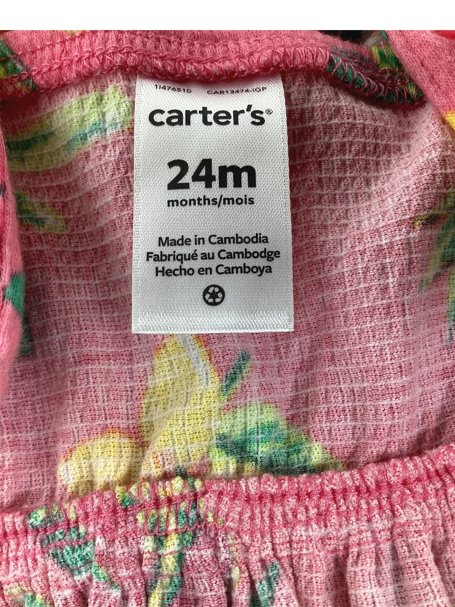 This item is a Carter's Floral Ruffle Crinkle Jersey Dress for a baby girl in size 24 months.